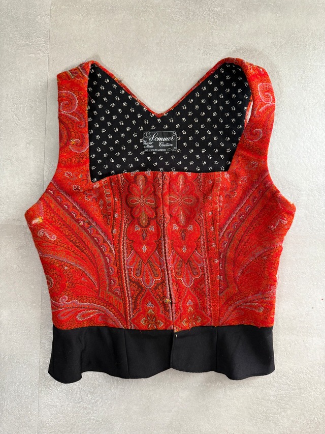 オーストリアの高級トラハト(民族衣装)ブランド 「Sommer Tracht Couture」のベストです。 赤を基調とした華やかなジャカード織りに、 ブラックの裾切り替えが上品でクラシカルな一着。 遊びのあるコーディネートをしたい方 差し色が欲しい方におすすめです -MATERIAL- Notlists -SIZE- 着丈 41cm バスト 88cm 肩幅 33cm 袖口 50cm ※ サイズは平置き採⼨になりますので若⼲のずれが⽣じる場合がございます。予めご了承下さい。 --------------------------------------- 当店ではUSED・VINTAGEを取り扱っております。 古着の経年変化における⾵合いについて、事前にご理解いただきご購入頂けますと幸いです。 また商品についてご不明な点がございましたら、ご購⼊前にcontactよりお気軽にお問合せ下さいませ。 - 注意事項 - ⚫︎掲載の商品画像に関しまして、より実物に近い⾊味で撮影を⾏っておりますがご使⽤頂いているブラウザやパソコン等の環境により、実際の⾊味と異なる場合がございます。あらかじめご了承ください。 ⚫︎また、商品の経年変化によるダメージ部分や汚れに関しては画像を掲載しておりますが、⽬⽴たないものにおいて掲載しきれていない部分もございます。こちらもあらかじめご了承ください。 ⚫︎ご購⼊後の掲載内容( サイズ・画像のカラー・商品説明) と実物との若⼲の違い等による返品に関しましては、お受け致しかねます。恐れ⼊りますが、あらかじめご理解の上ご購⼊くださいませ。 ⚫︎当店の過失による返品希望と判断させて頂いた場合にのみ返品対応させて頂きます。 その際は、商品到着⽇から3⽇以内にご連絡ください。内容確認のうえ返品⽅法についてご案内させて頂きます。 尚、商品到着から4⽇以降のお問い合わせにつきましては、当店過失においても返品をお受け出来兼ねます。 あらかじめご了承ください。 ⚫︎ご注⽂後5⽇以内の配送を予定しております。 ※土日祝を含む場合は休み明けの平日より5日間とさせて頂きます。 ⚫︎商品到着の⽇時指定をされる場合ご注⽂の際の備考欄にご記⼊ください。 尚、指定⽇はご注⽂後5〜10⽇の間で承ります。 ●銀行振り込みでのお買い物はトラブル防止のためお断りさせていただいており、カード決済のご協力をお願い致します。