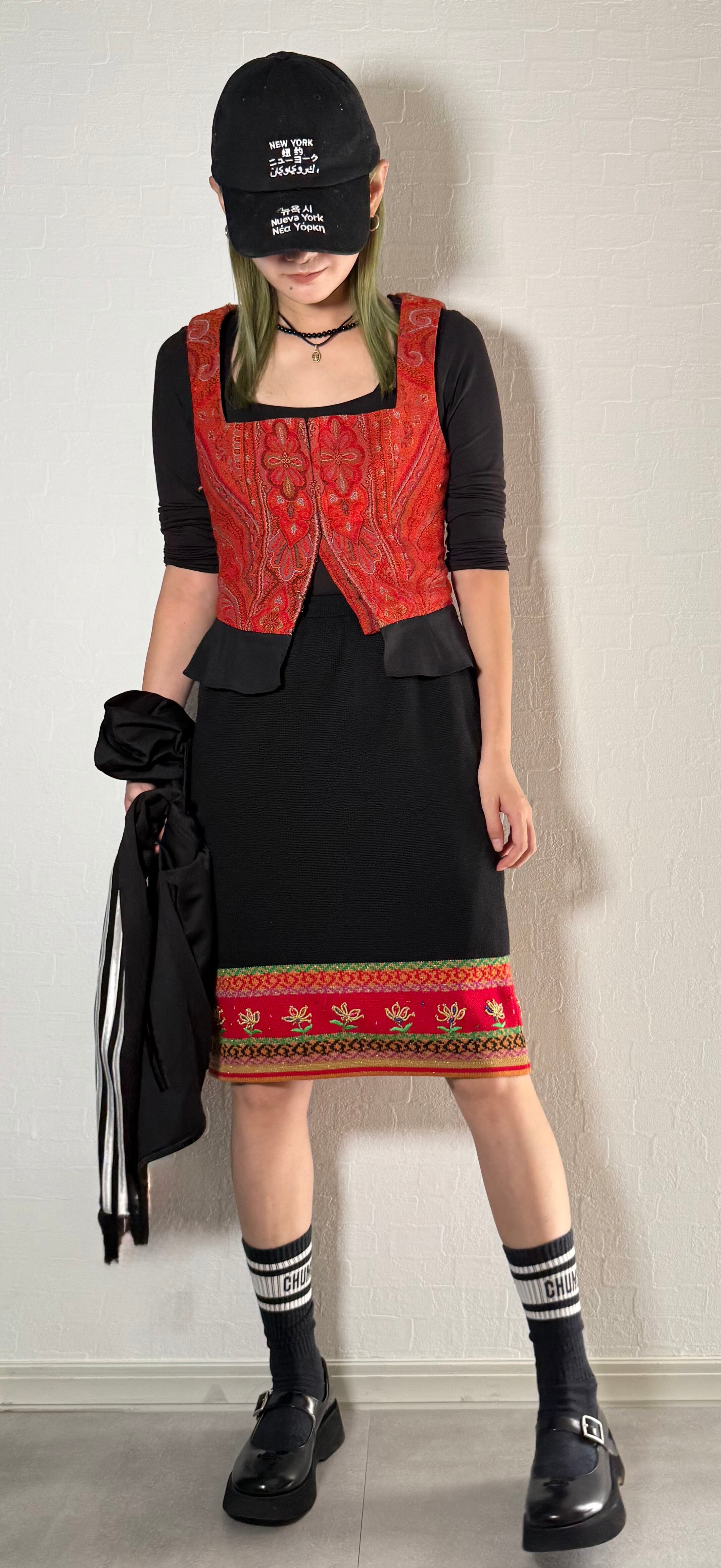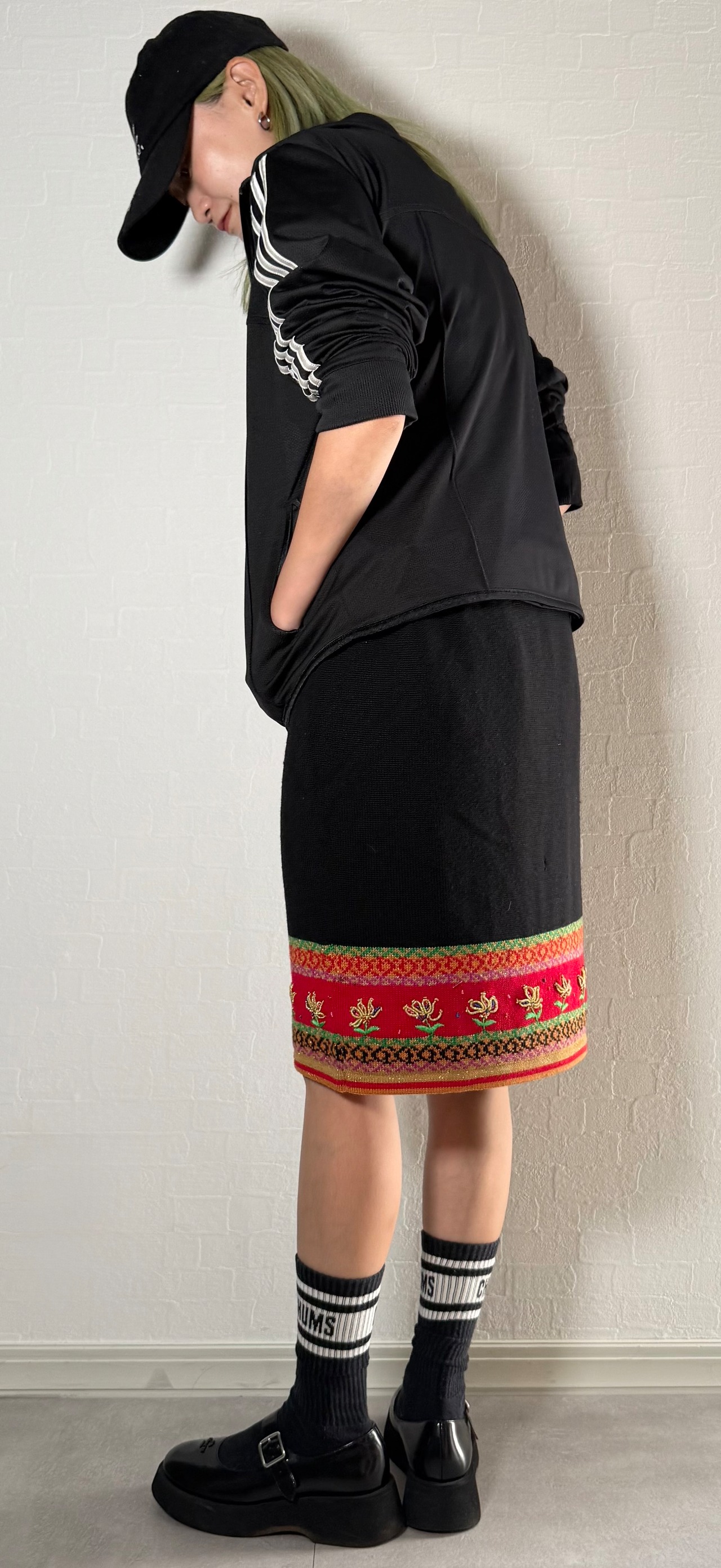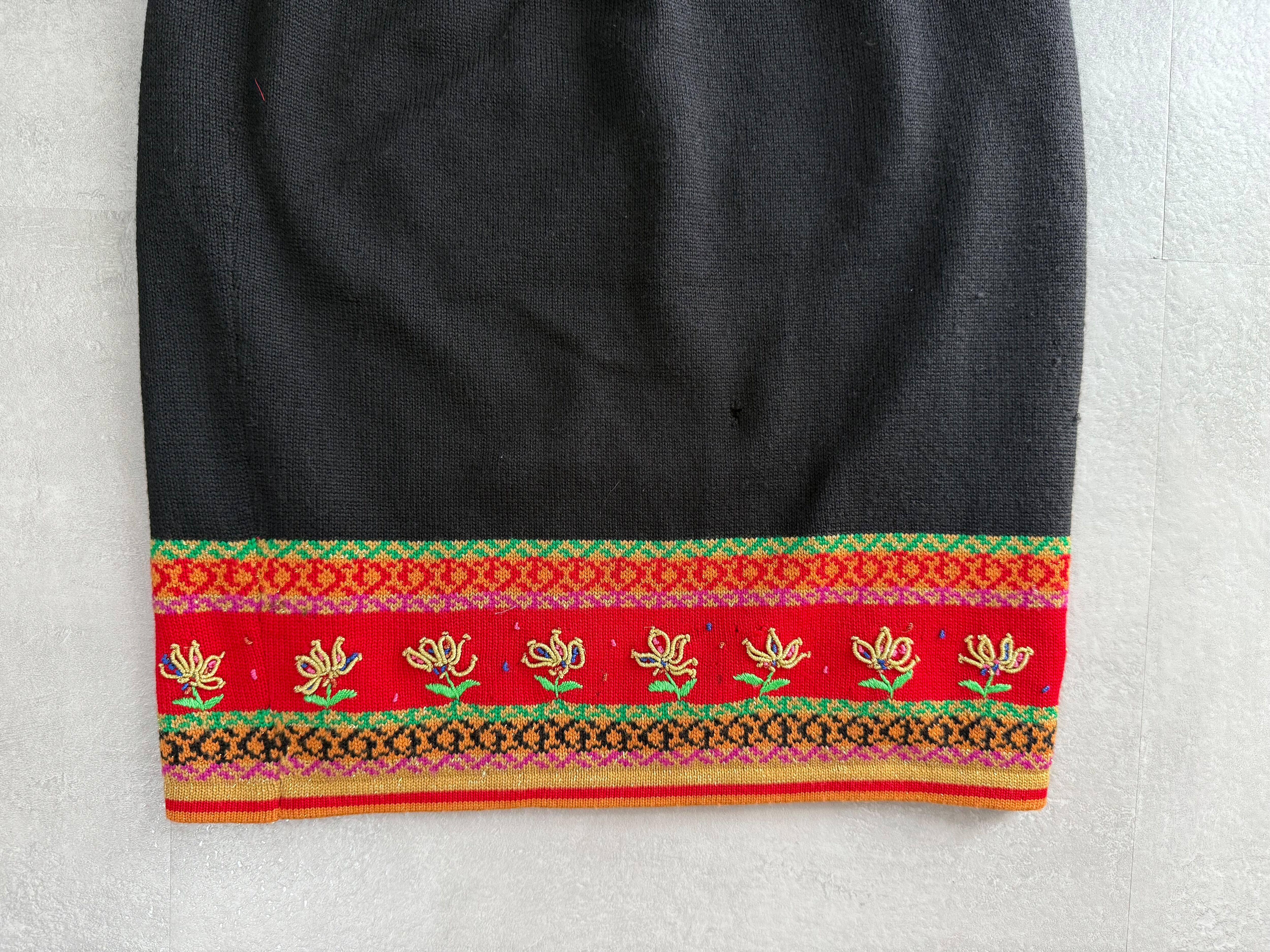 裾に花柄の刺繍があるニットタイトスカートです