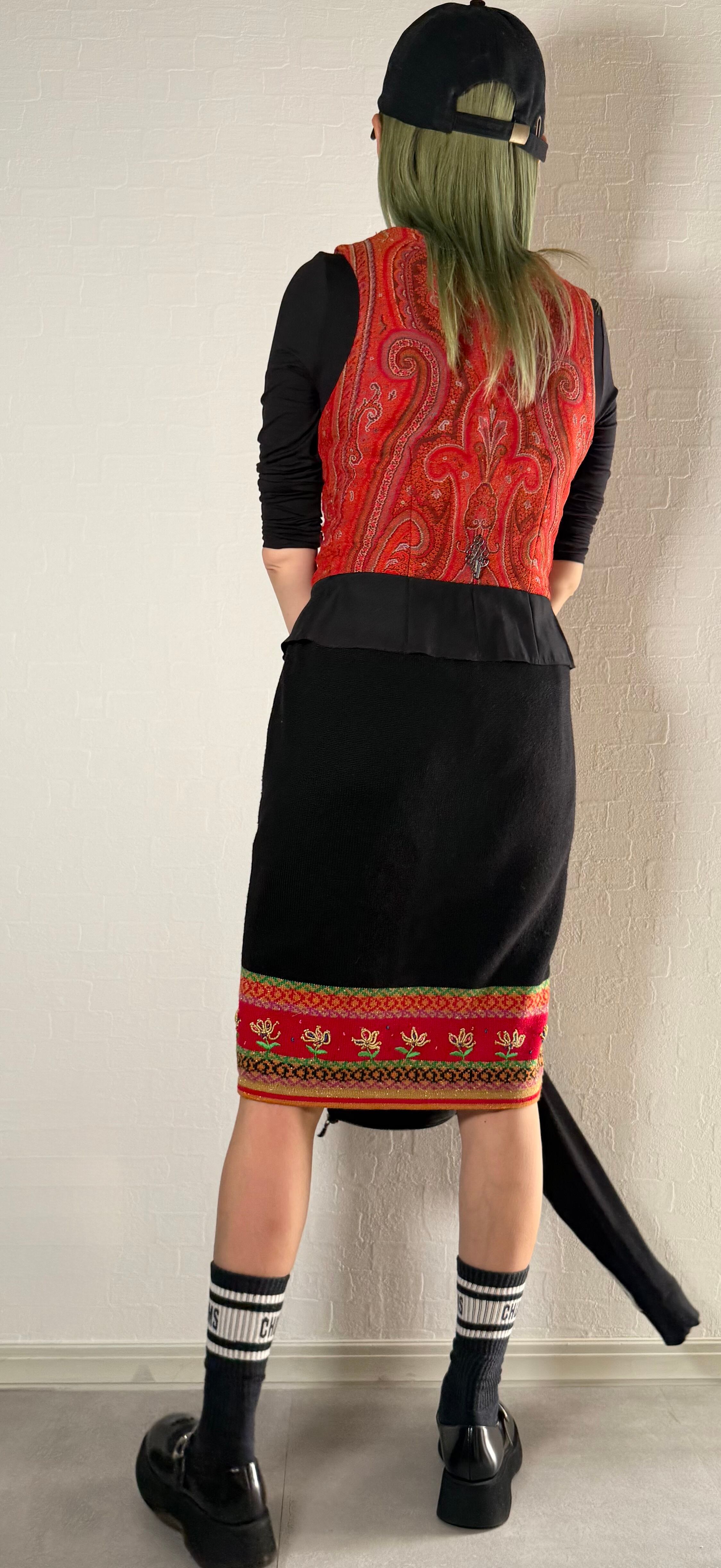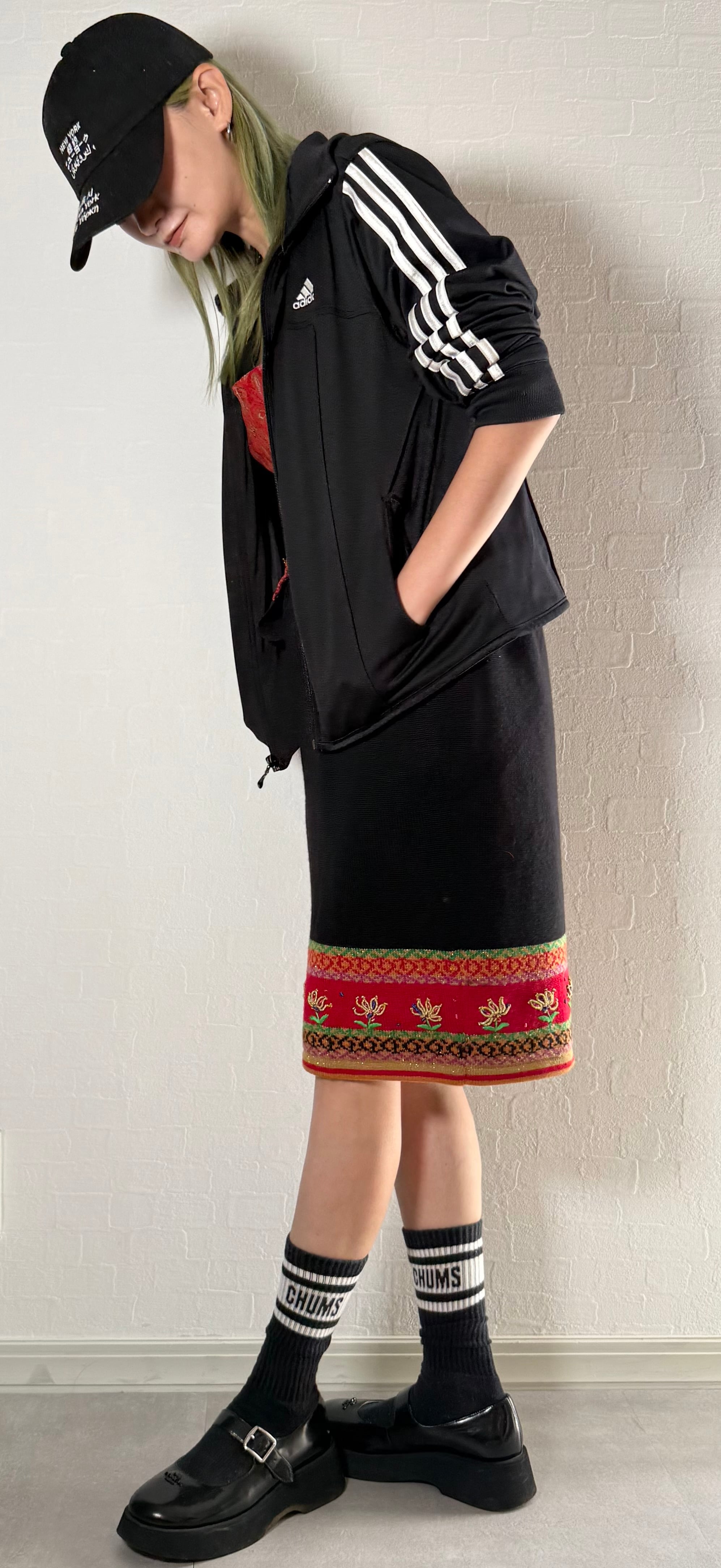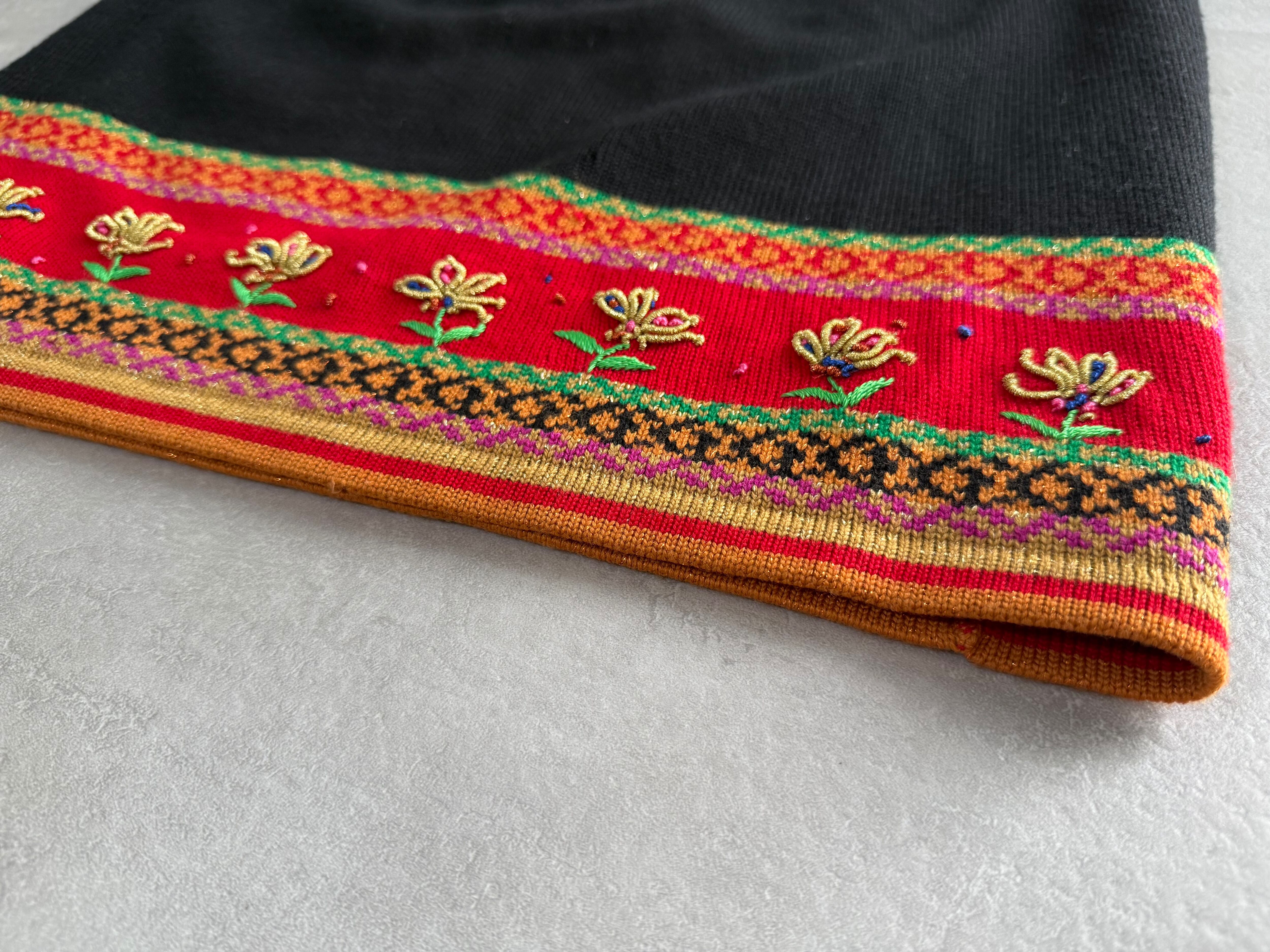 裾に花柄の刺繍があるニットタイトスカートです