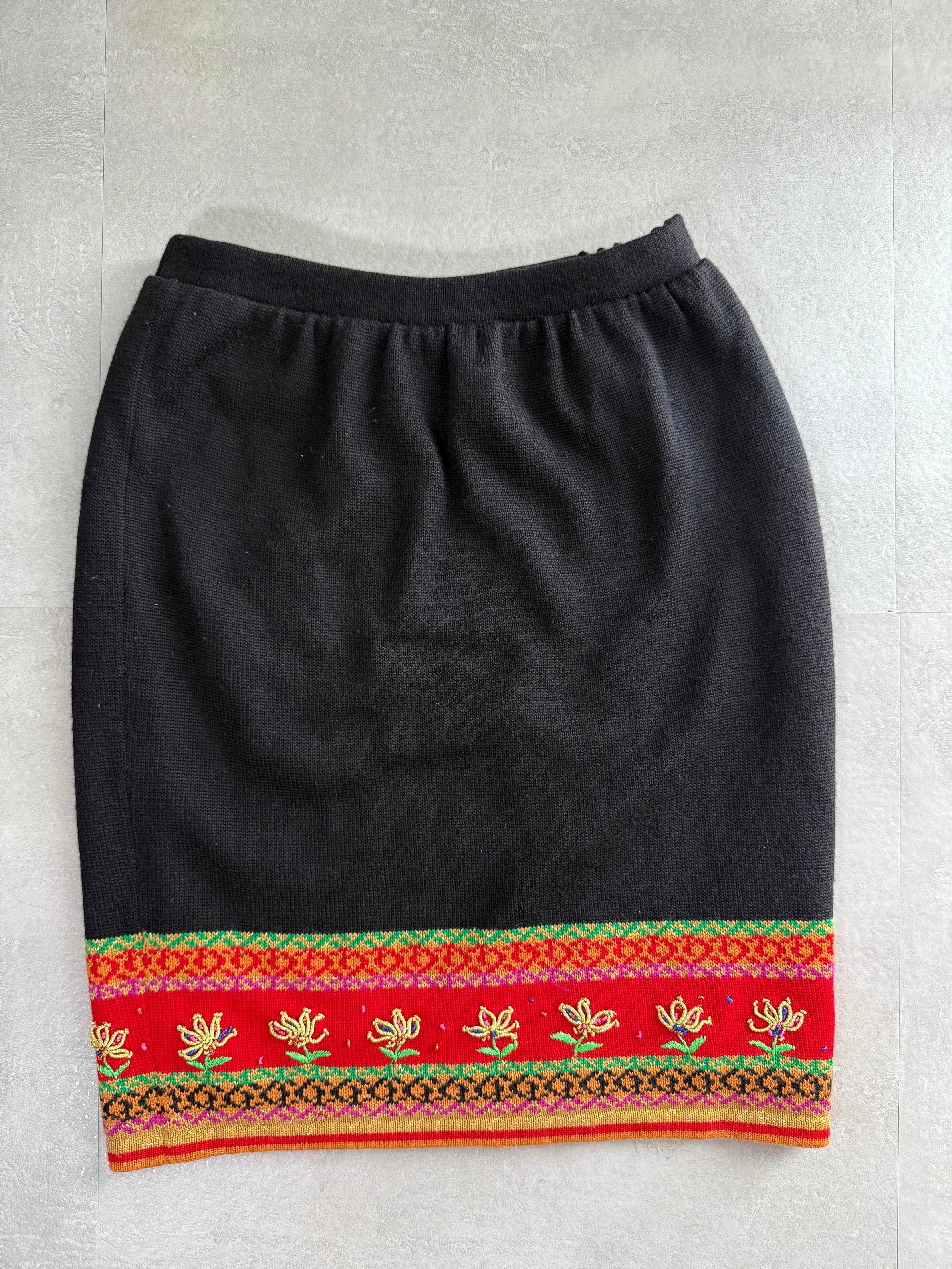 Flower Embroidery Knit Tight skirt