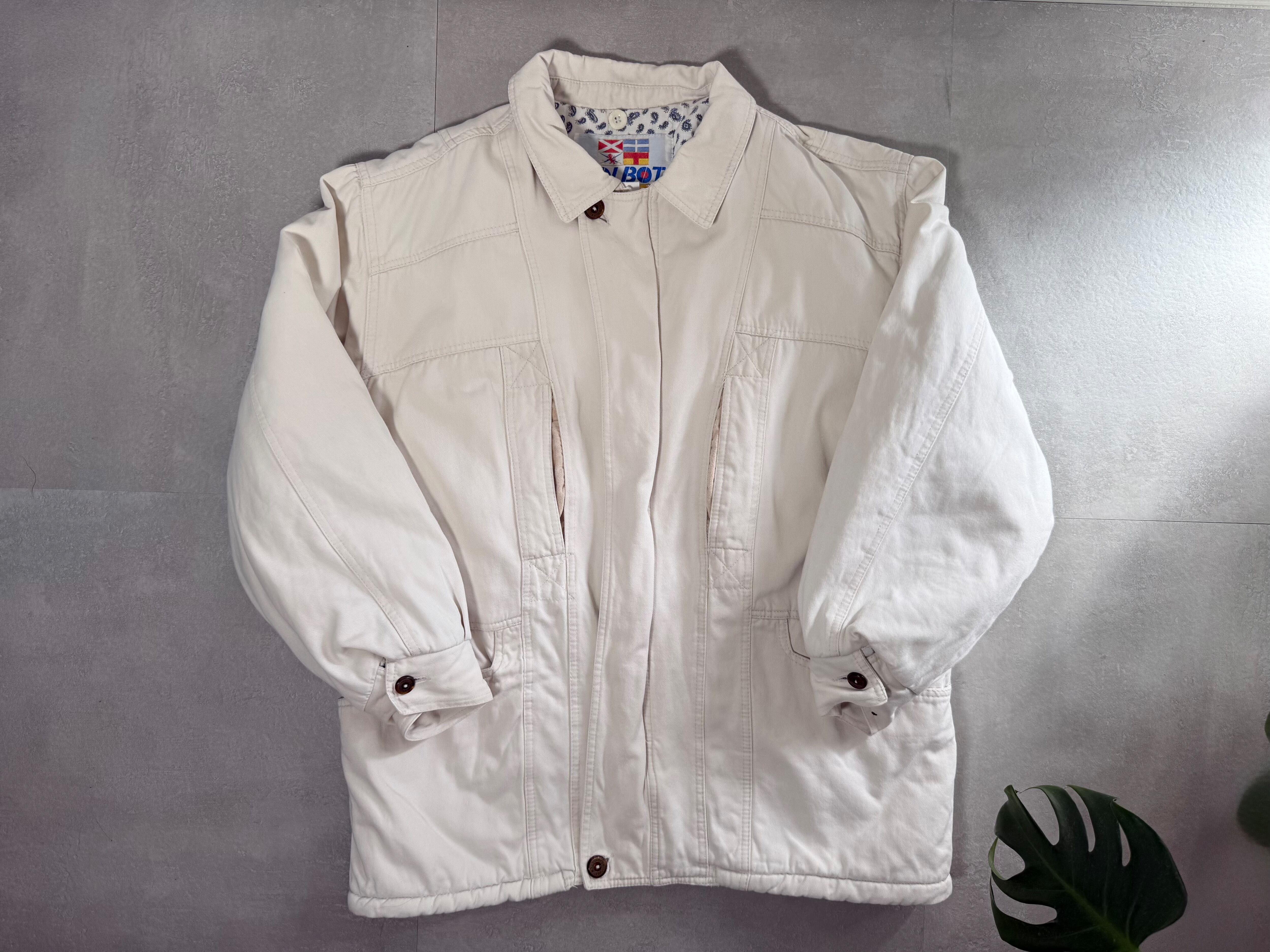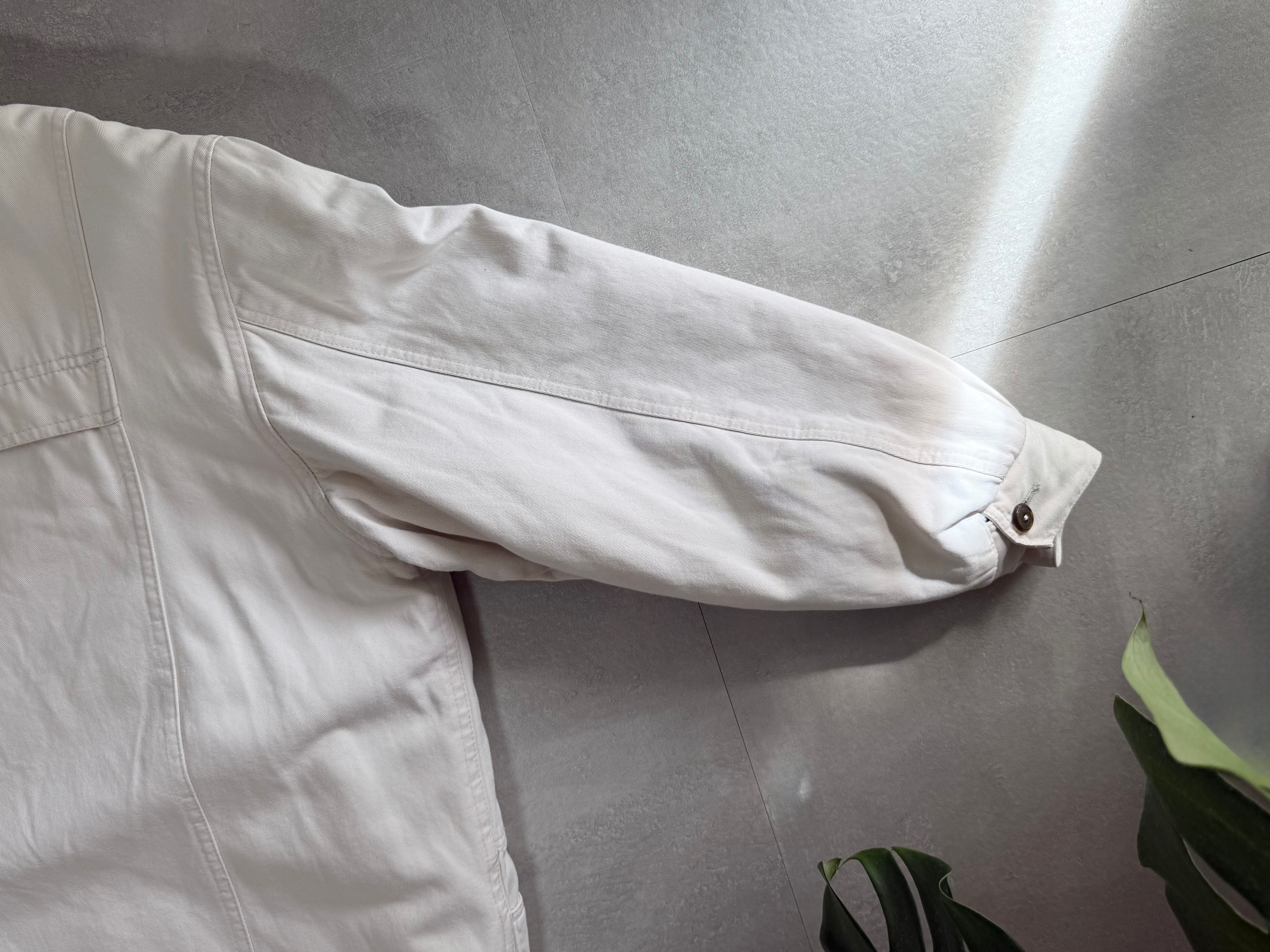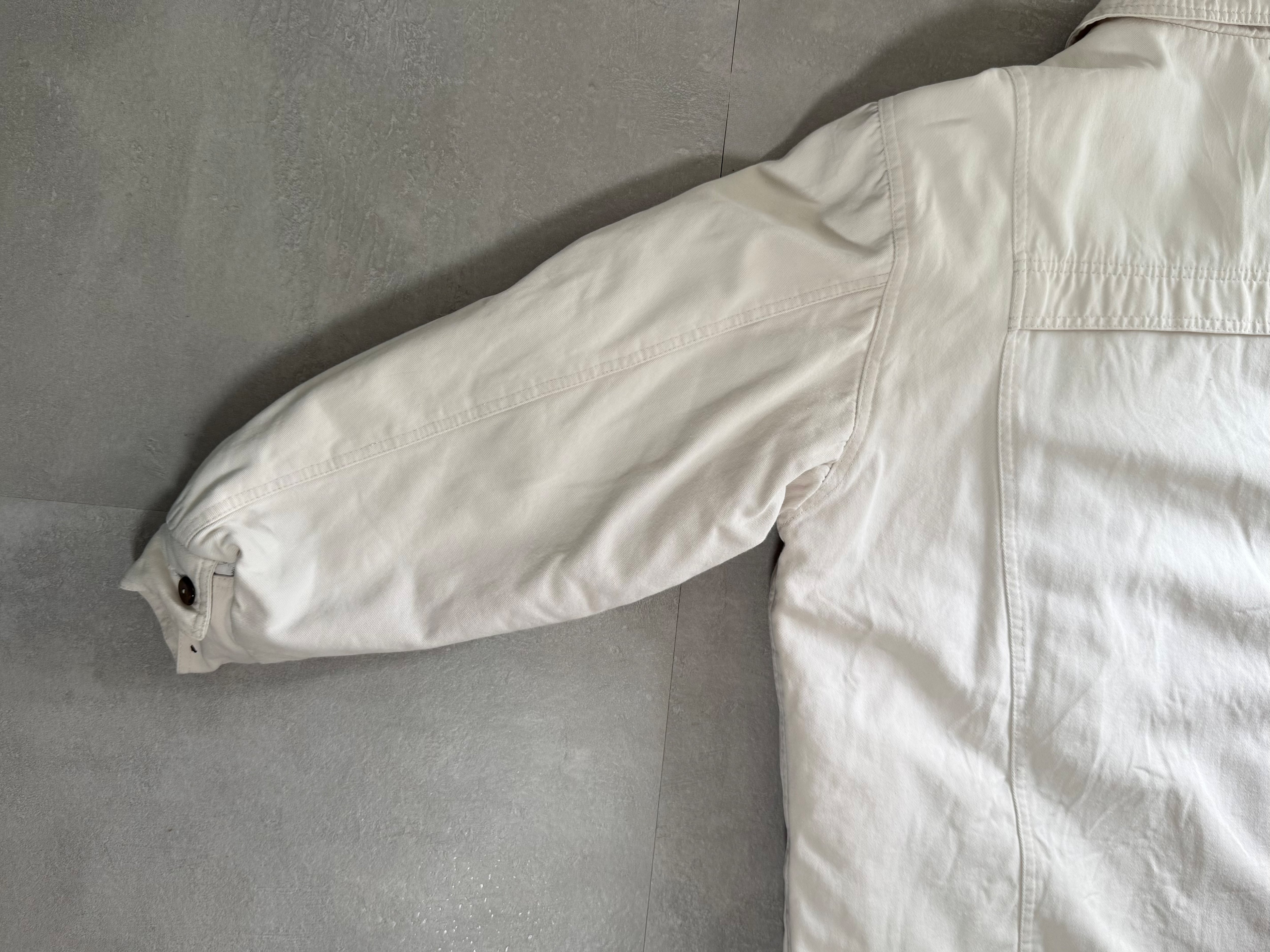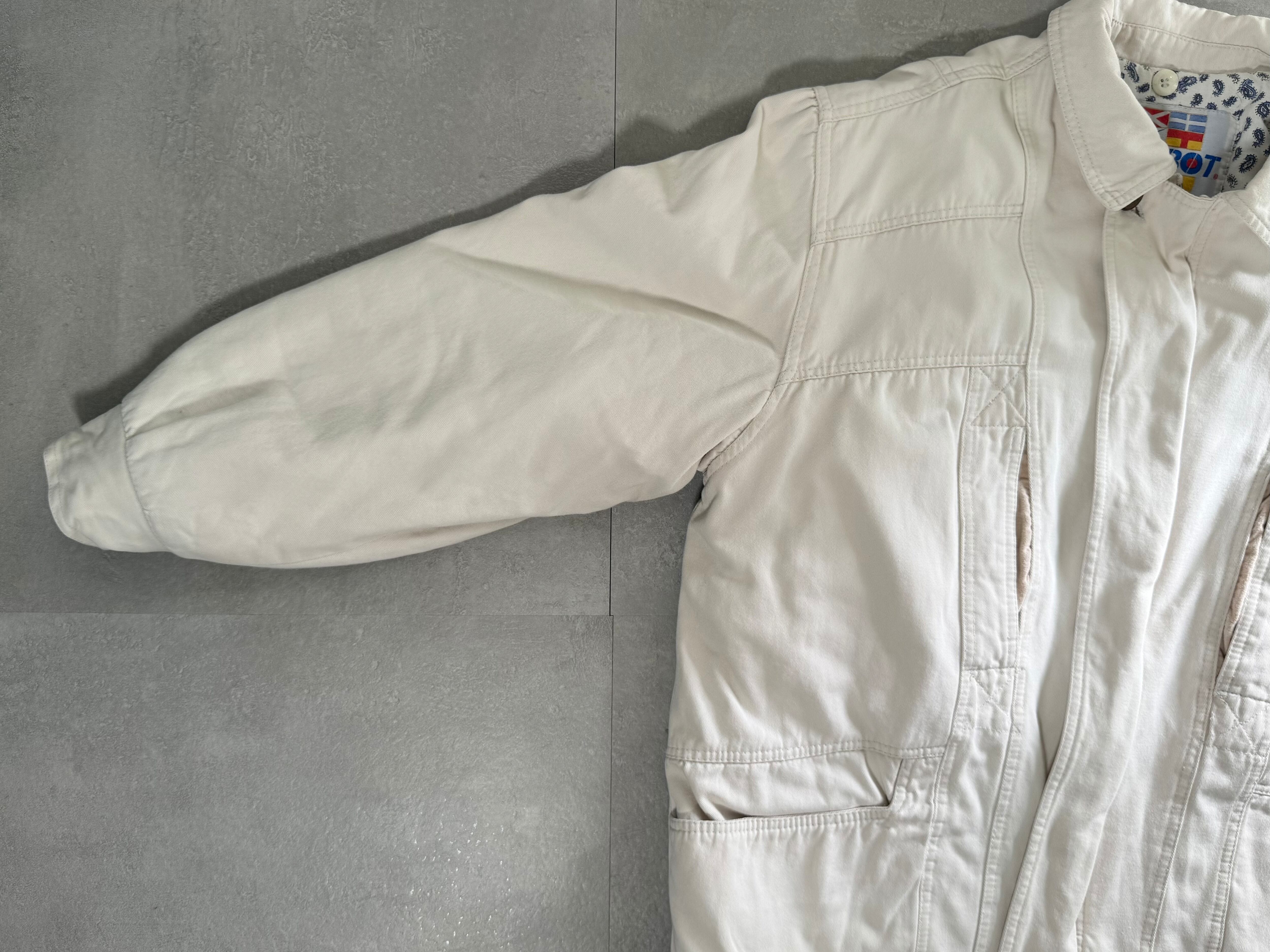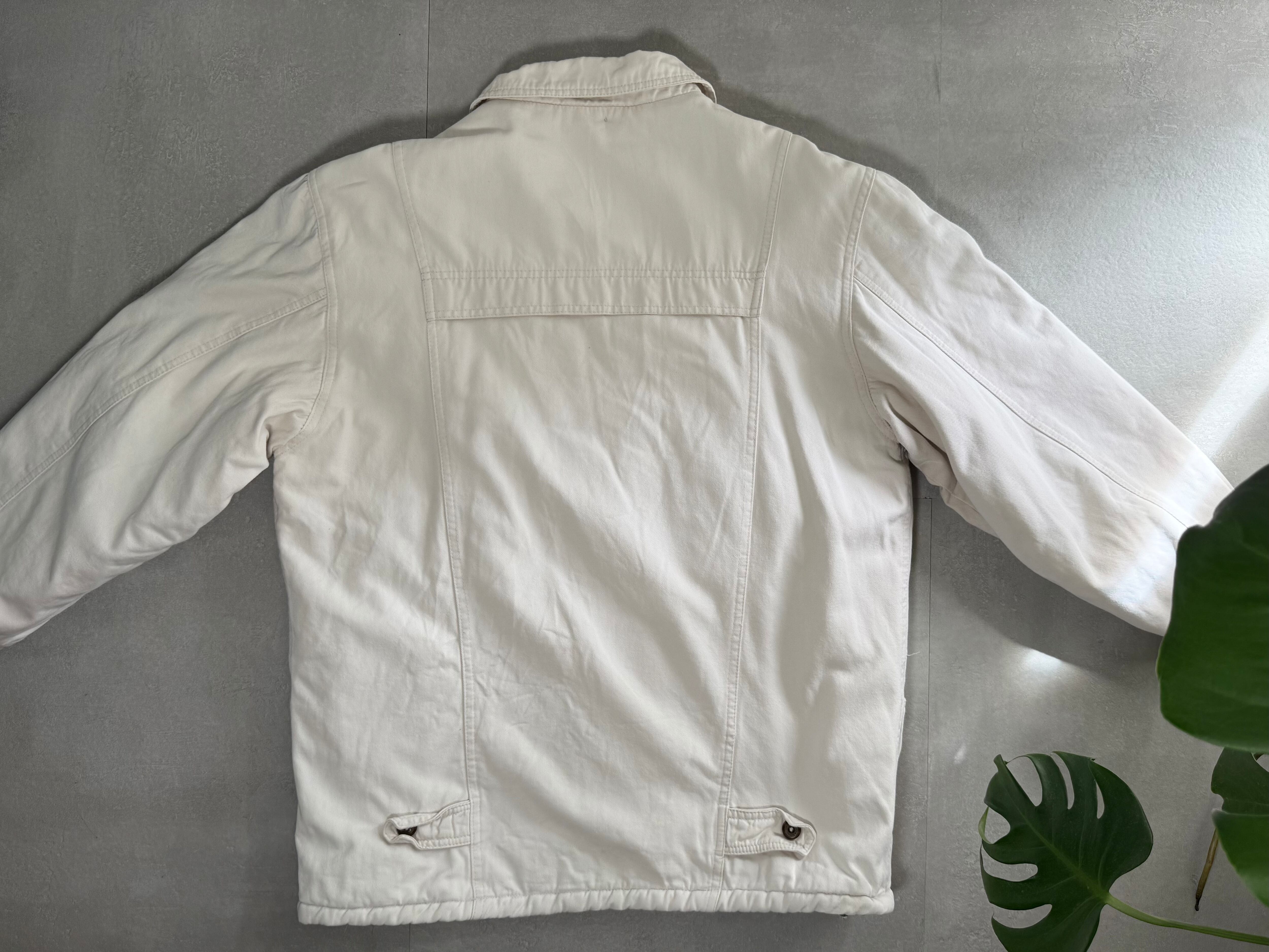 ペイズリー柄の裏地がさりげなく覗くデザインで、古着らしい遊び心と品の良さを感じる1着です。