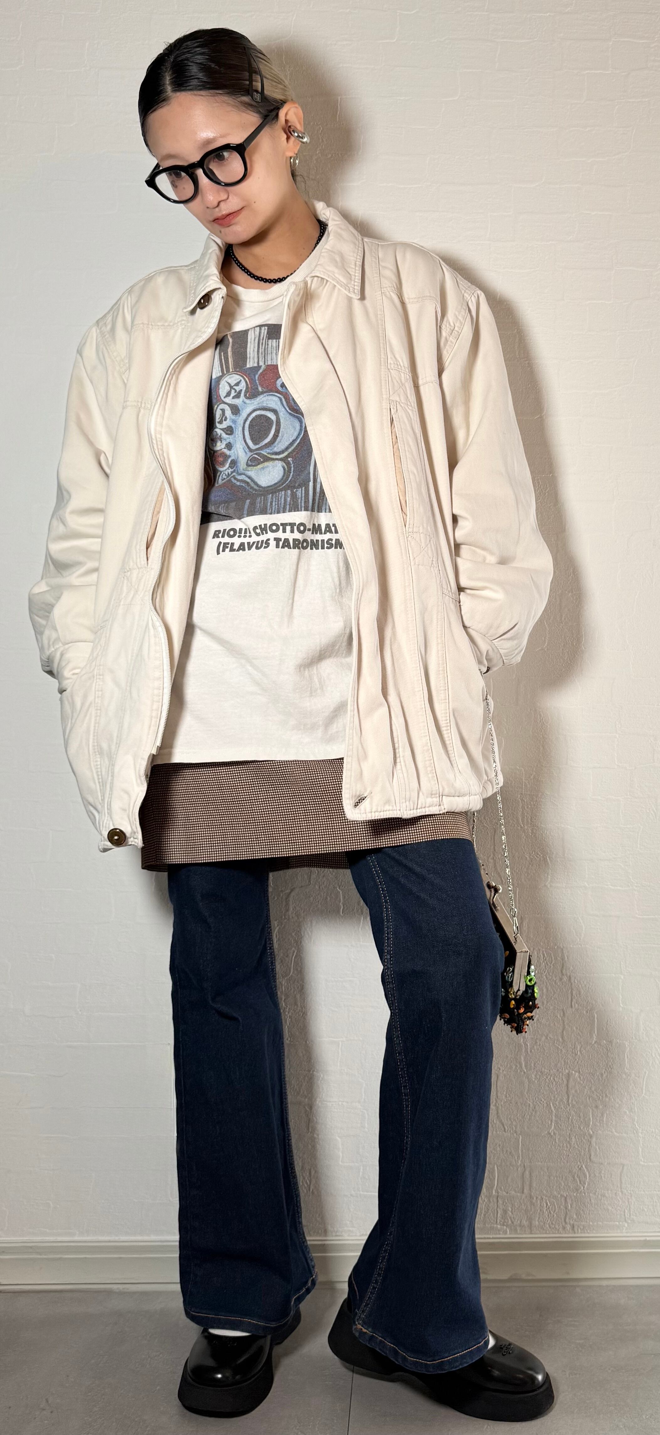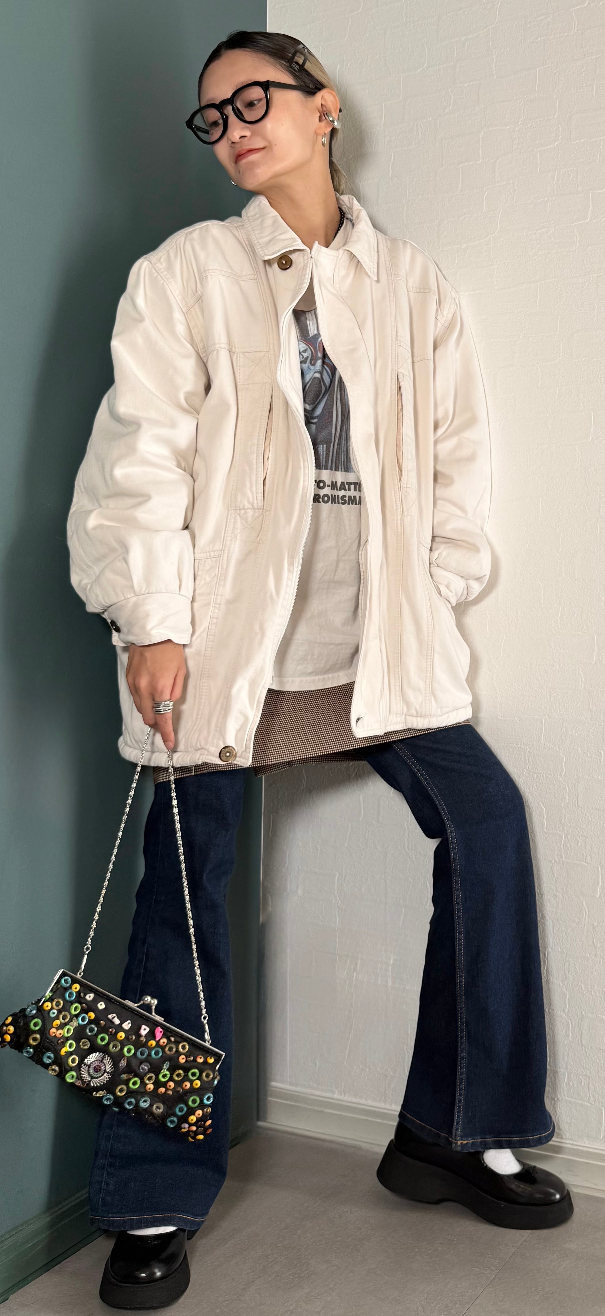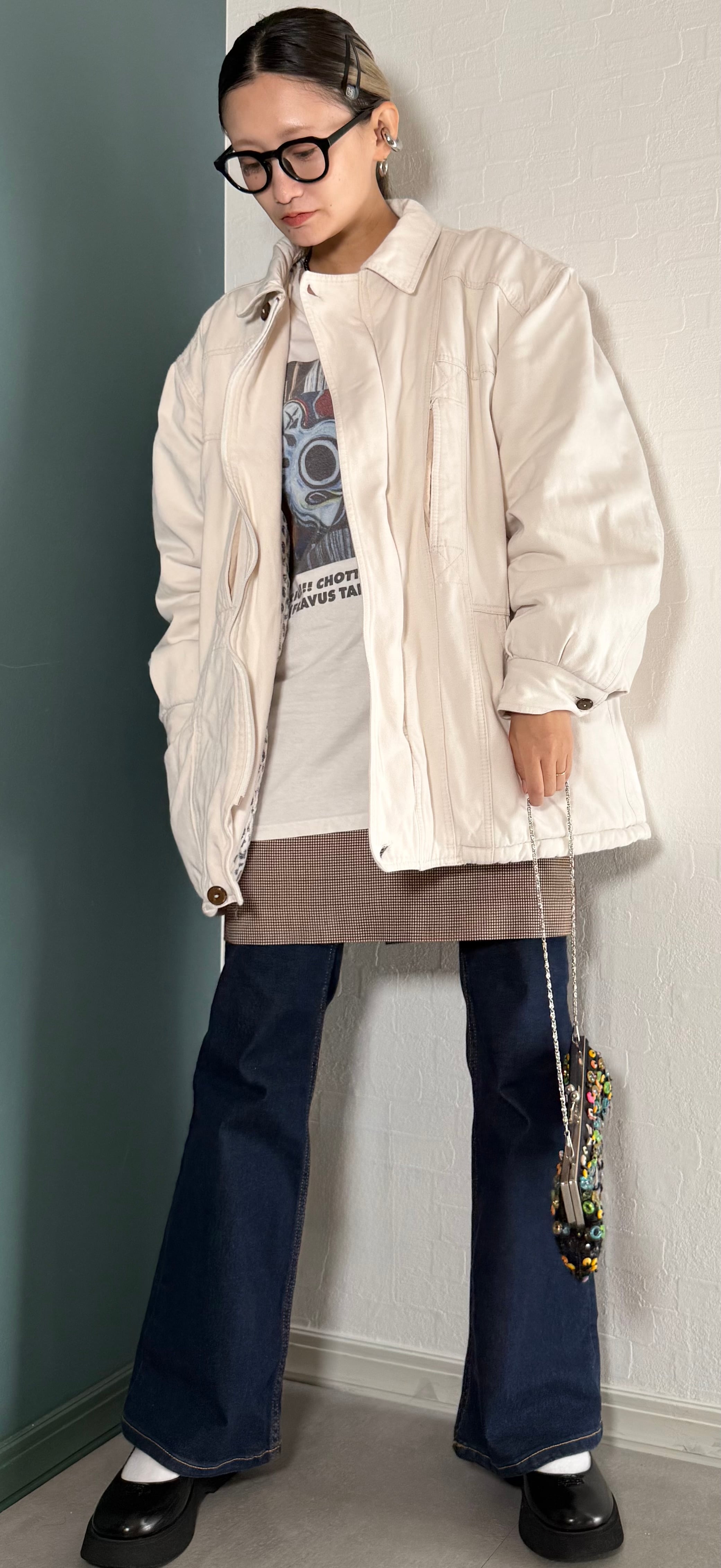 ビッグシルエットなのでボトムをコンパクトにすると今っぽいコーディネートに