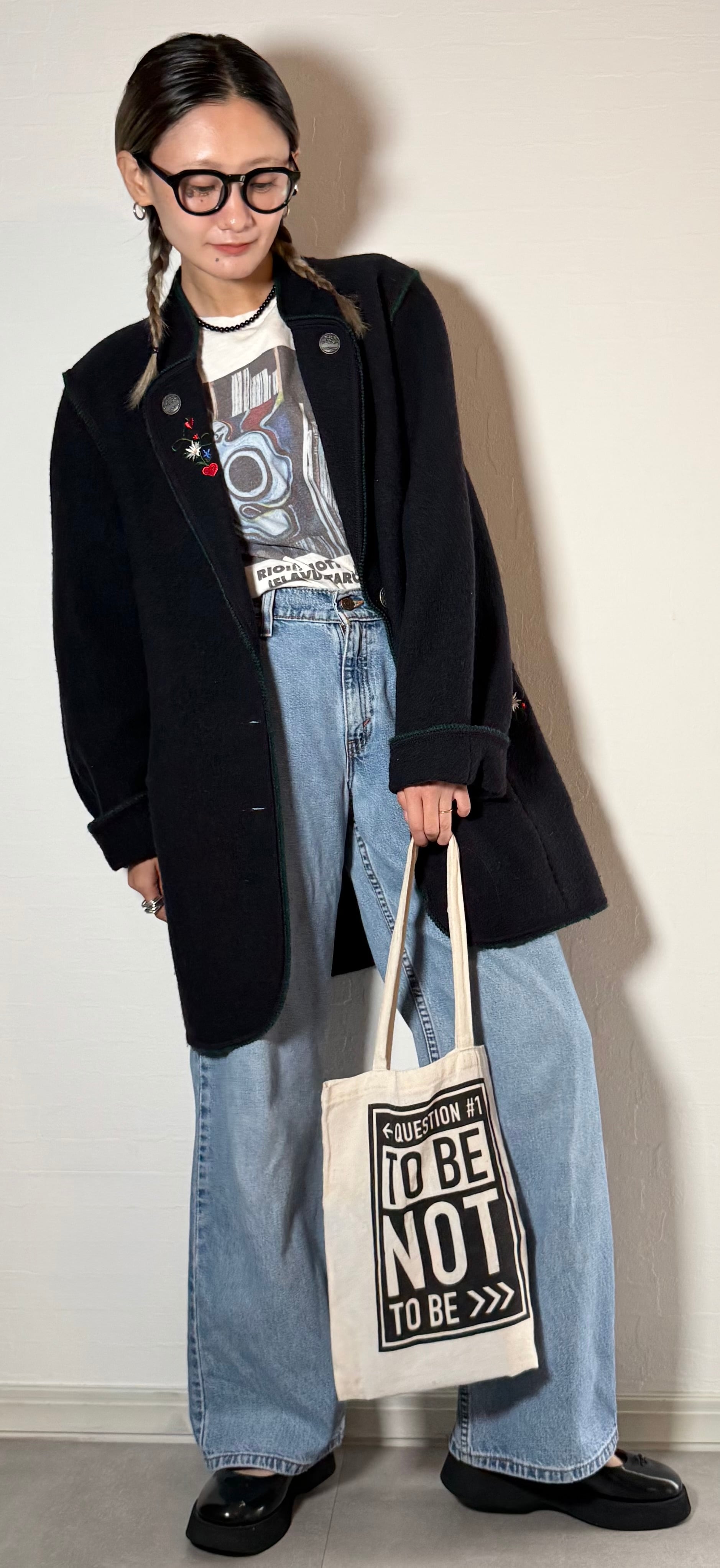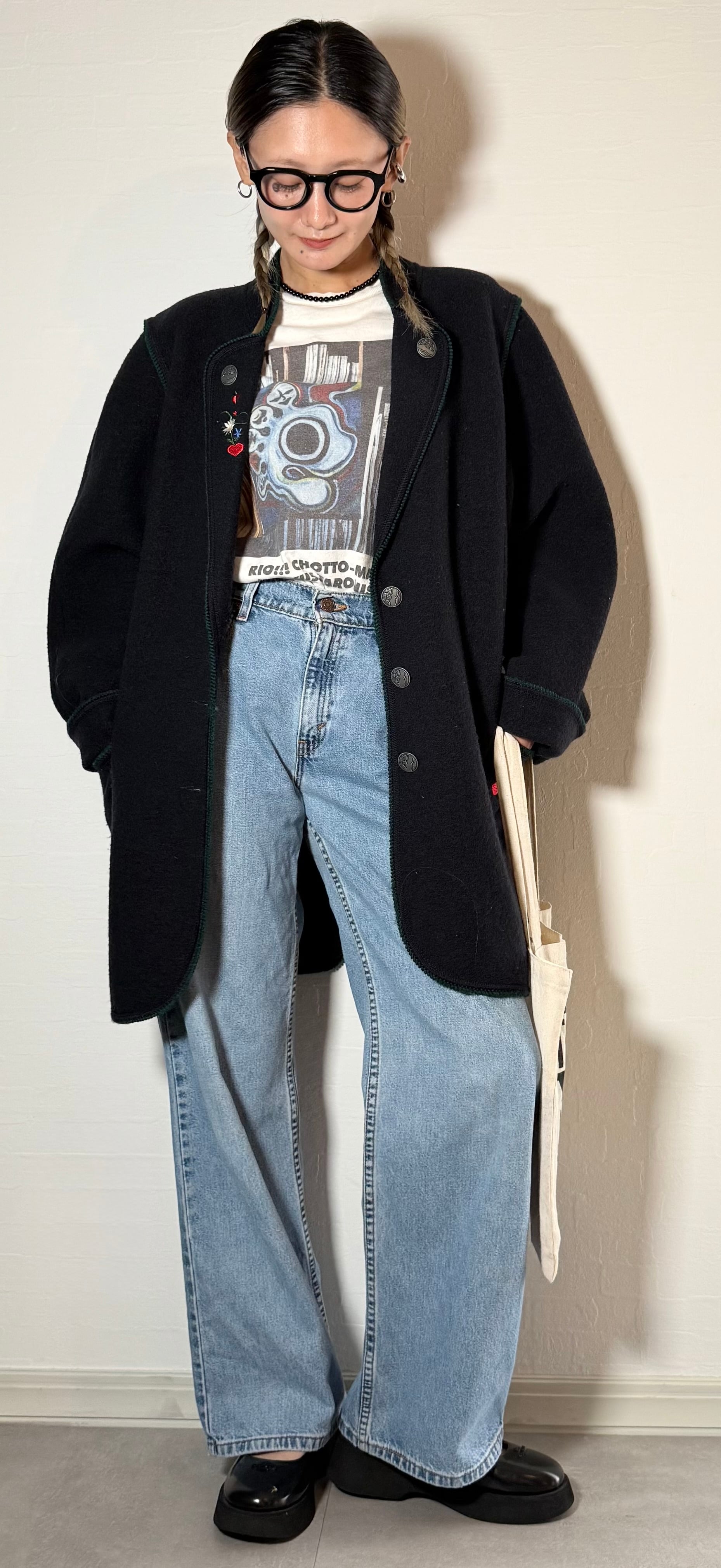 古着らしいクラシックな雰囲気を楽しめるアイテムで、モードにもナチュラルにも合わせやすい一枚です。