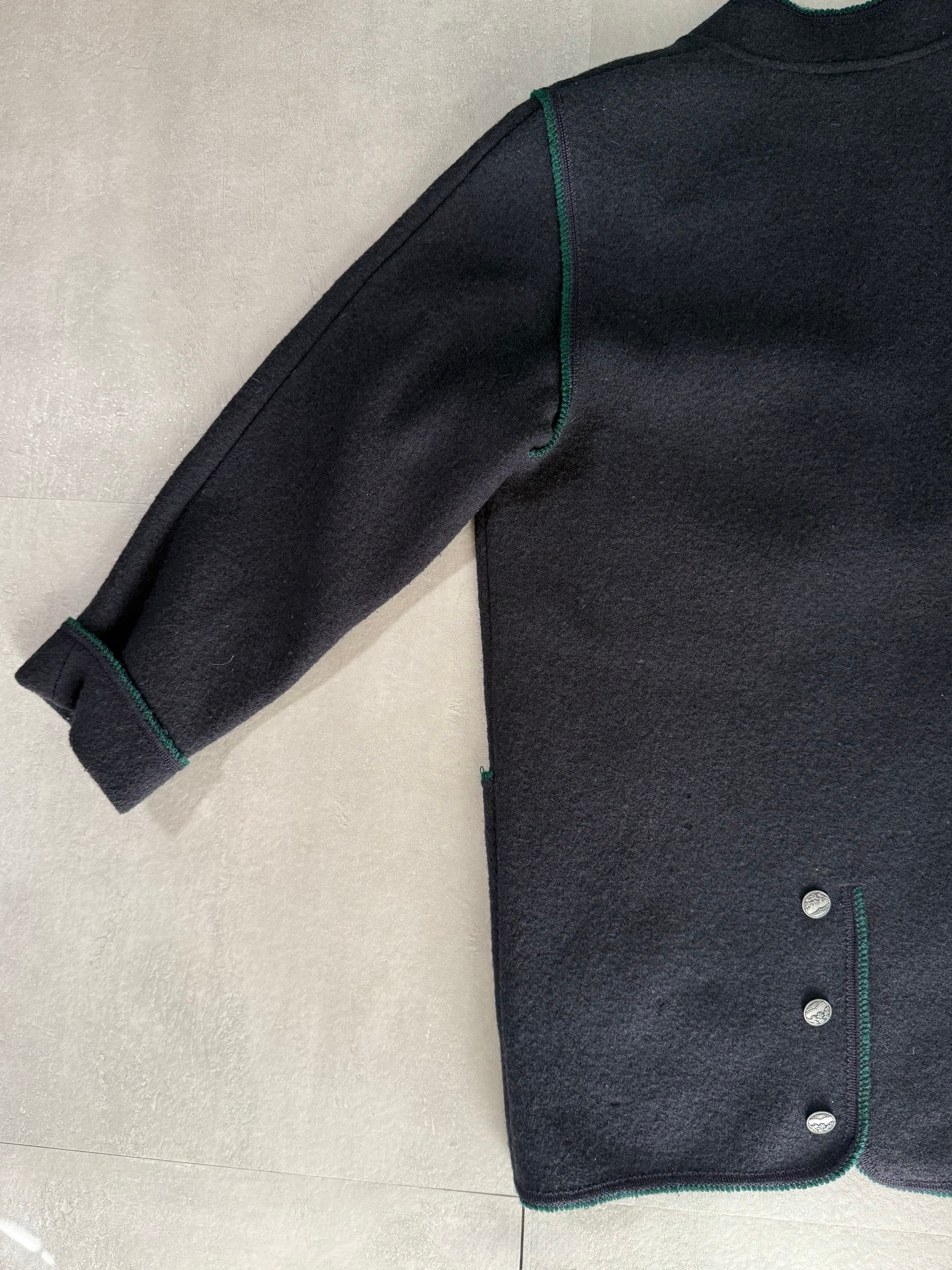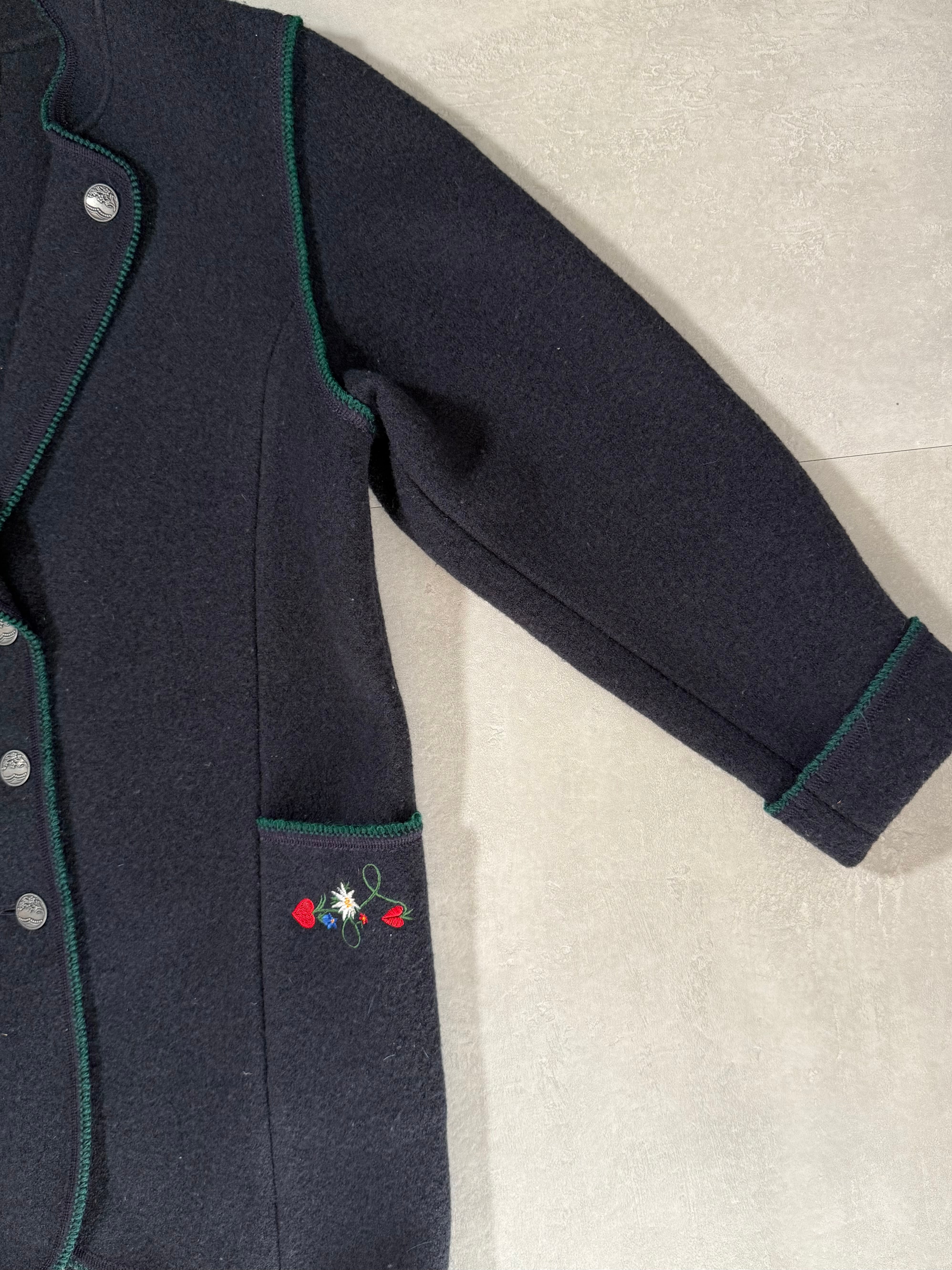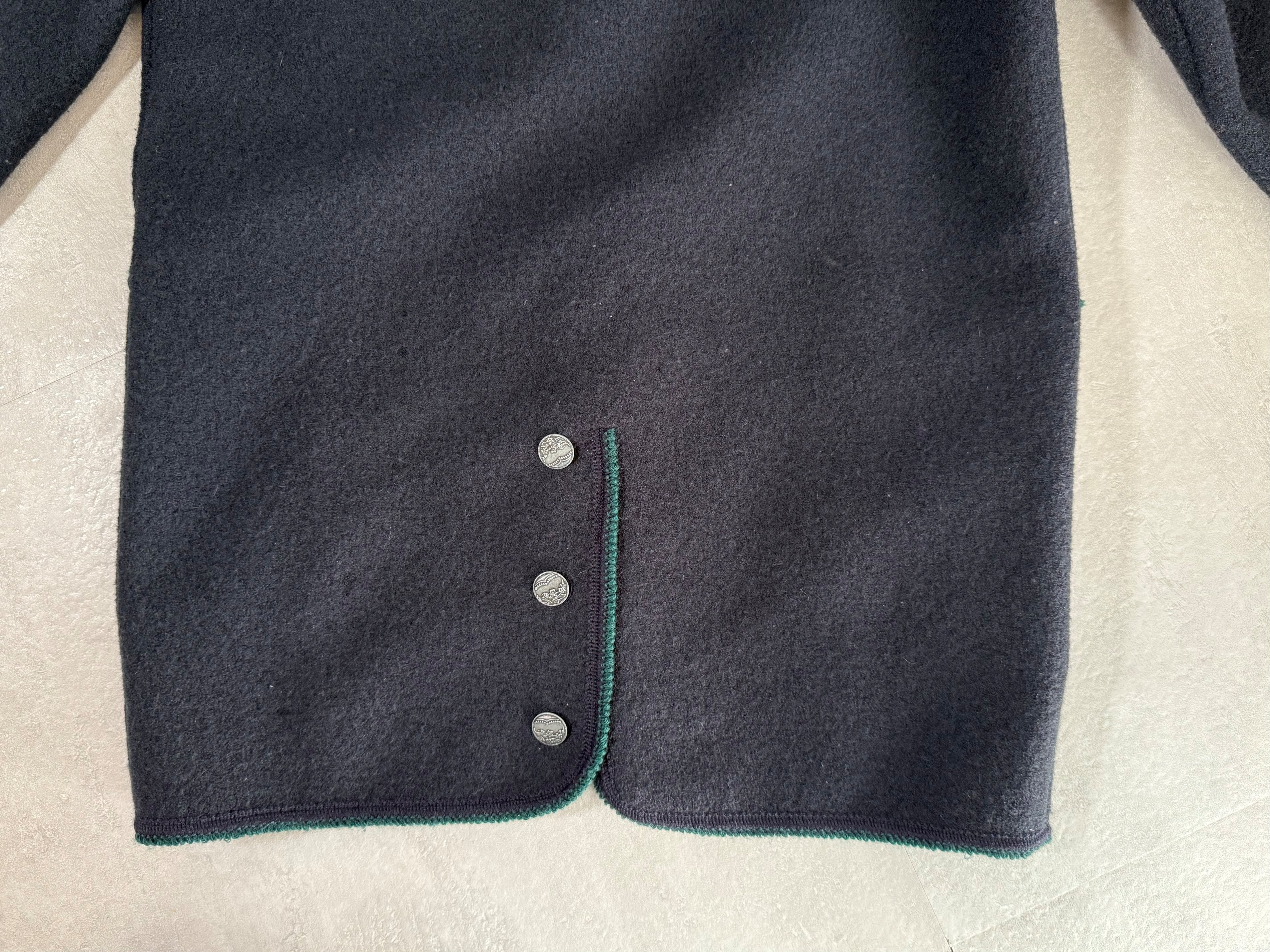 チロル地方の民族衣装をモチーフにしたデザインで、メタルボタンやしっかりとしたウールフェルト素材が高級感を演出。