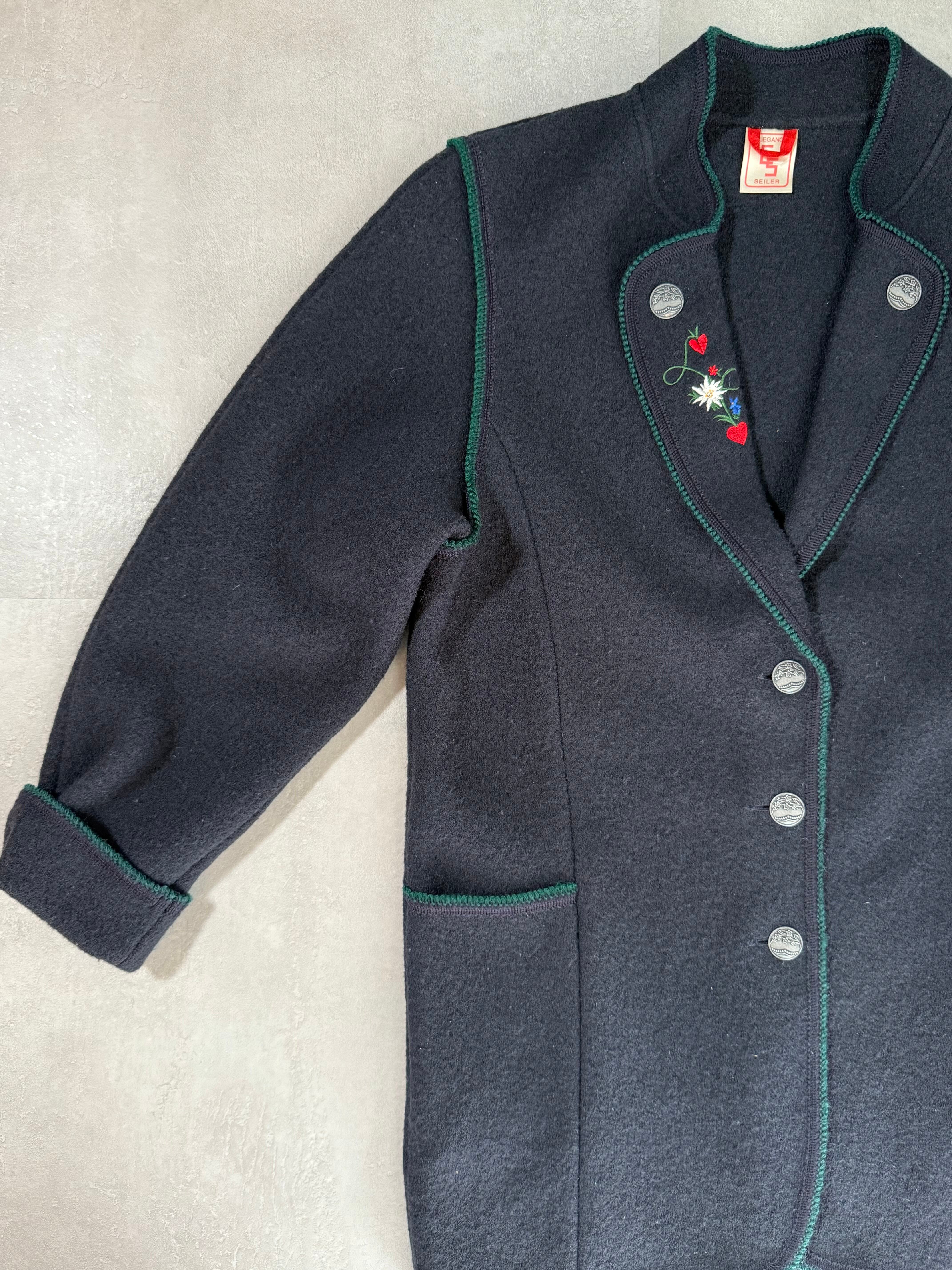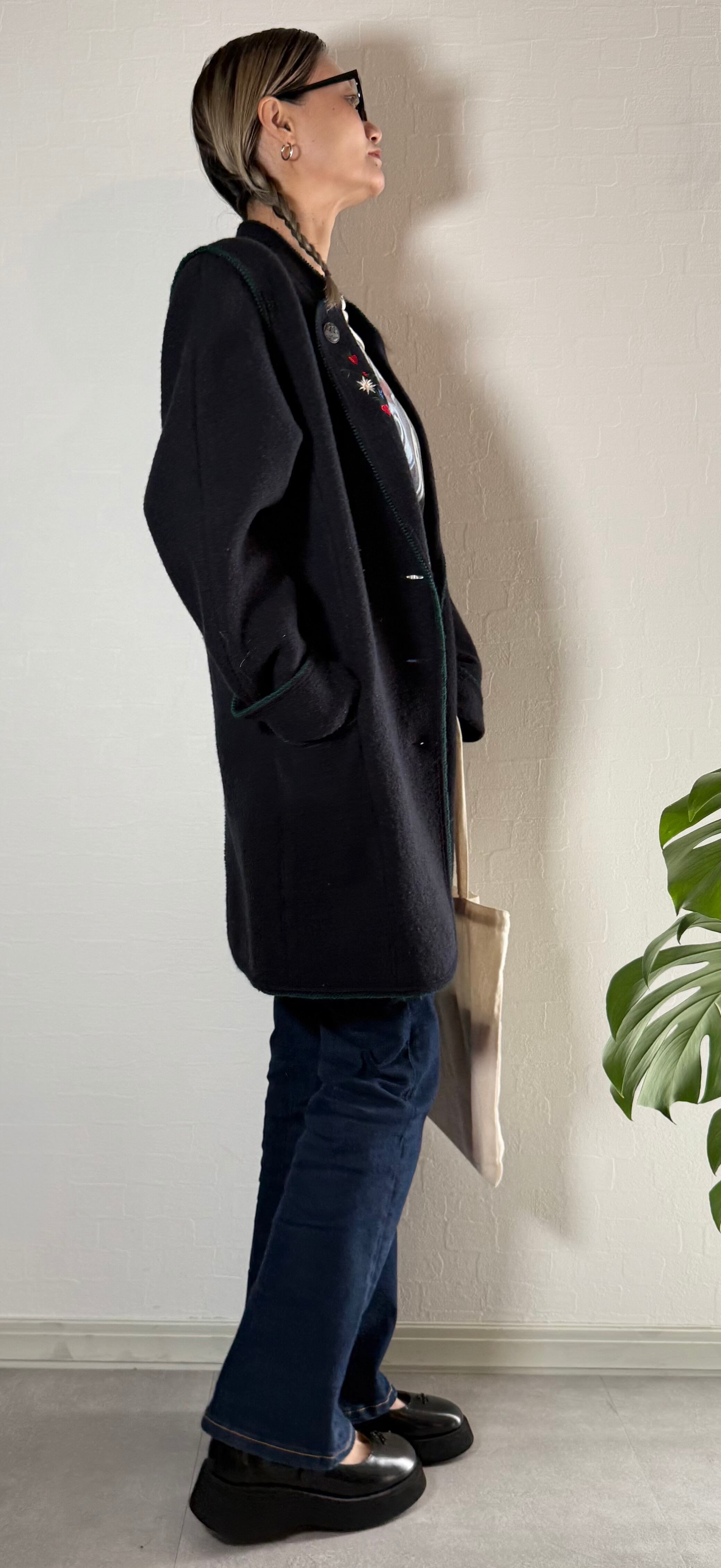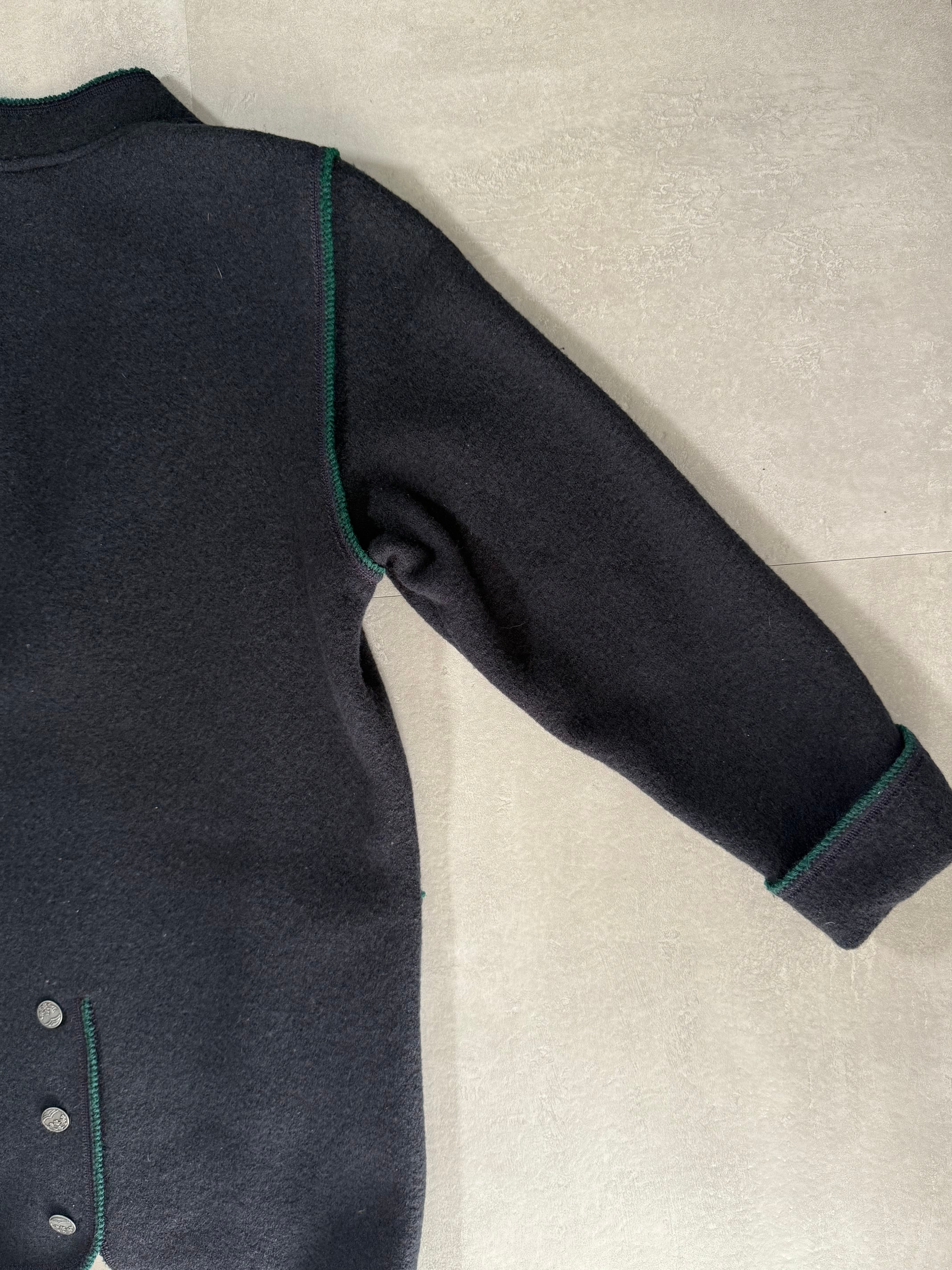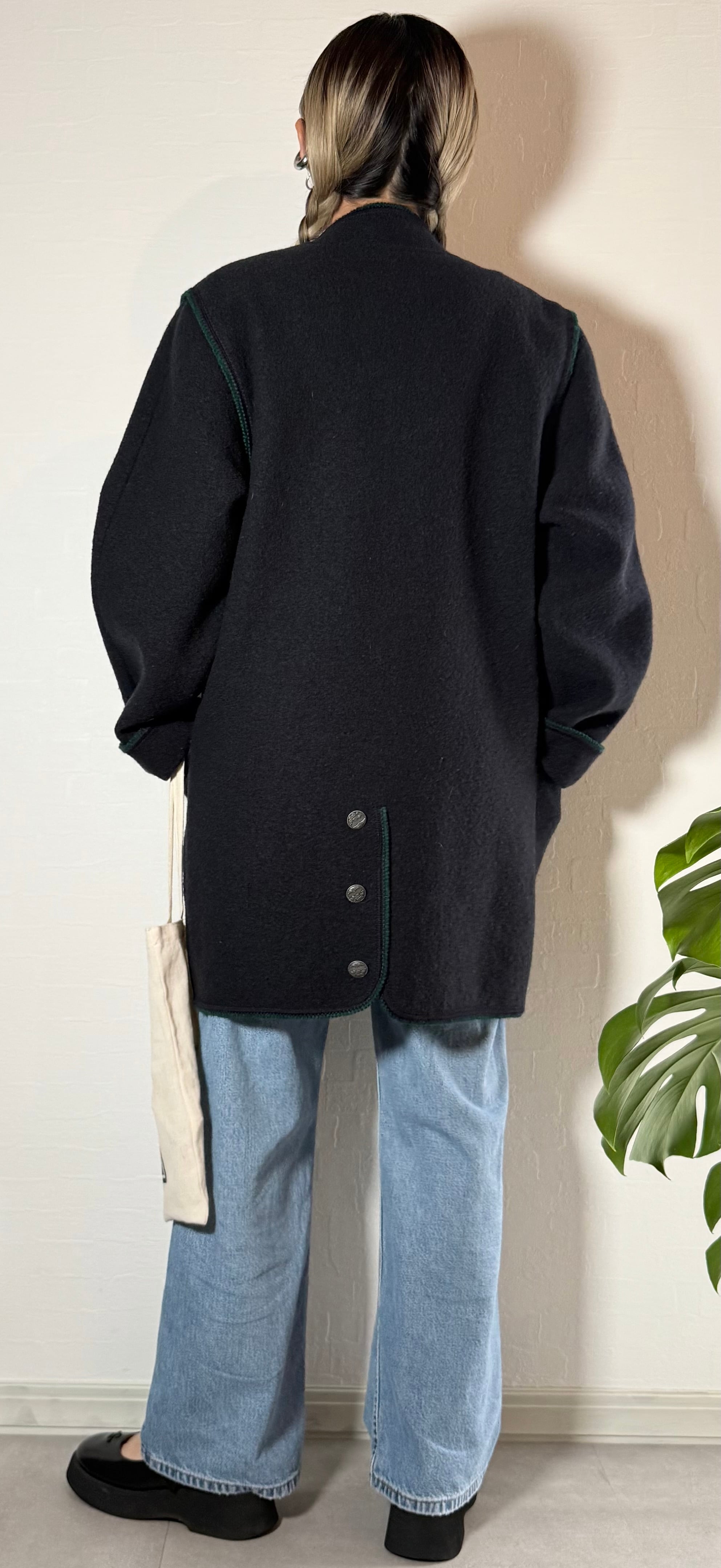 チロル地方の民族衣装をモチーフにしたデザインで、メタルボタンやしっかりとしたウールフェルト素材が高級感を演出。