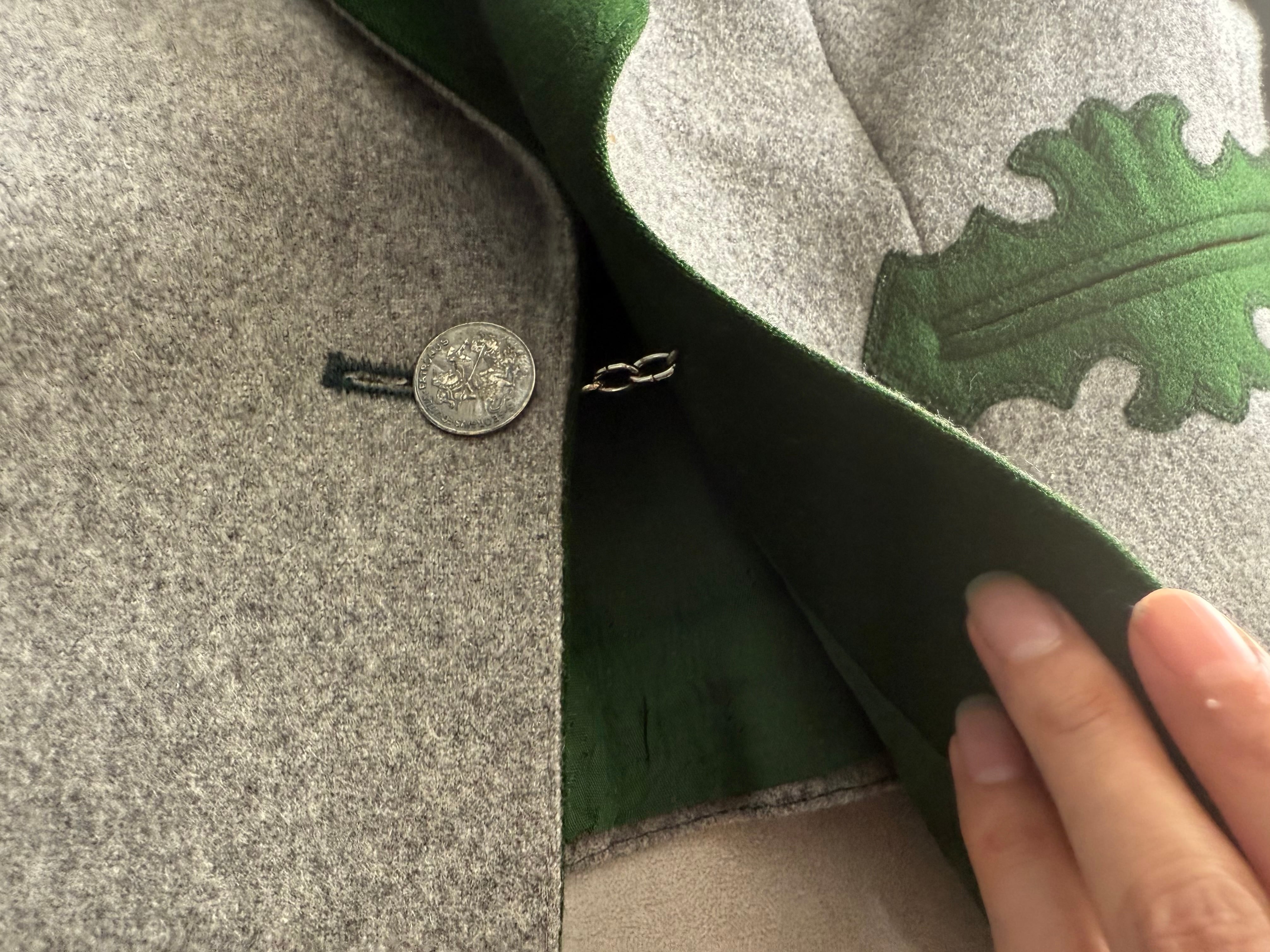裏地まで深いグリーンで統一され、高級感のある仕立て。
