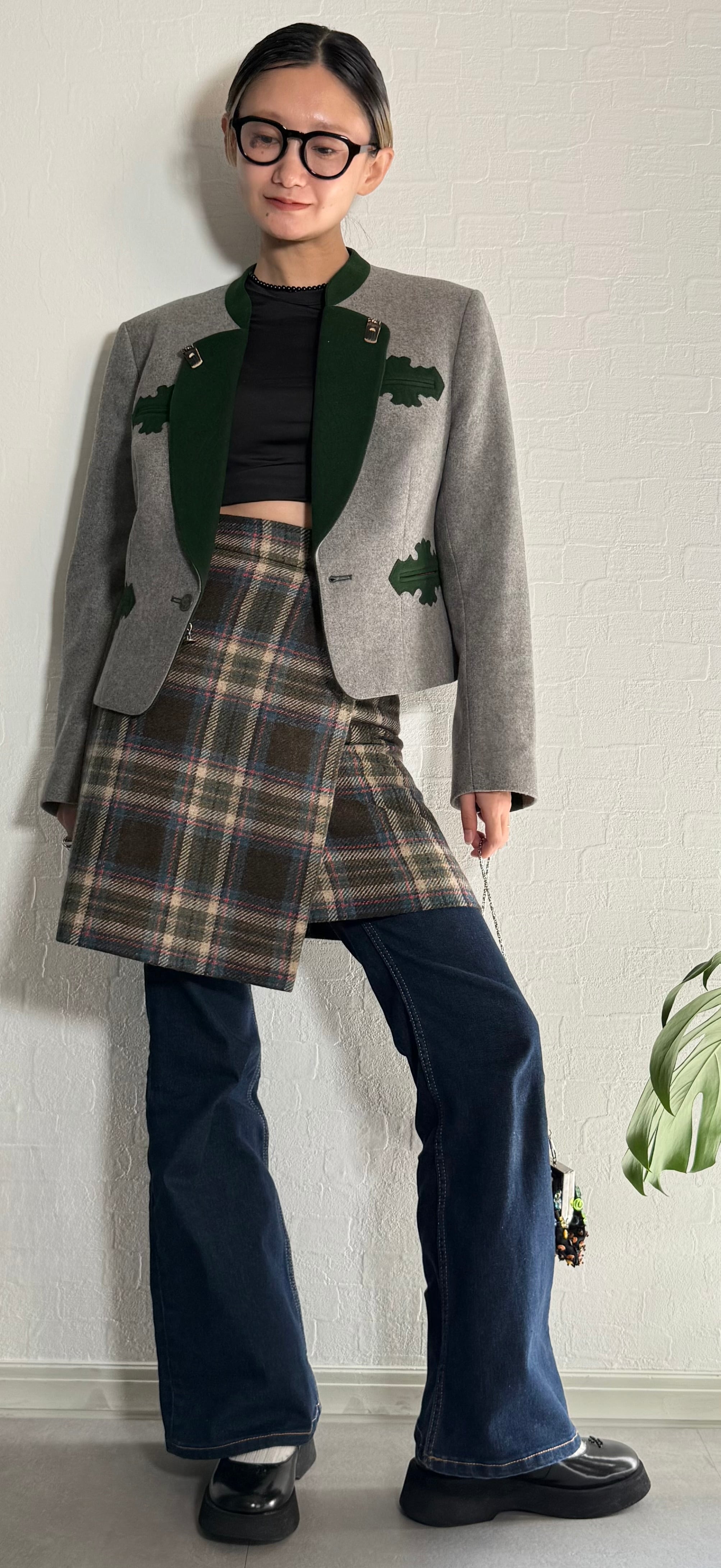 伝統的なチェックパターンと上質なウールの風合いが魅力の一着です。