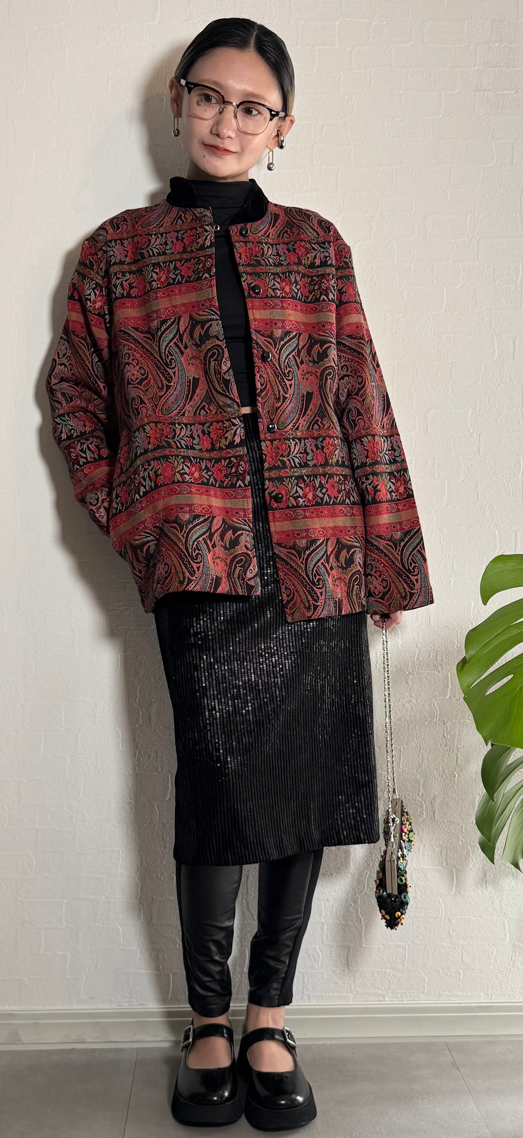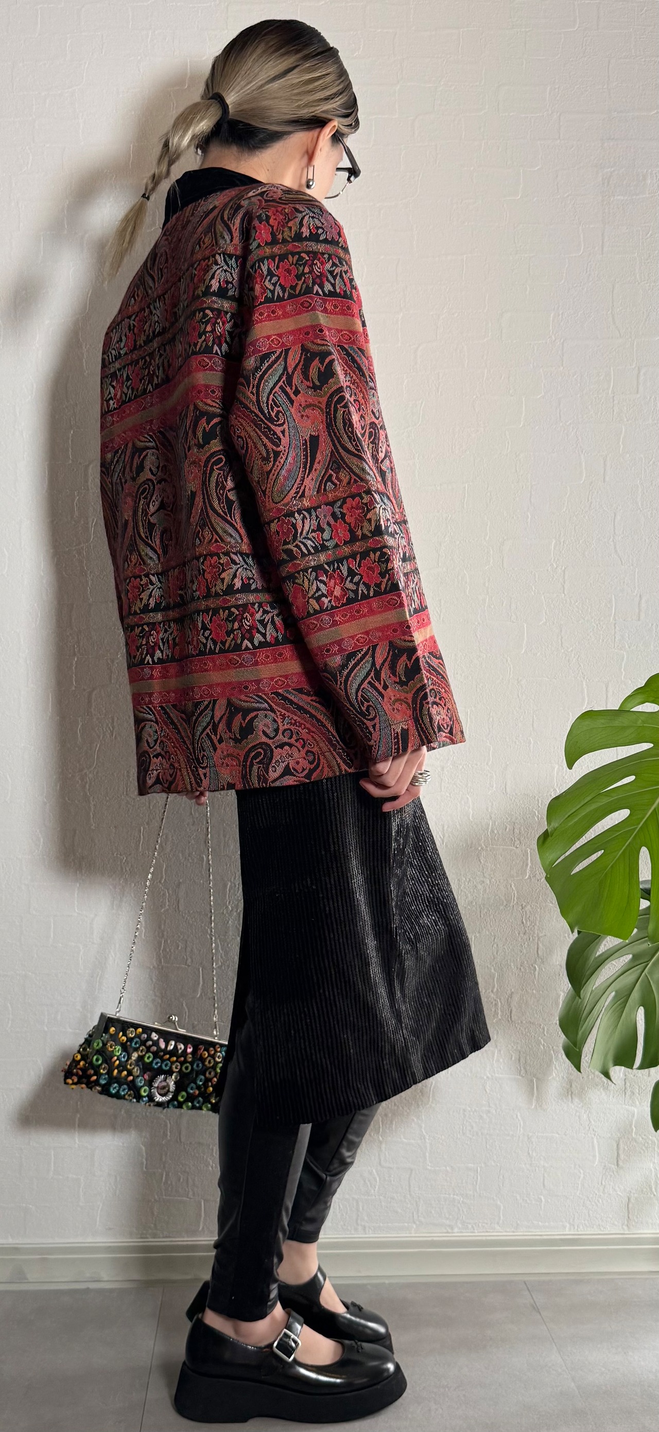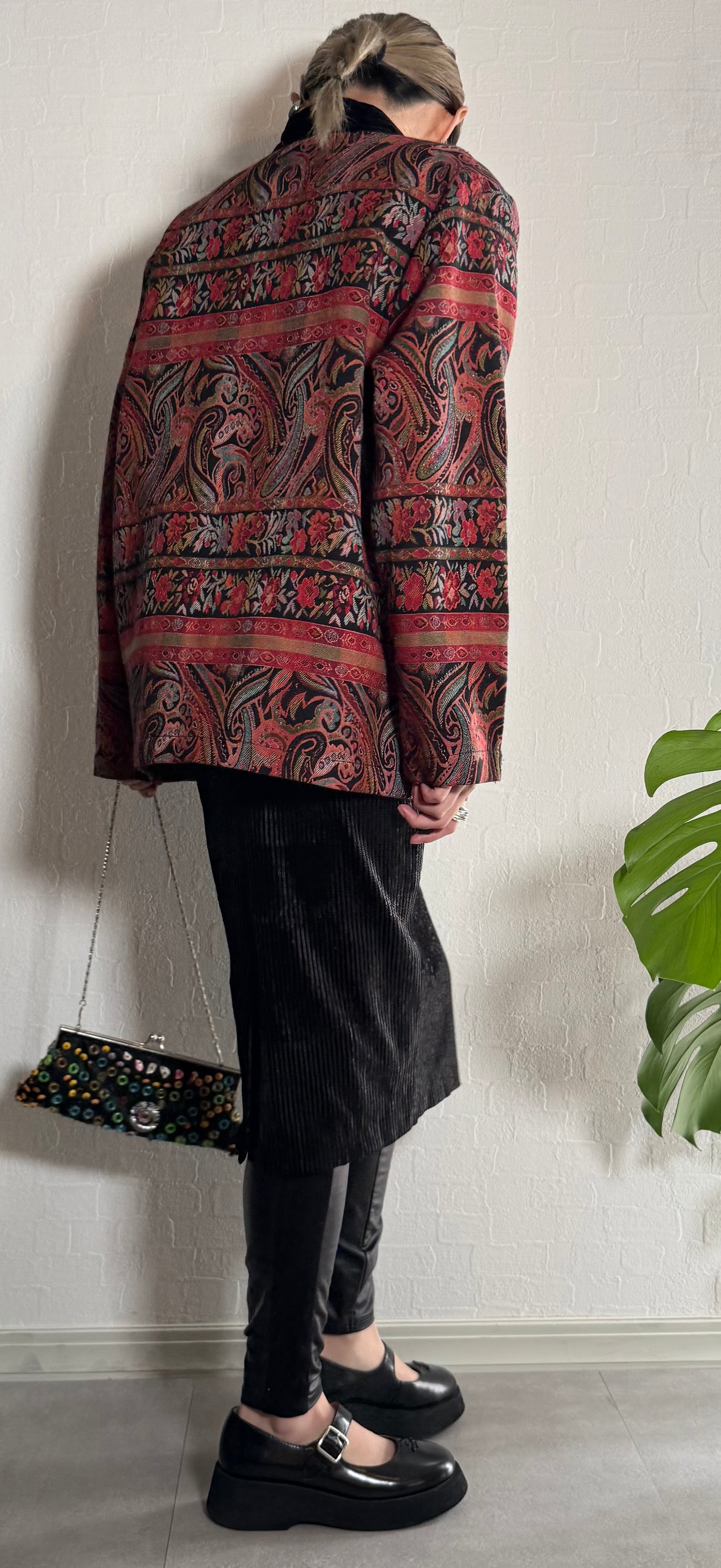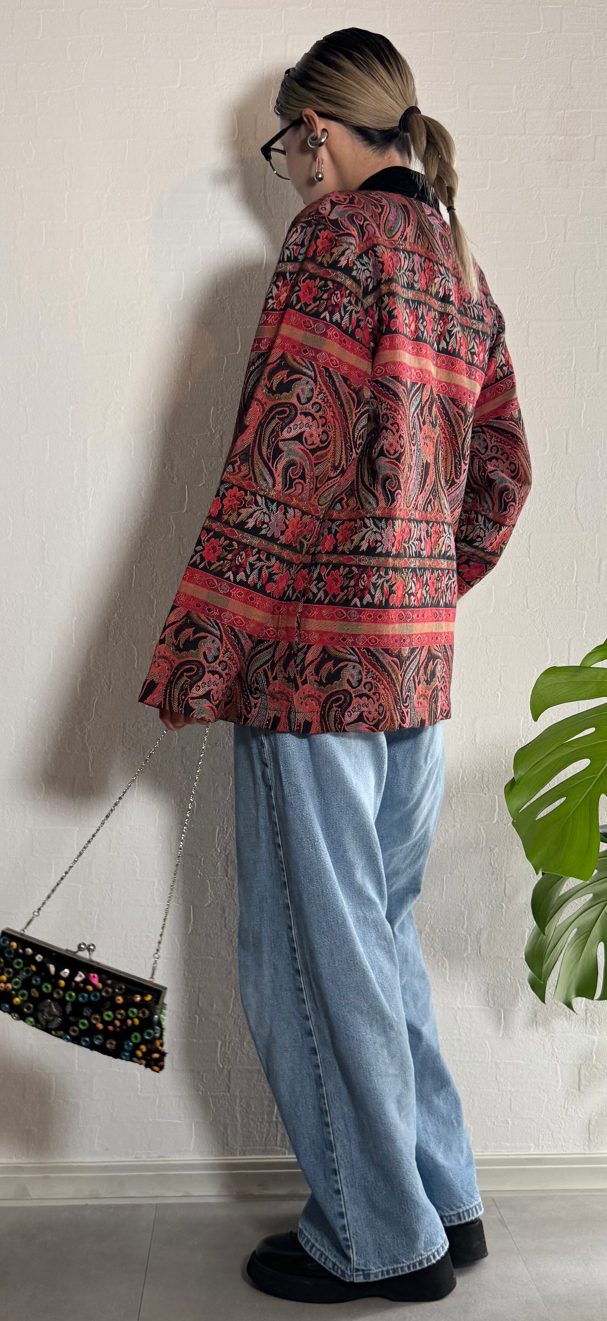 ペイズリーと花柄のジャカード織りが美しい