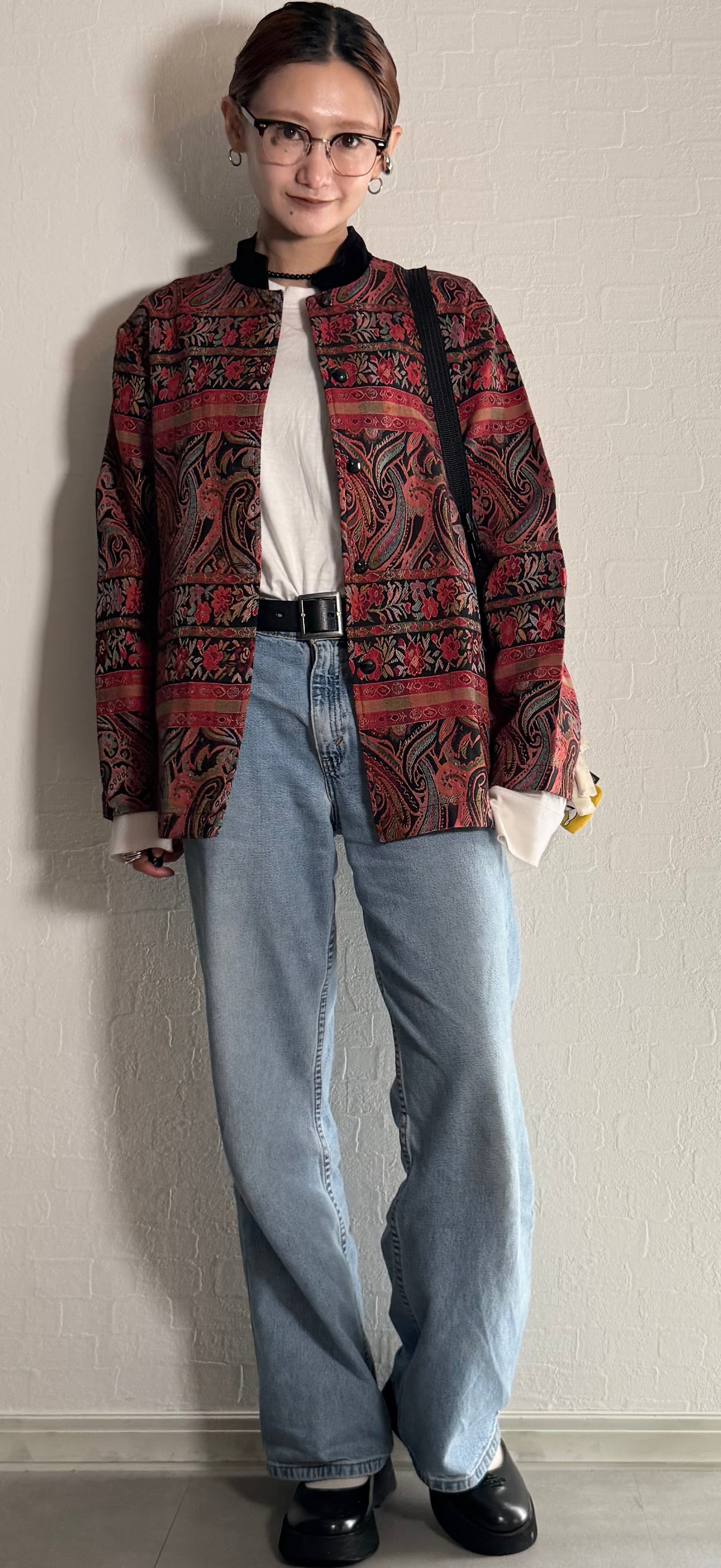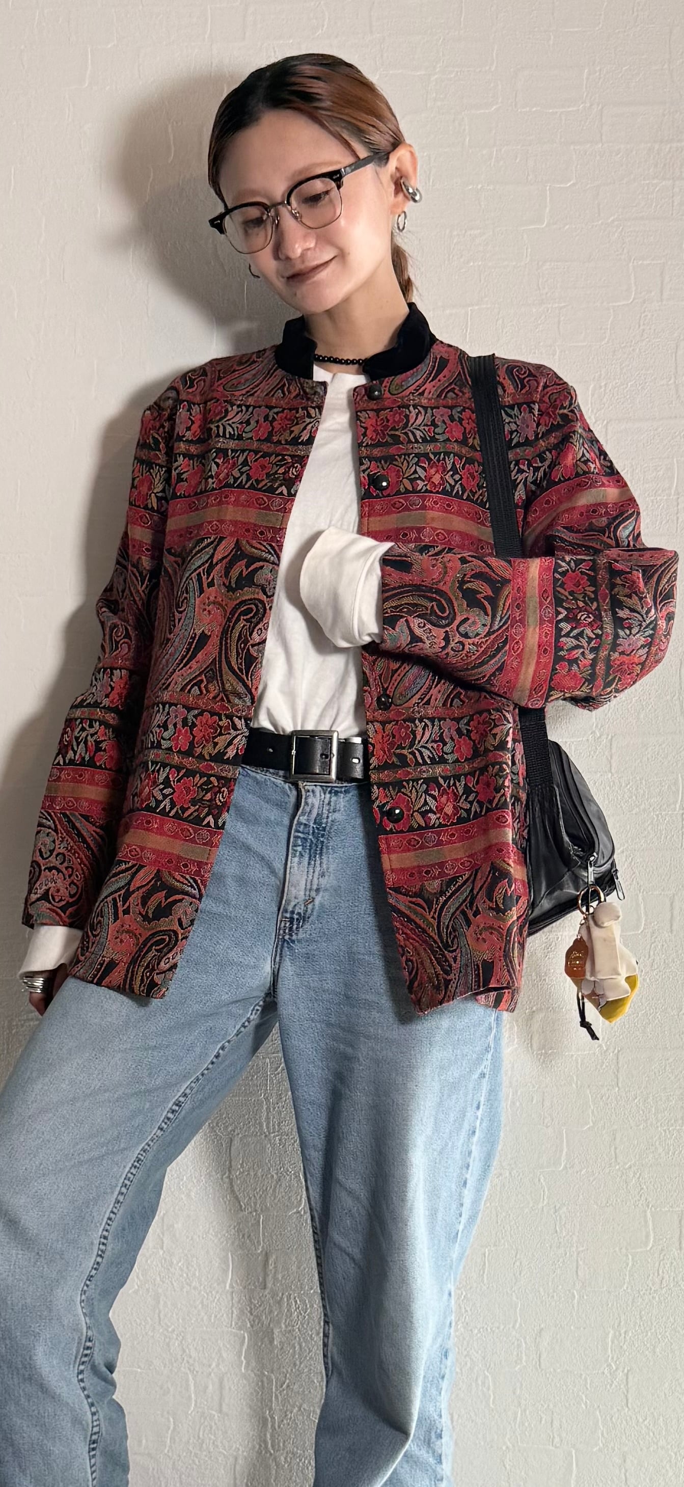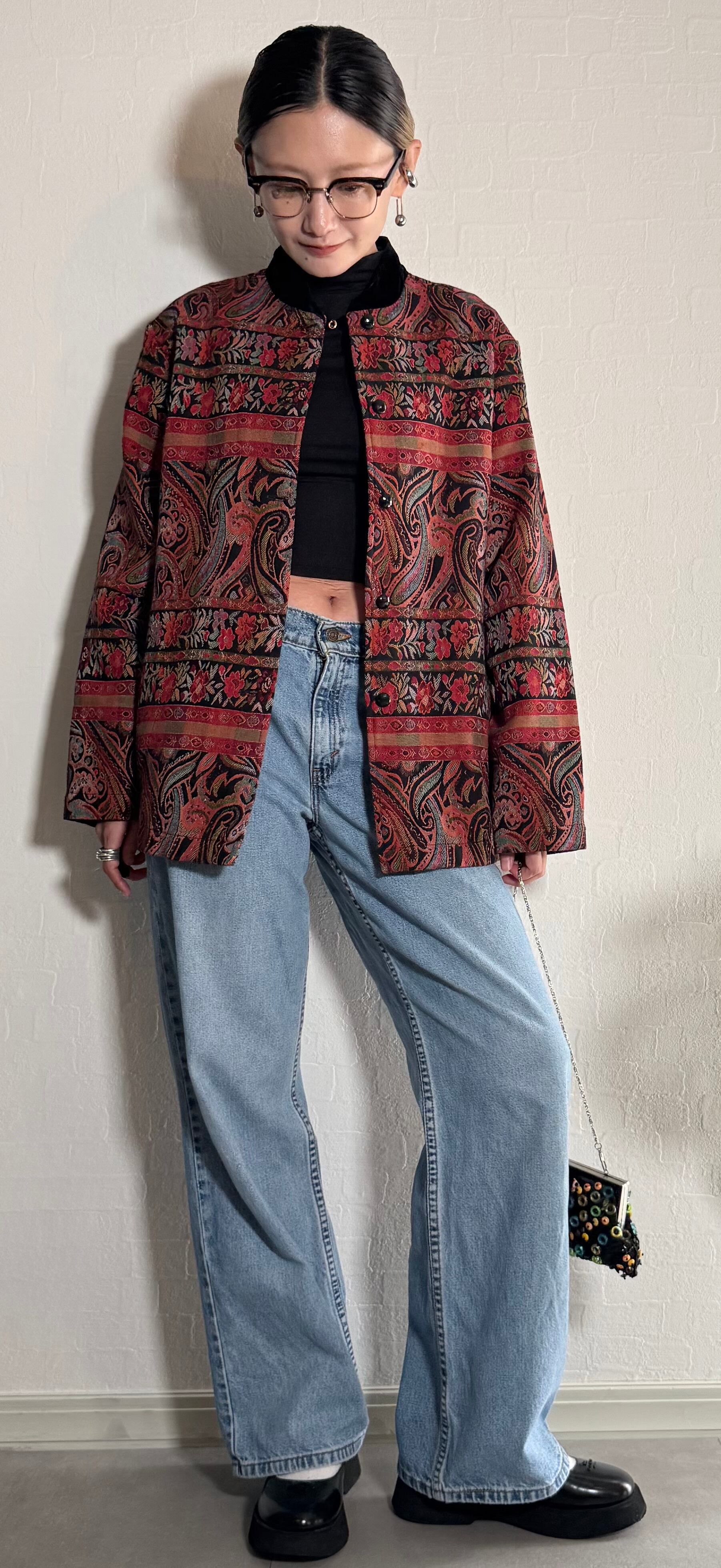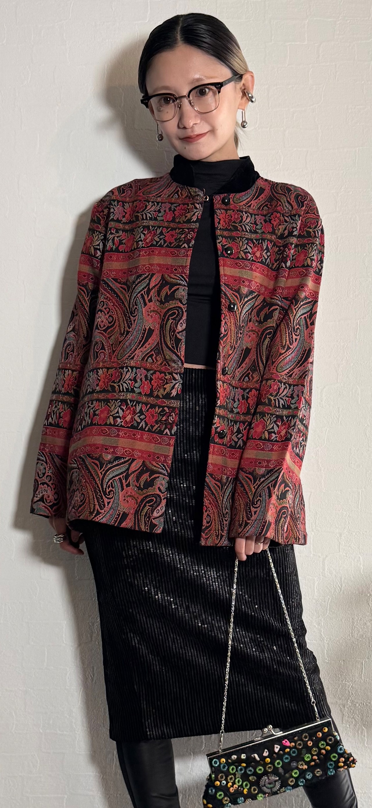 ペイズリーと花柄のジャカード織りが美しい