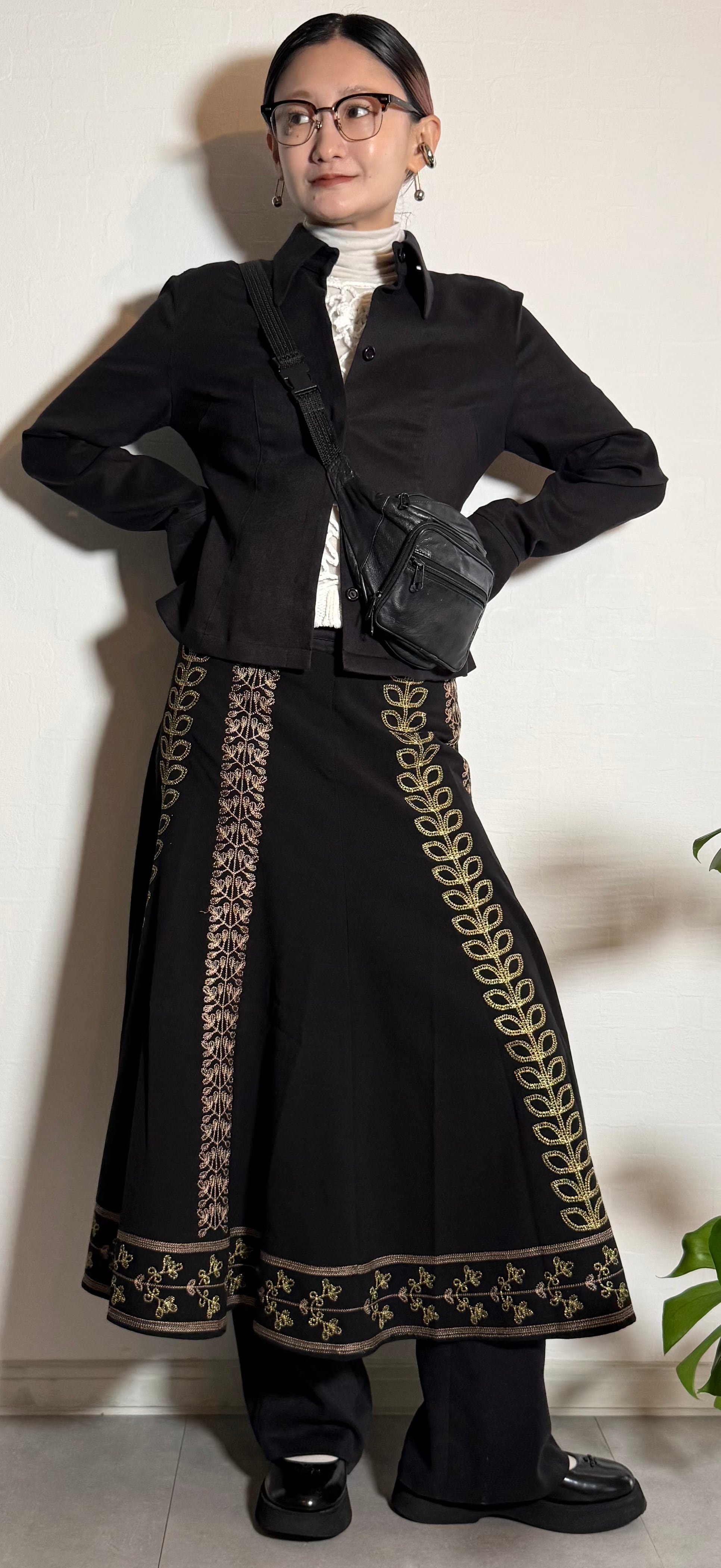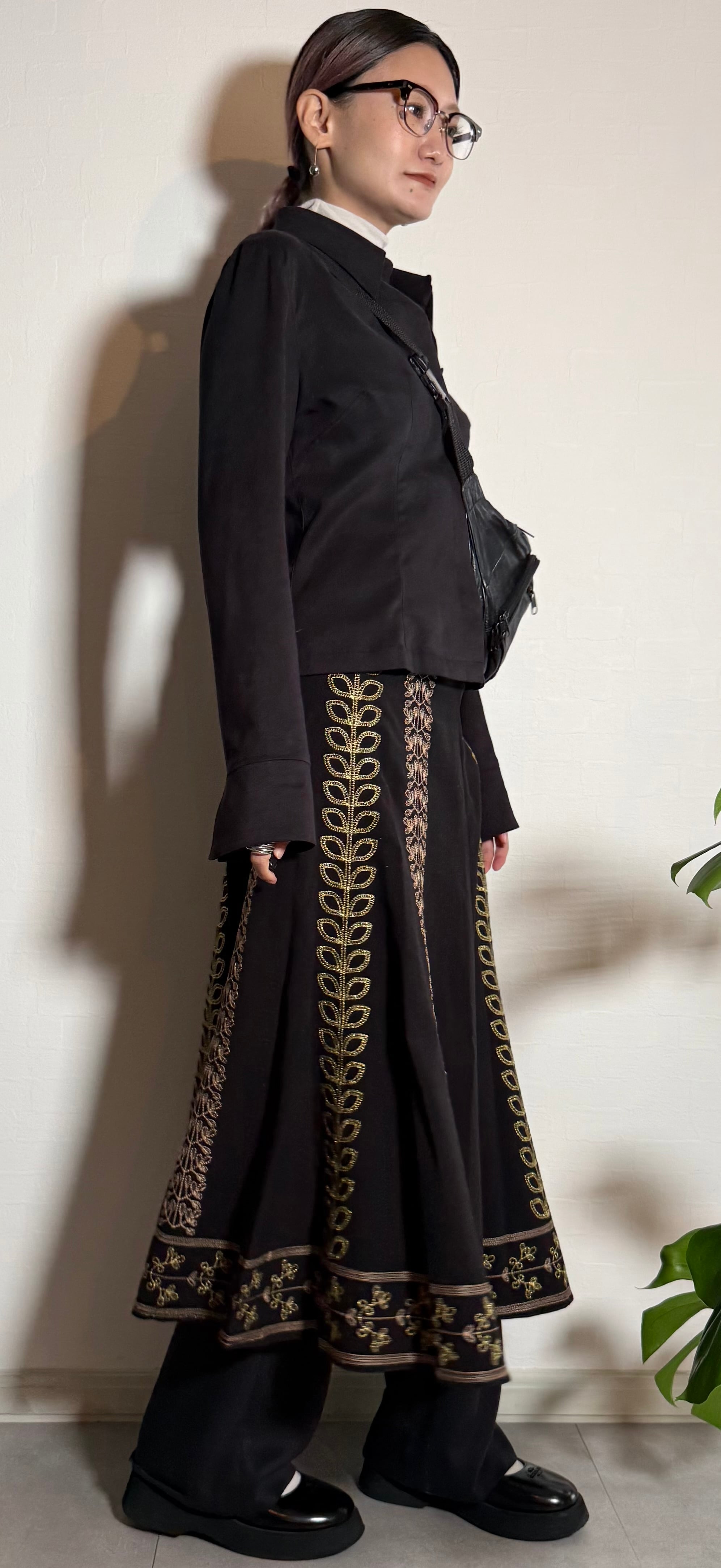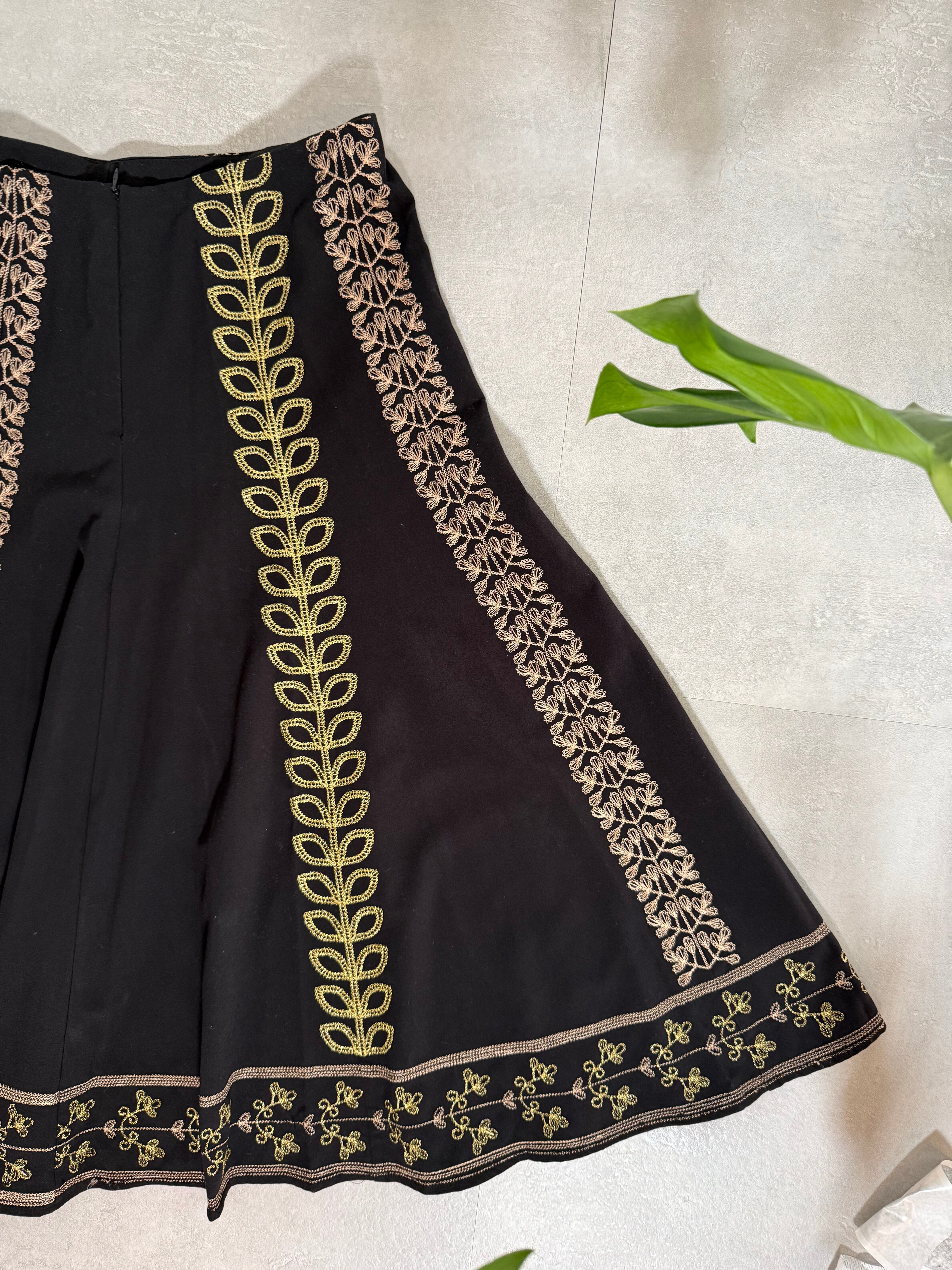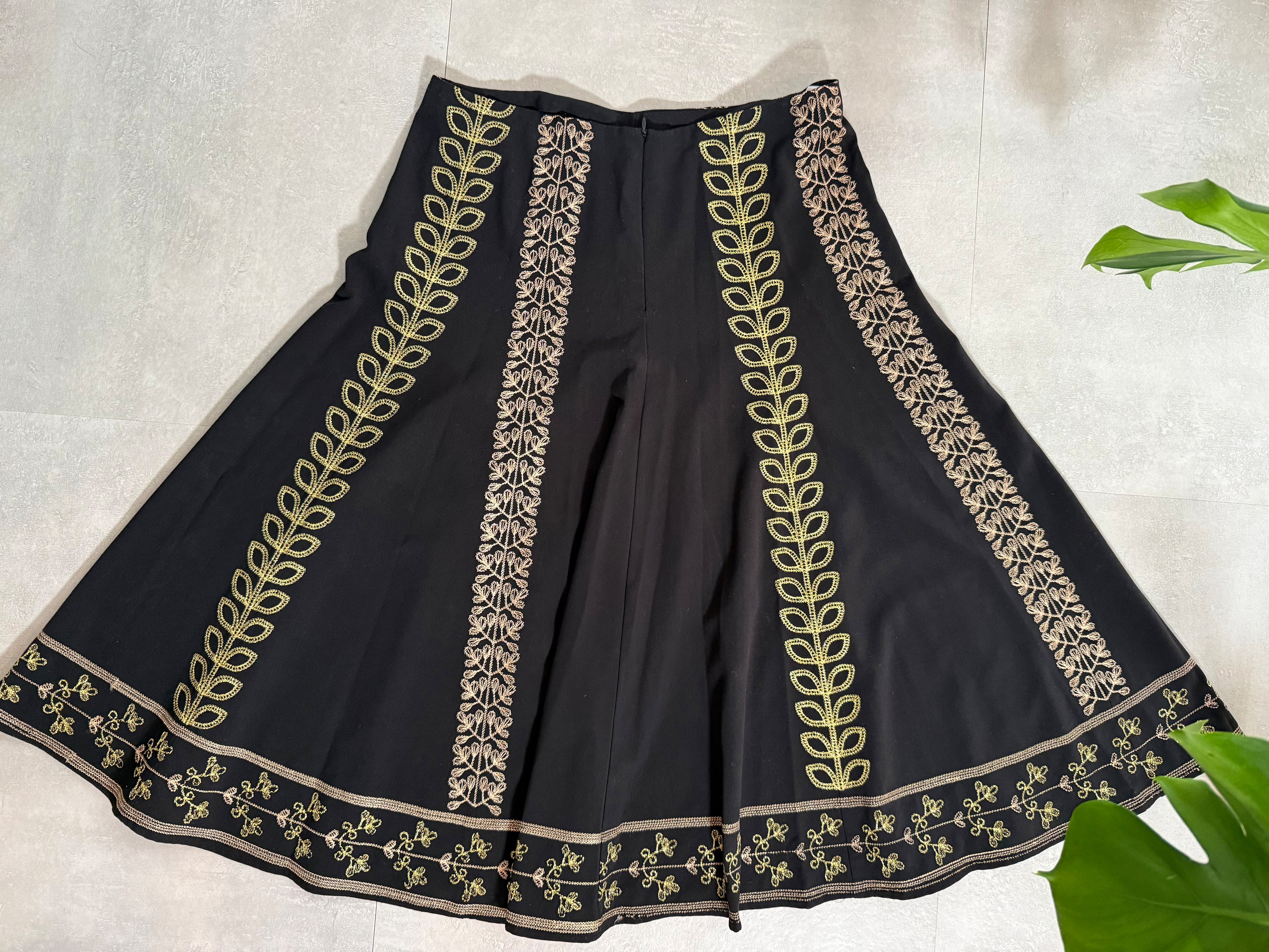 ゴールド×ベージュの刺繍が映える、Allison Taylorのフレアスカート。