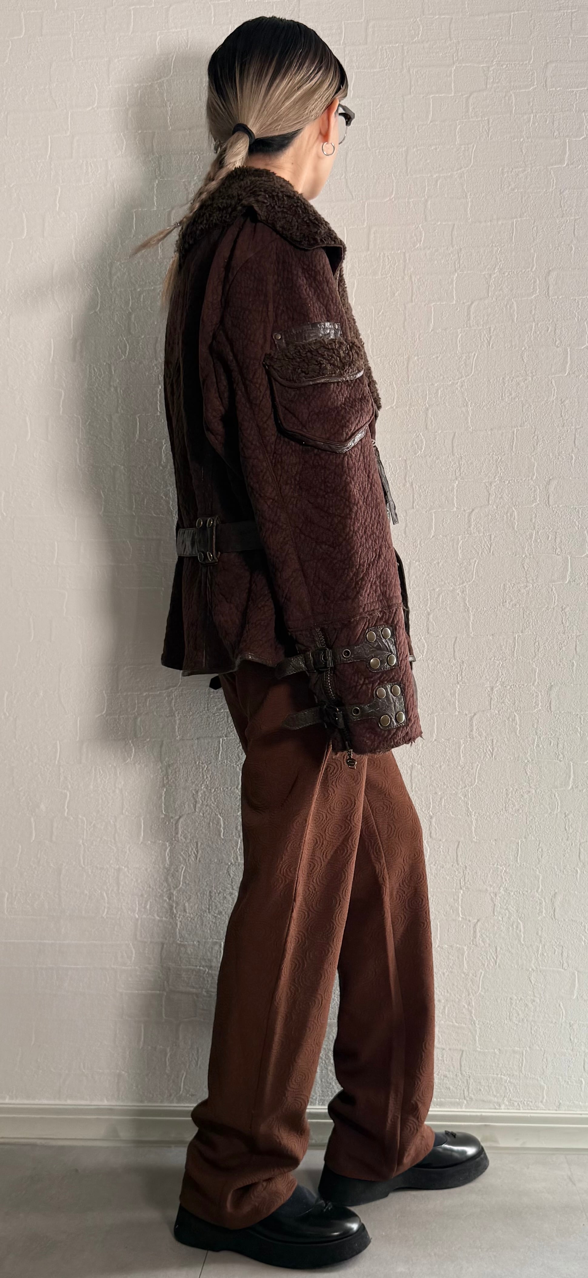表情のあるブラウンカラーとムートン風の素材感が、スタイリングに奥行きをプラス。