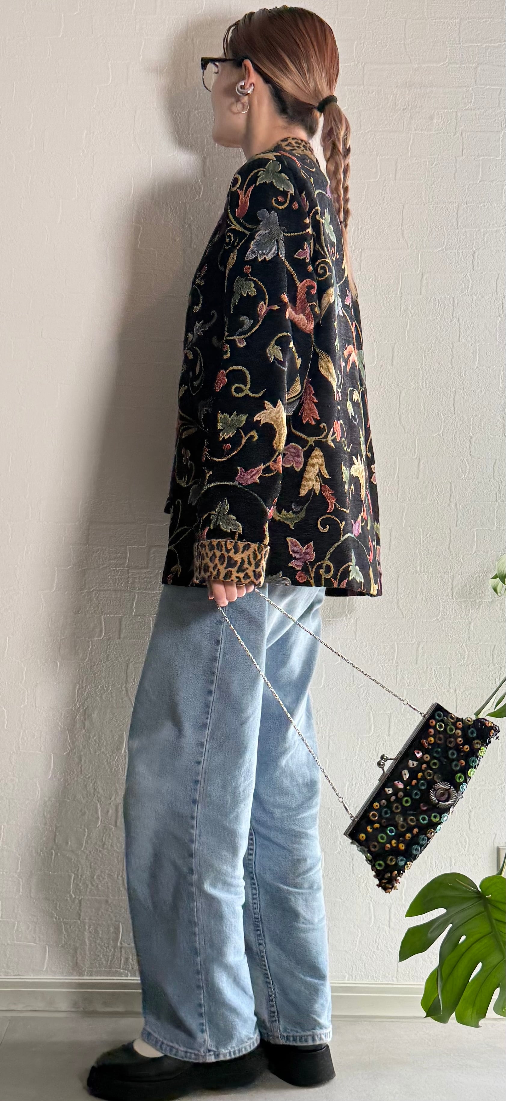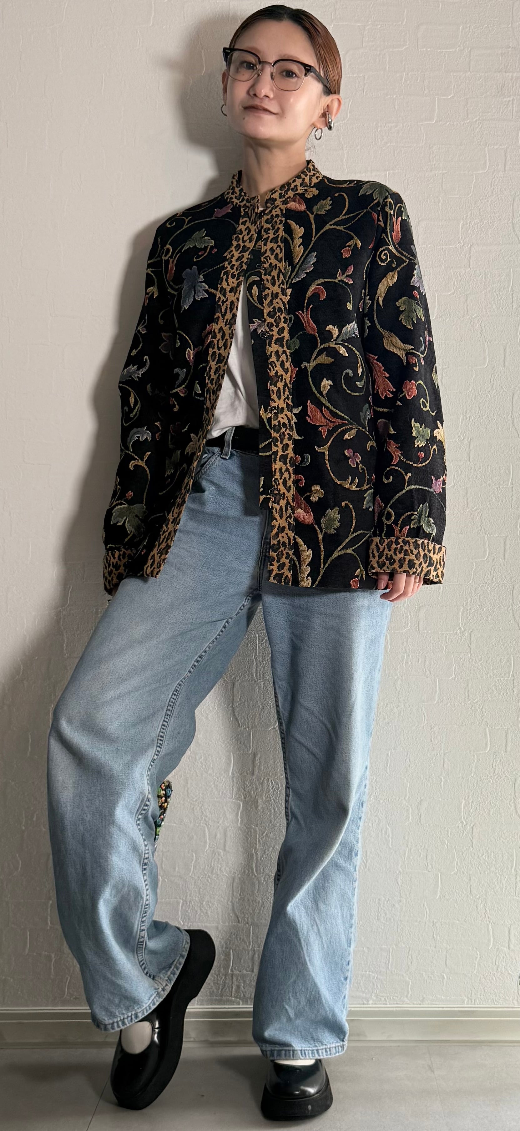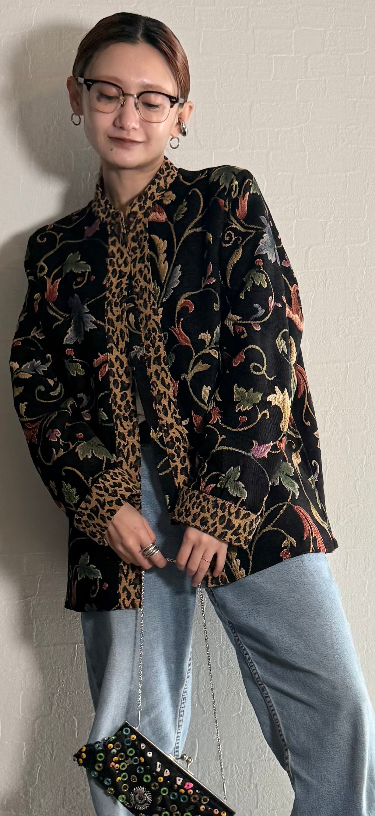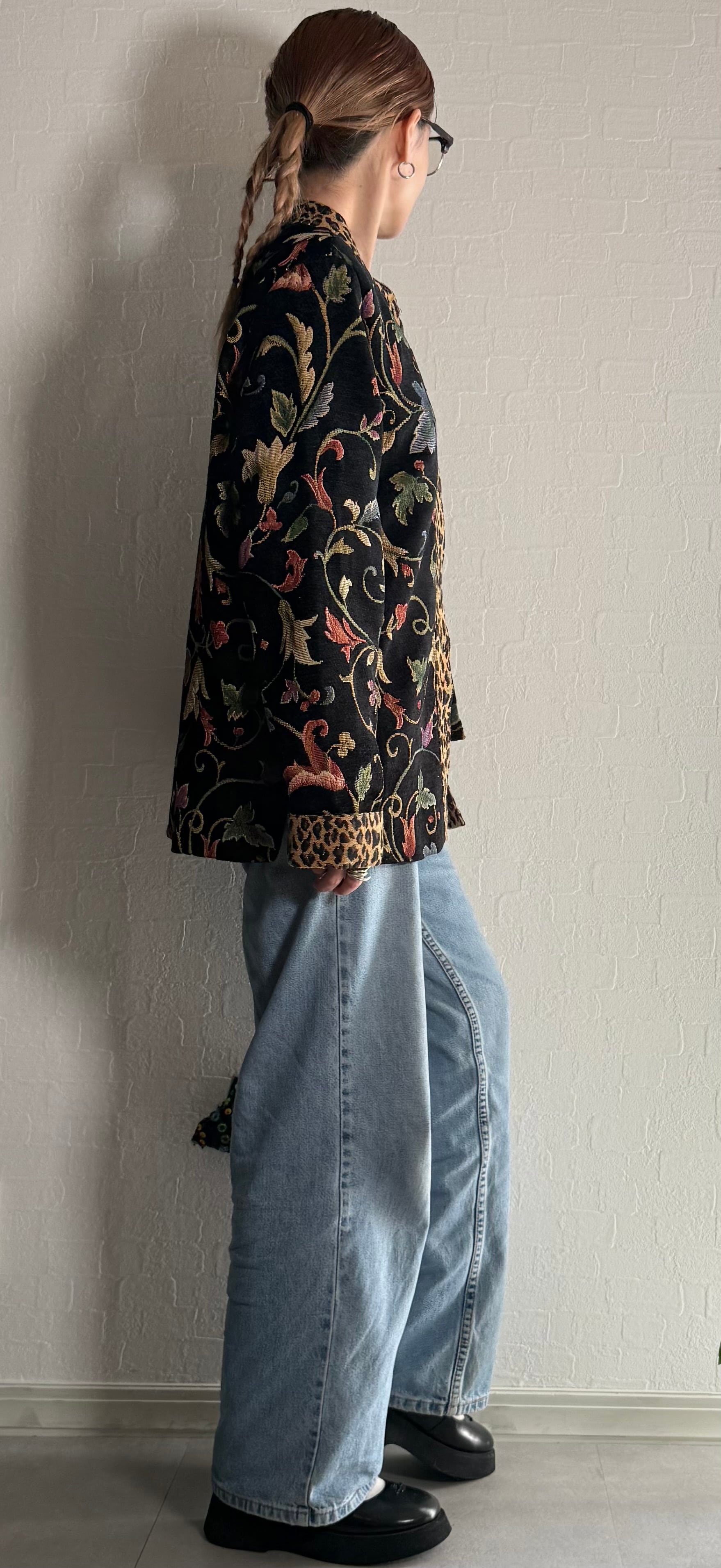 WHITE STAG Botanical Tapestry Jacket with Leopard Trim