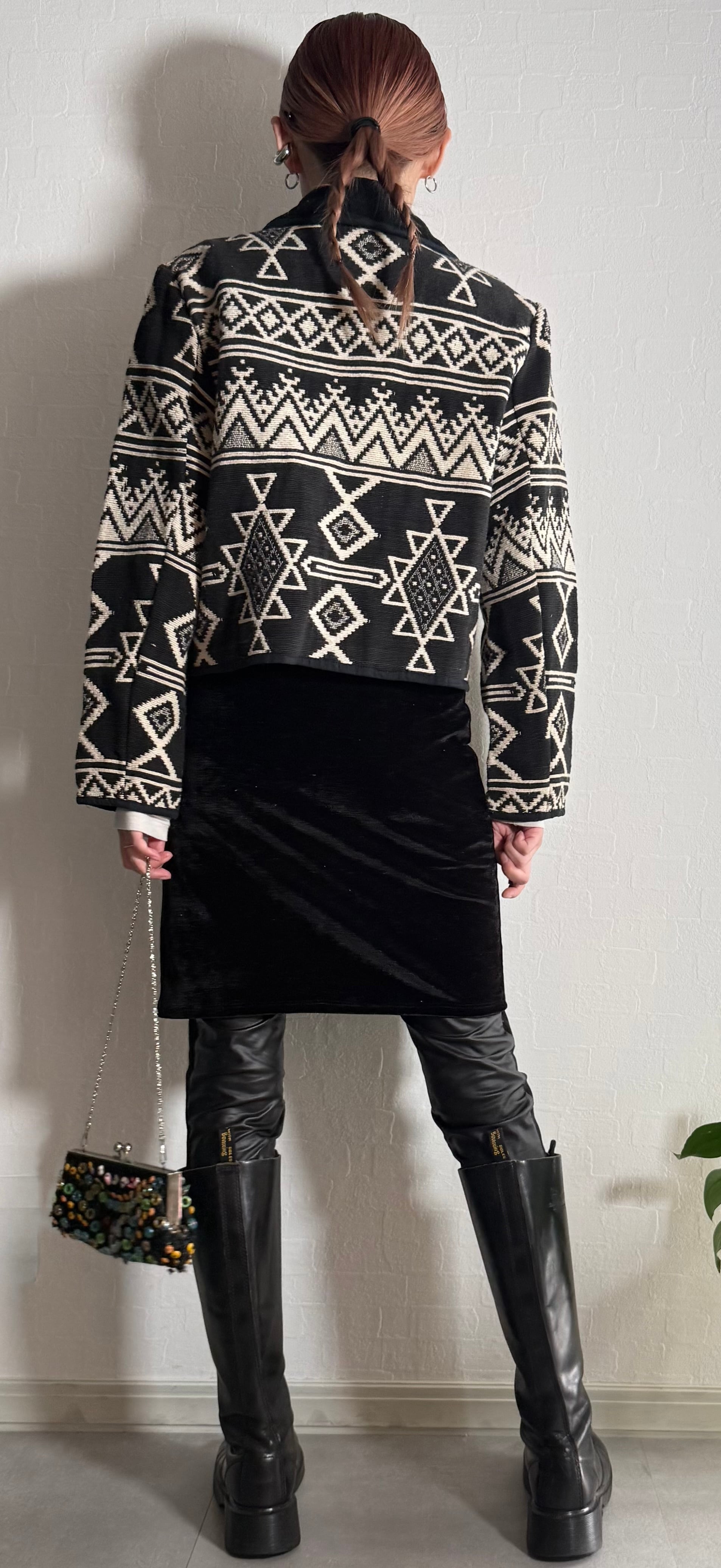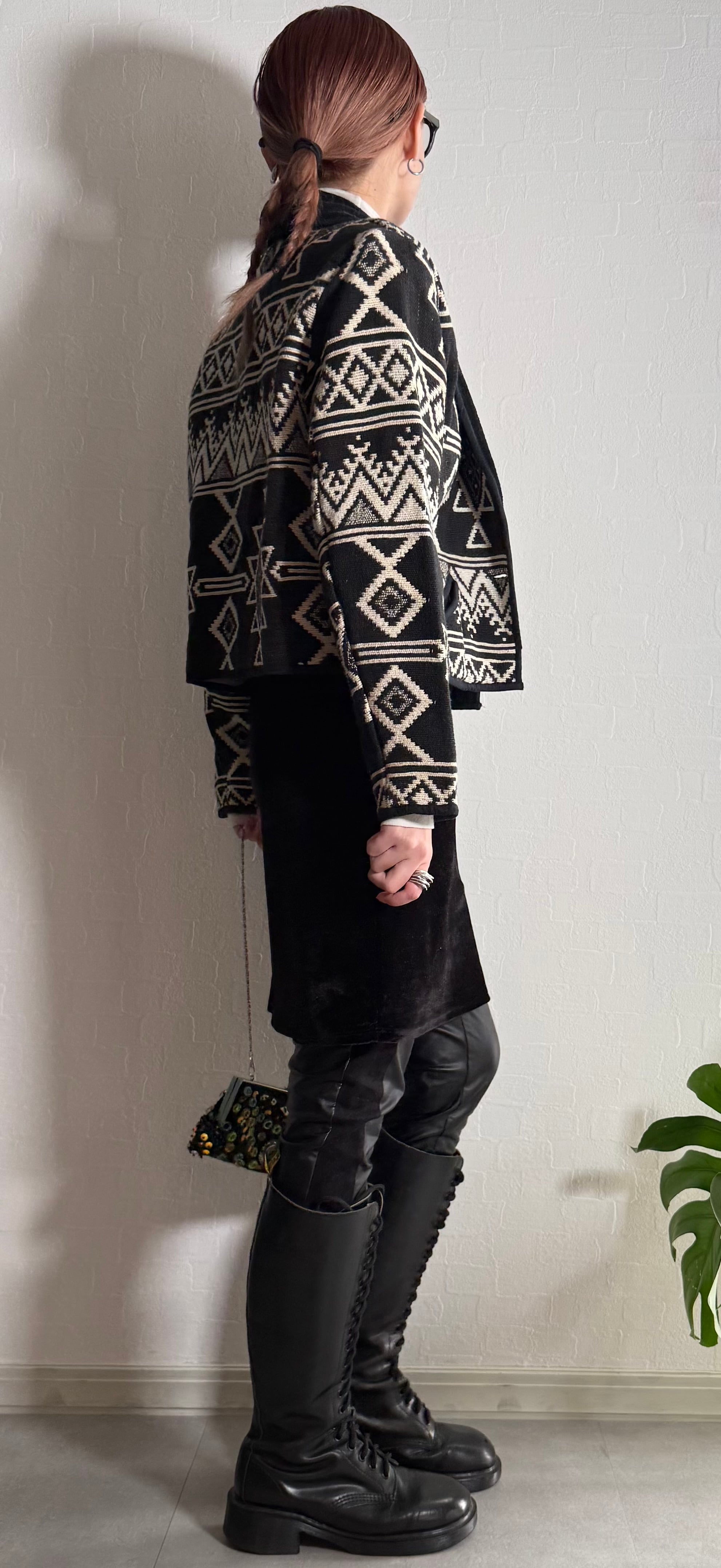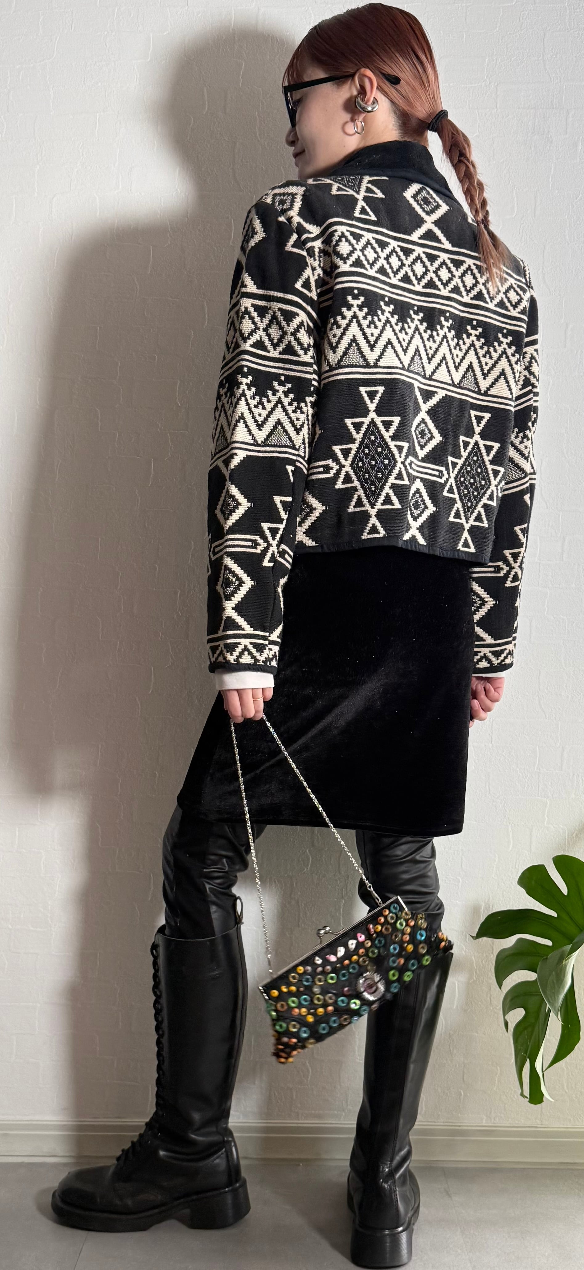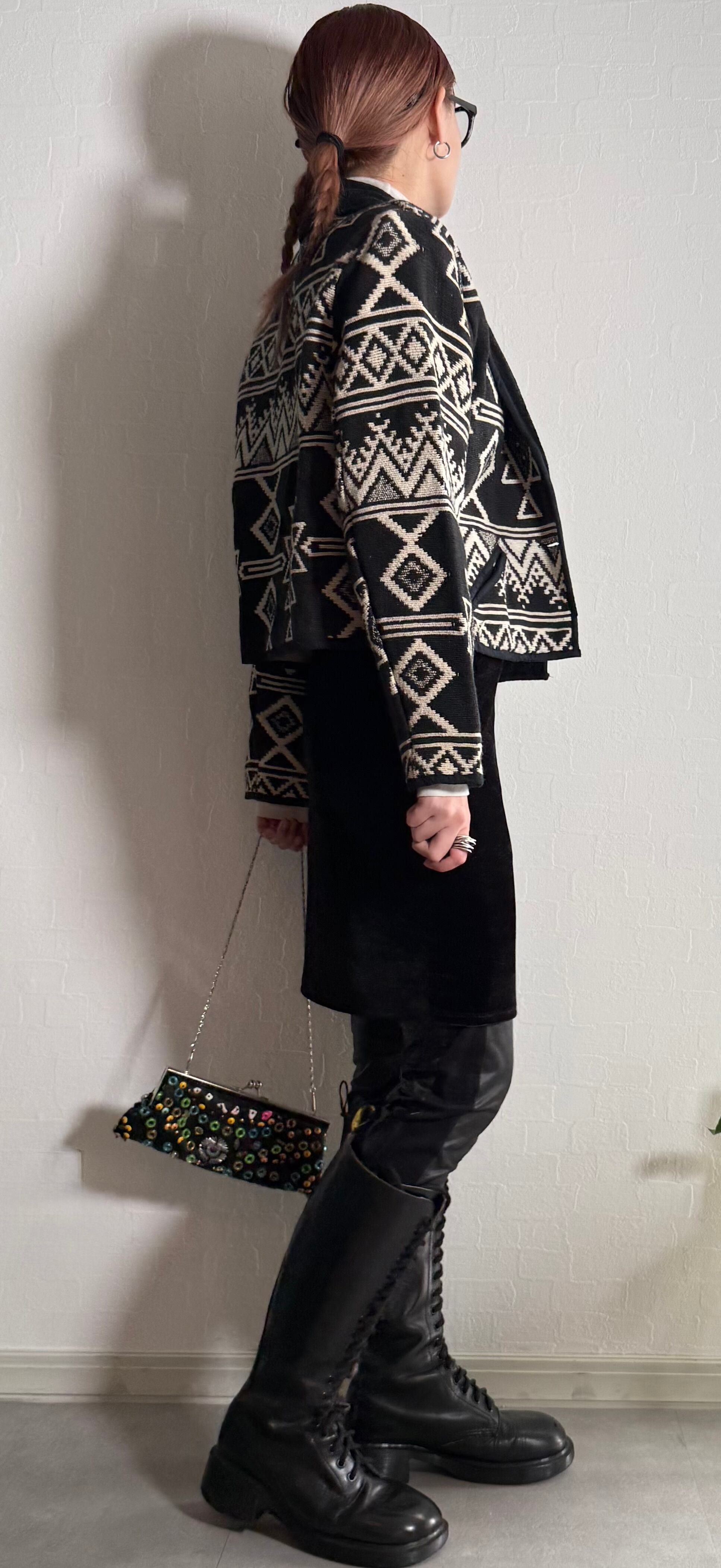 ネイティブ柄ニットジャケット。