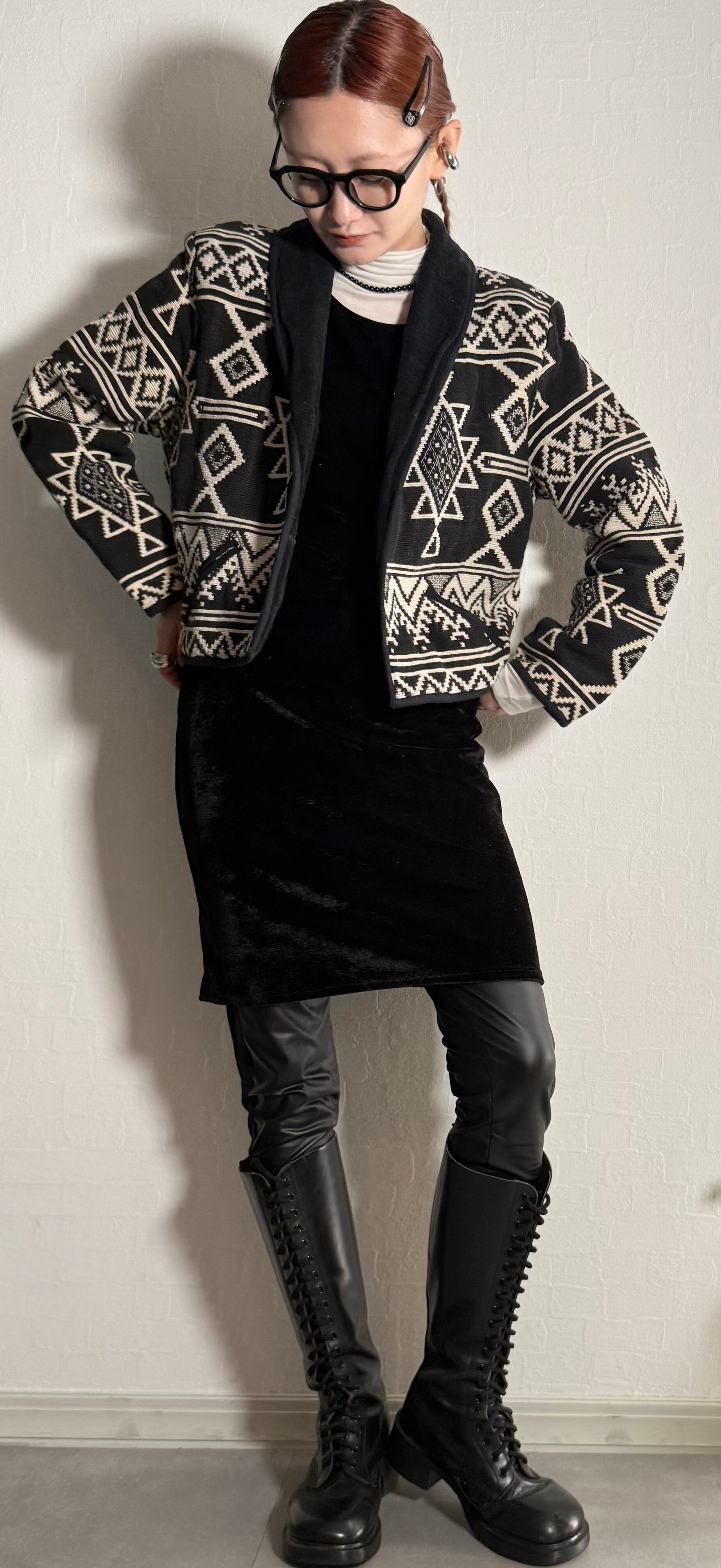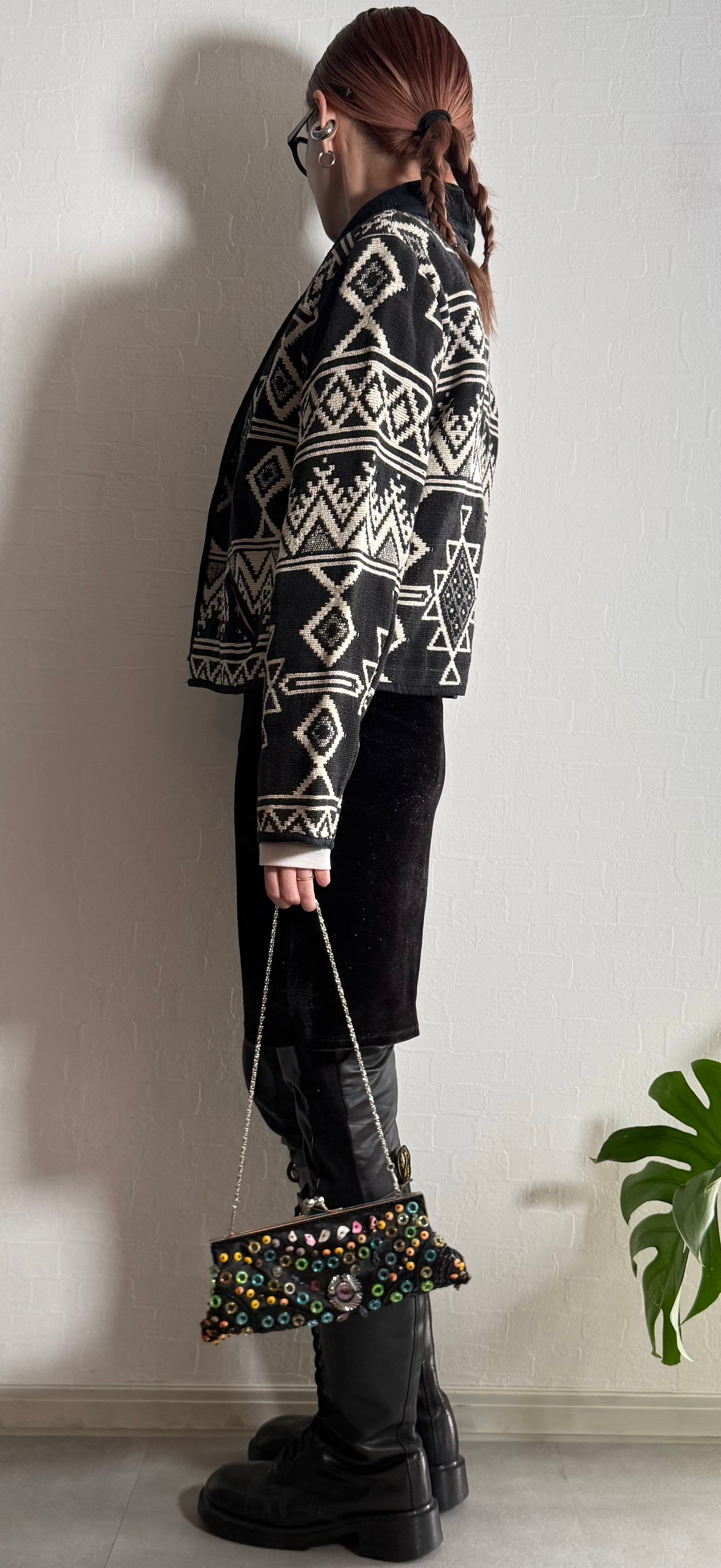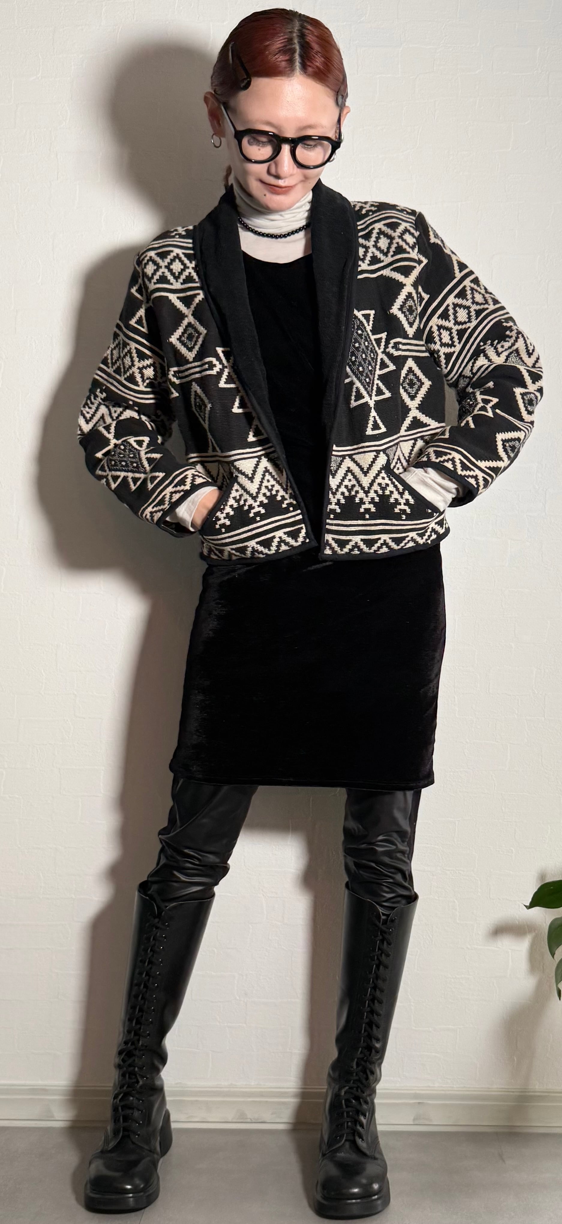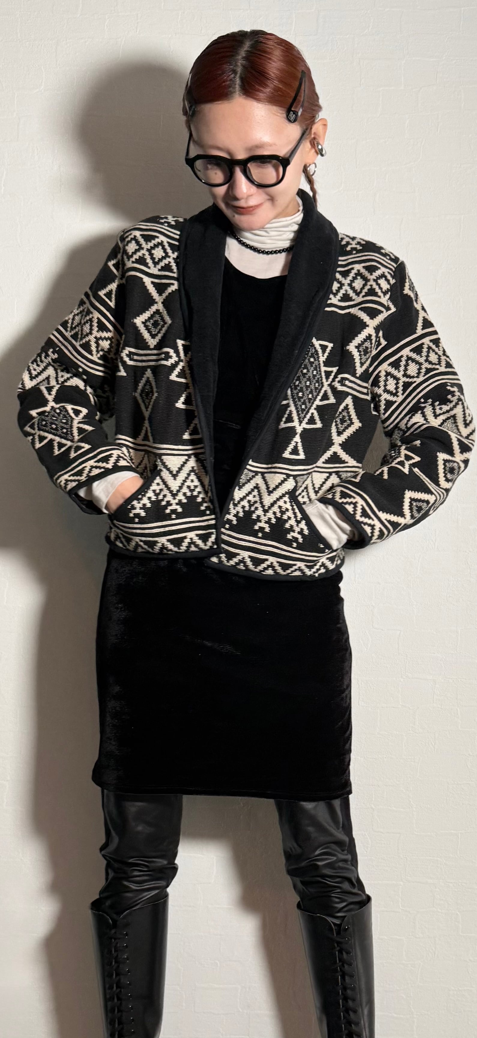 ネイティブ柄ニットジャケット。