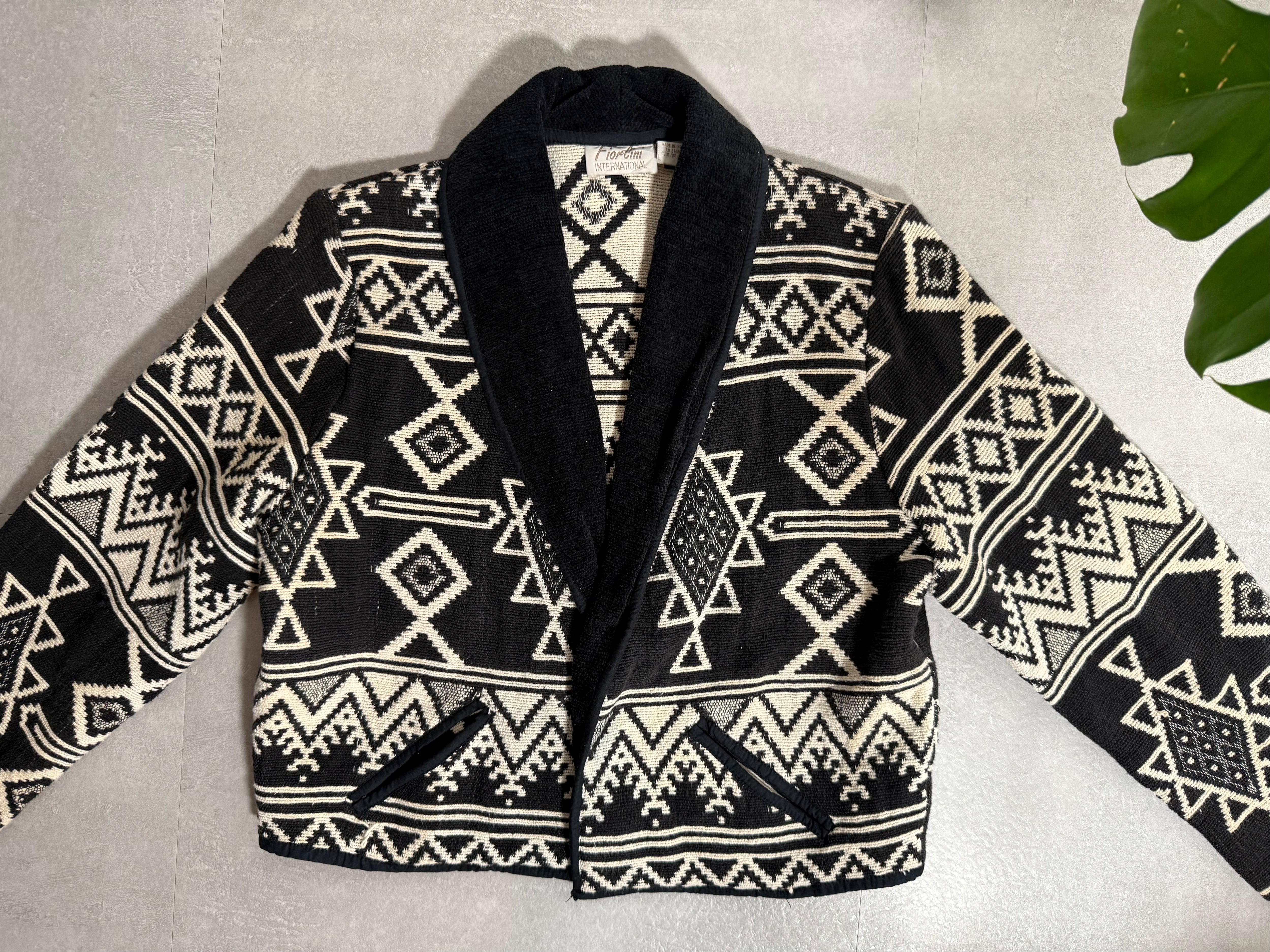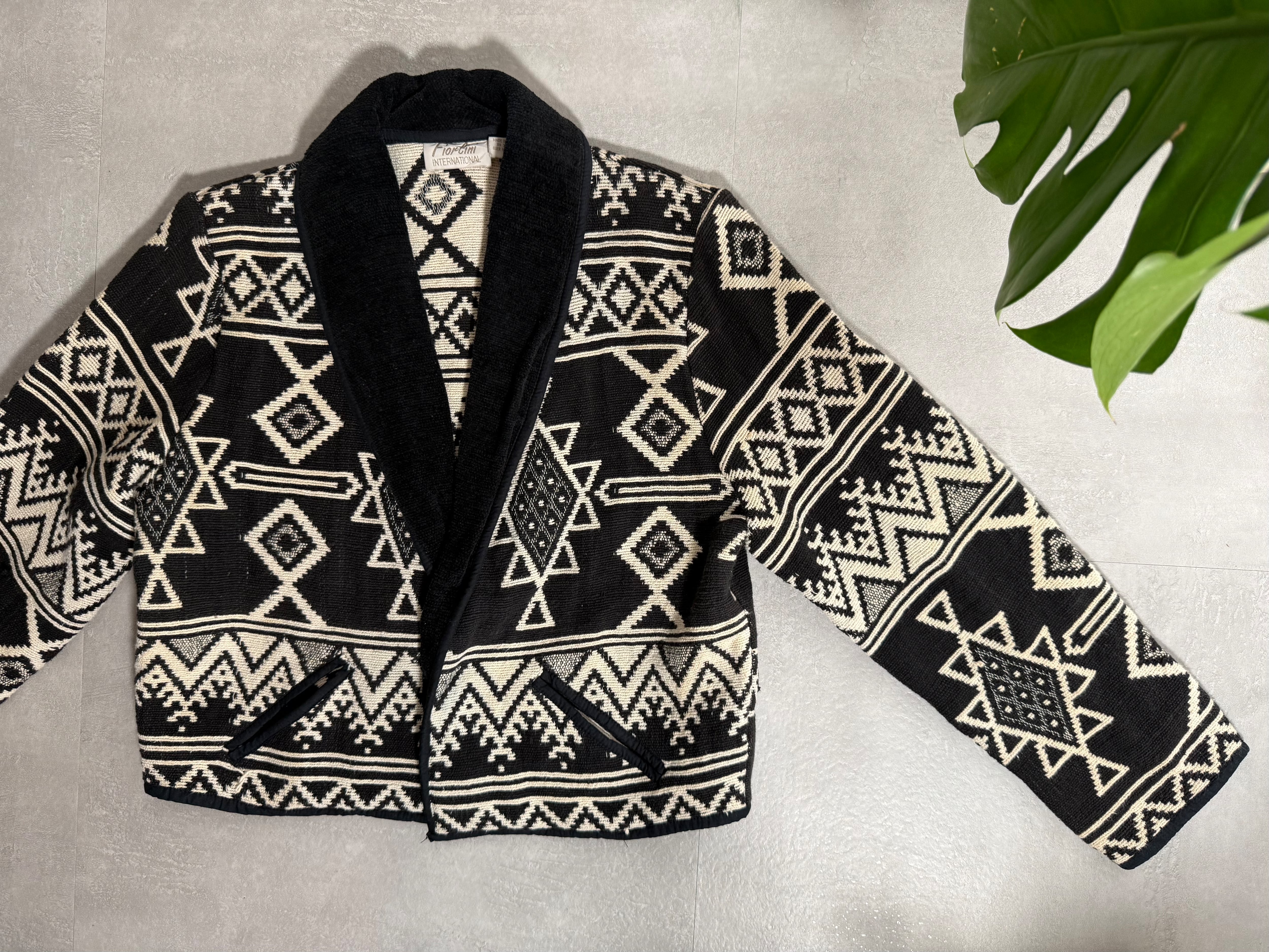 Fiorlini International Tribal Pattern Shawl Collar Knit Jacket