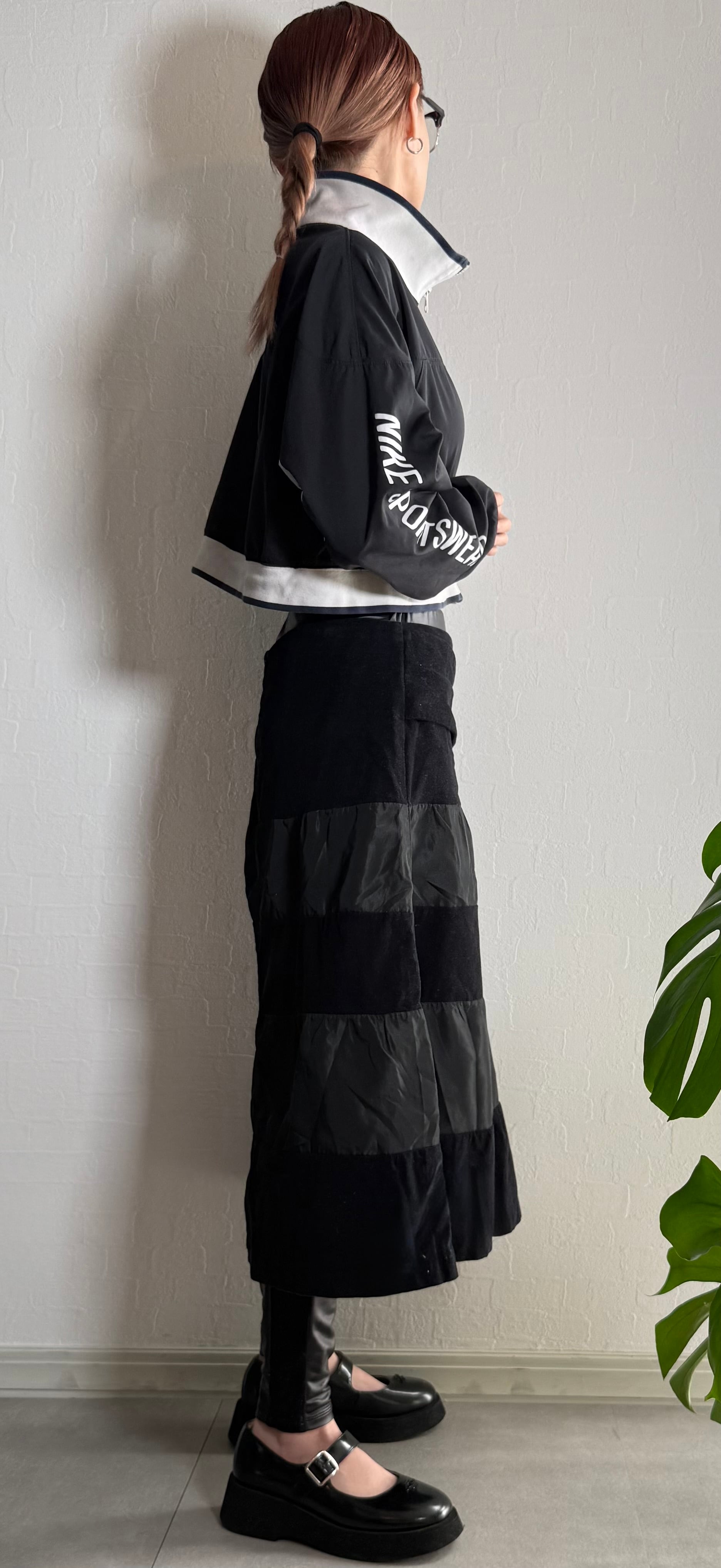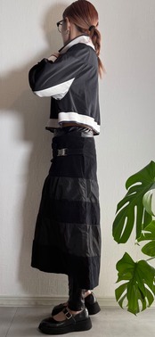 異素材を切り替えたティアードデザインが特徴で、