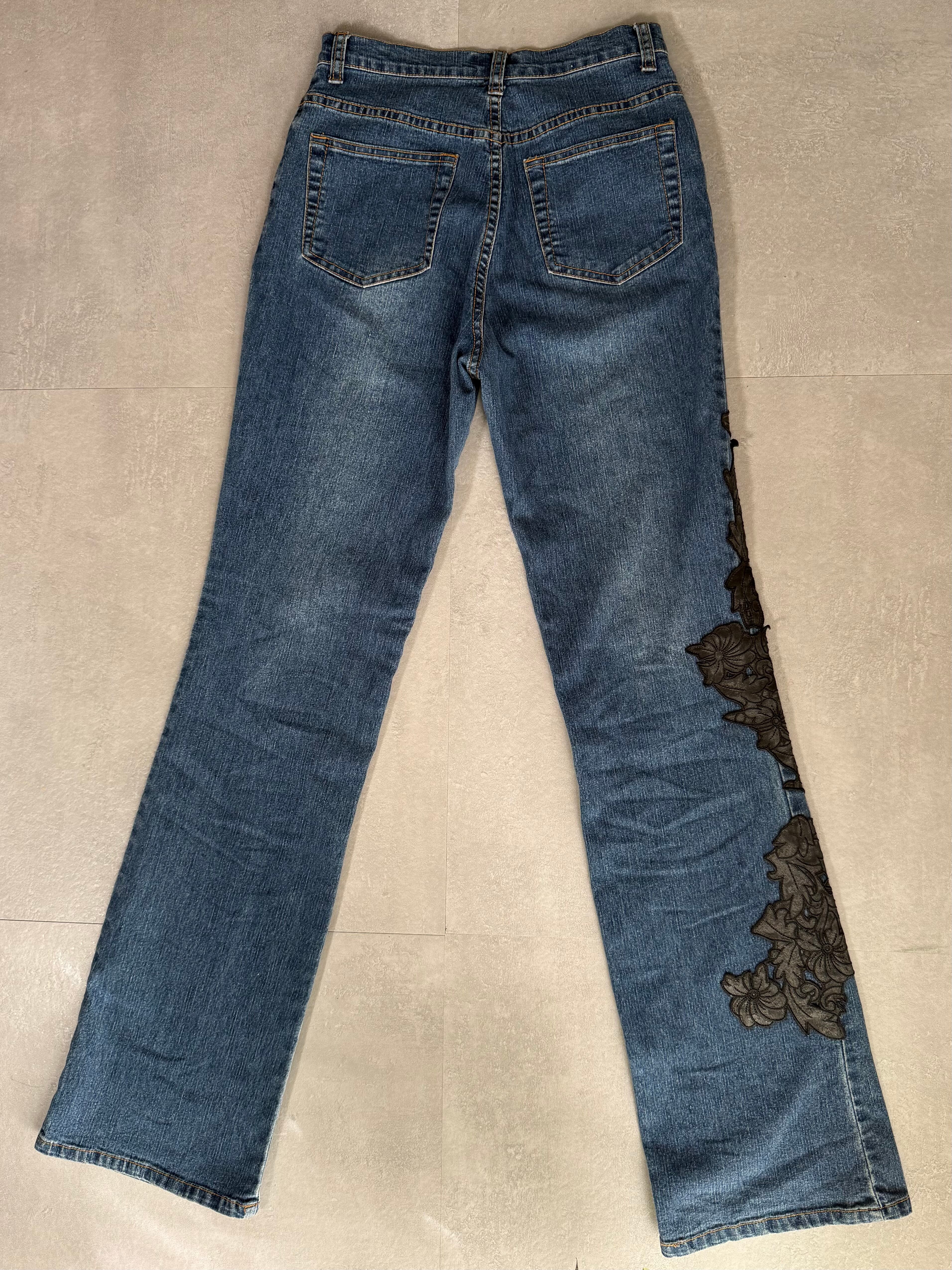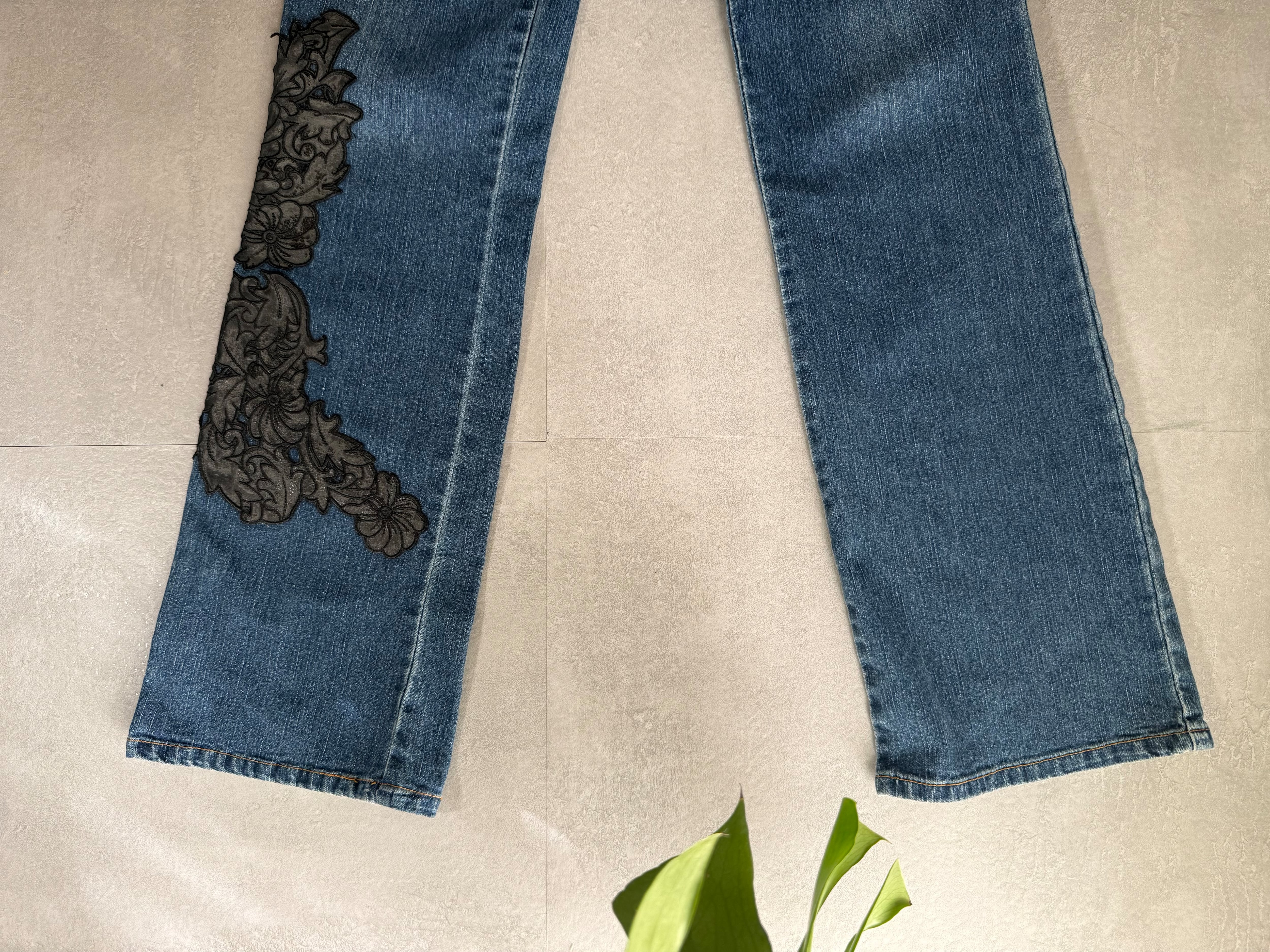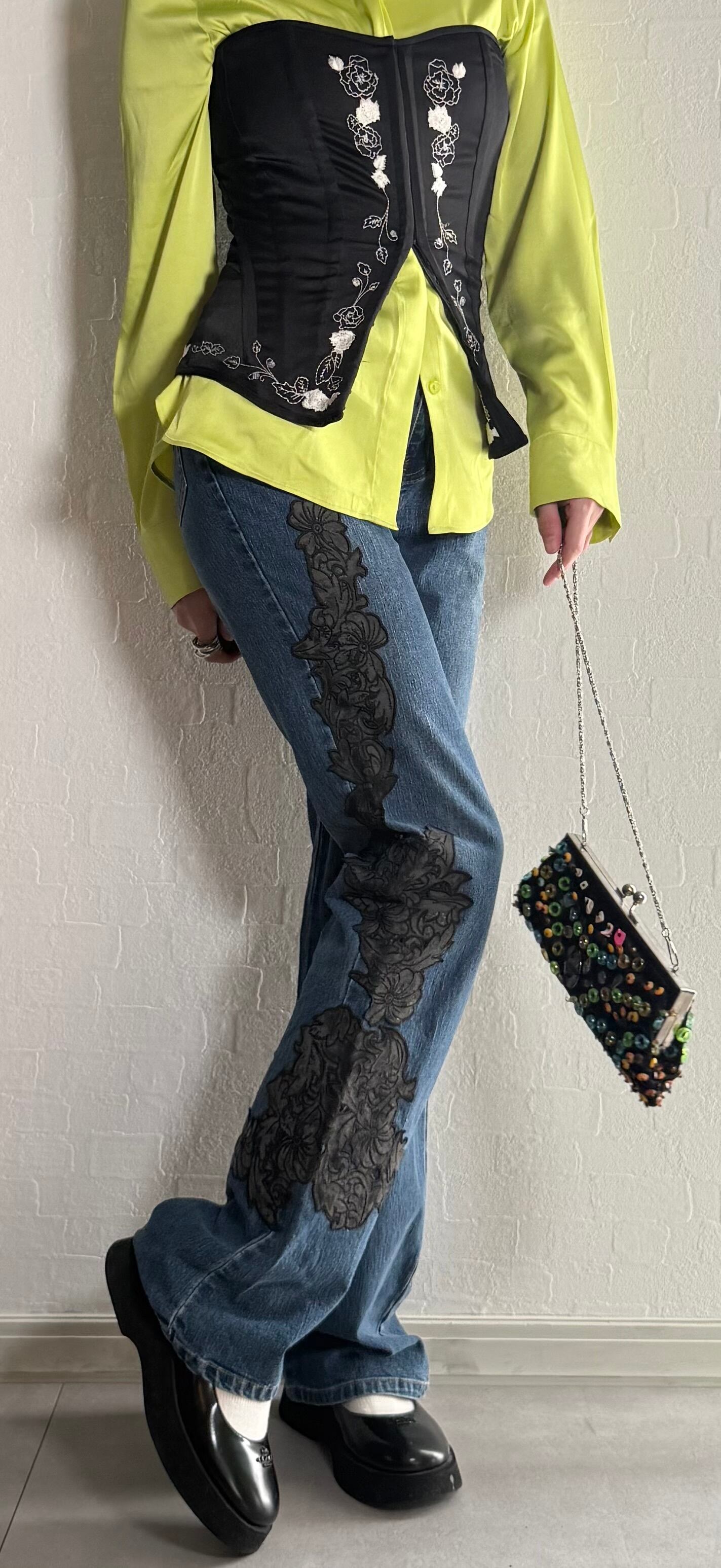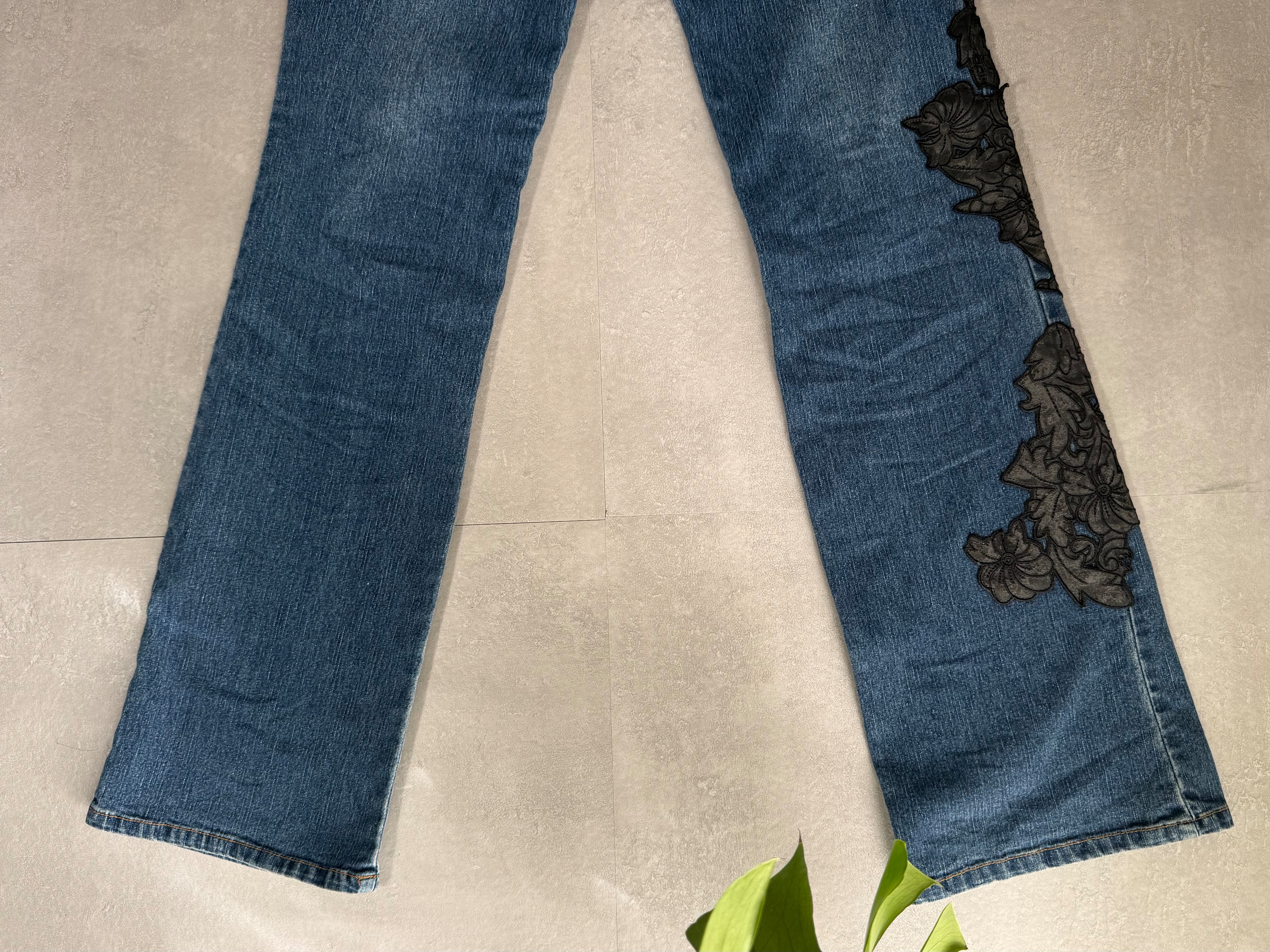 BELLE SPORT Floral Lace Embroidery Flare Denim