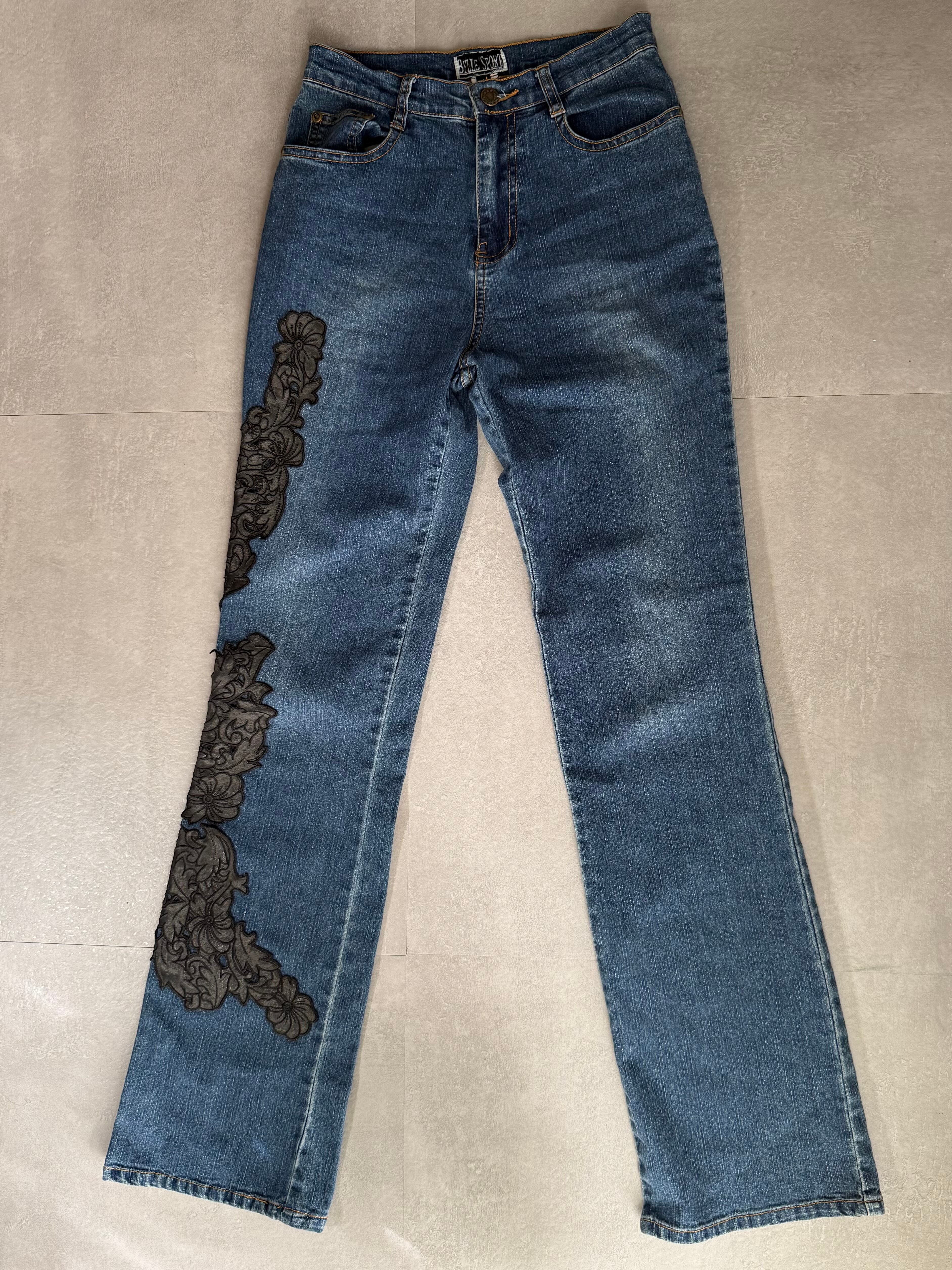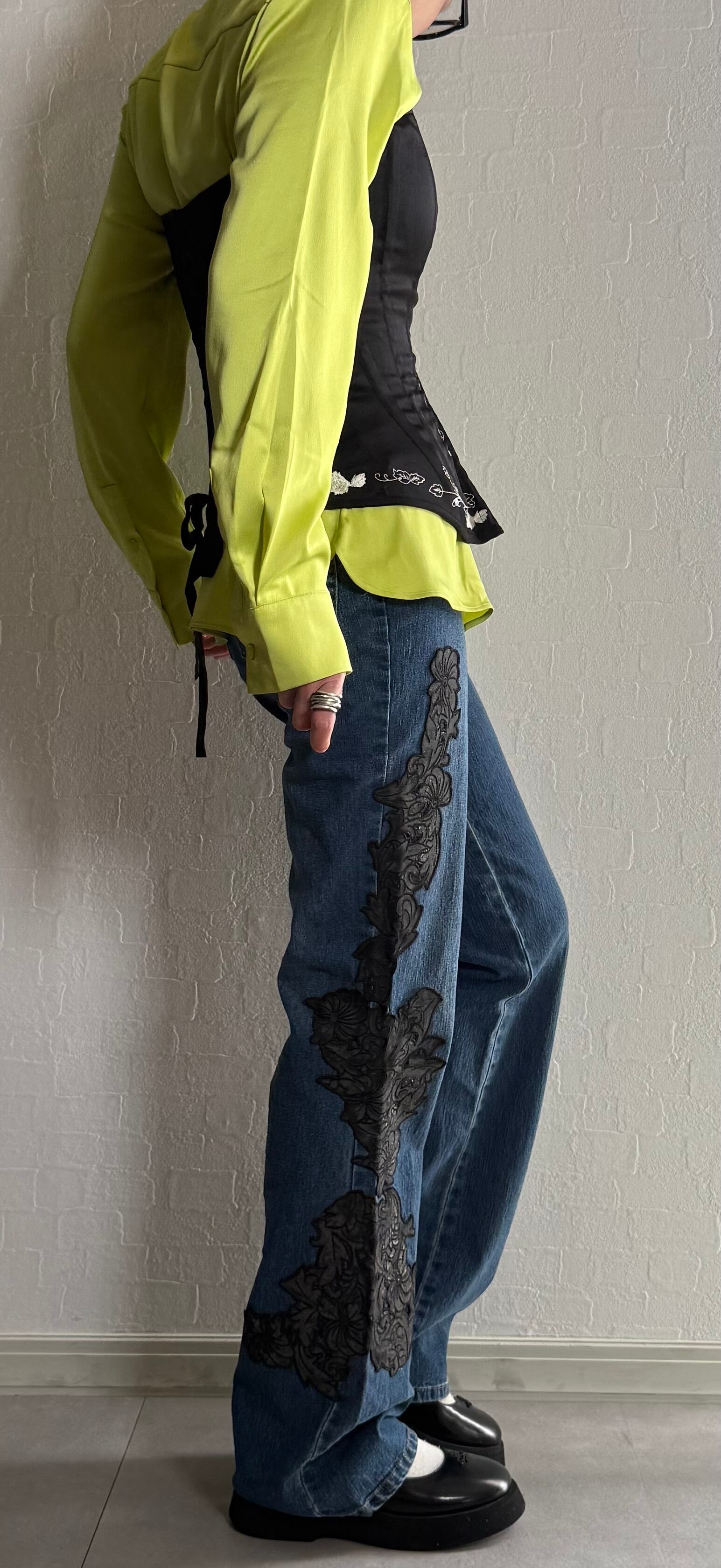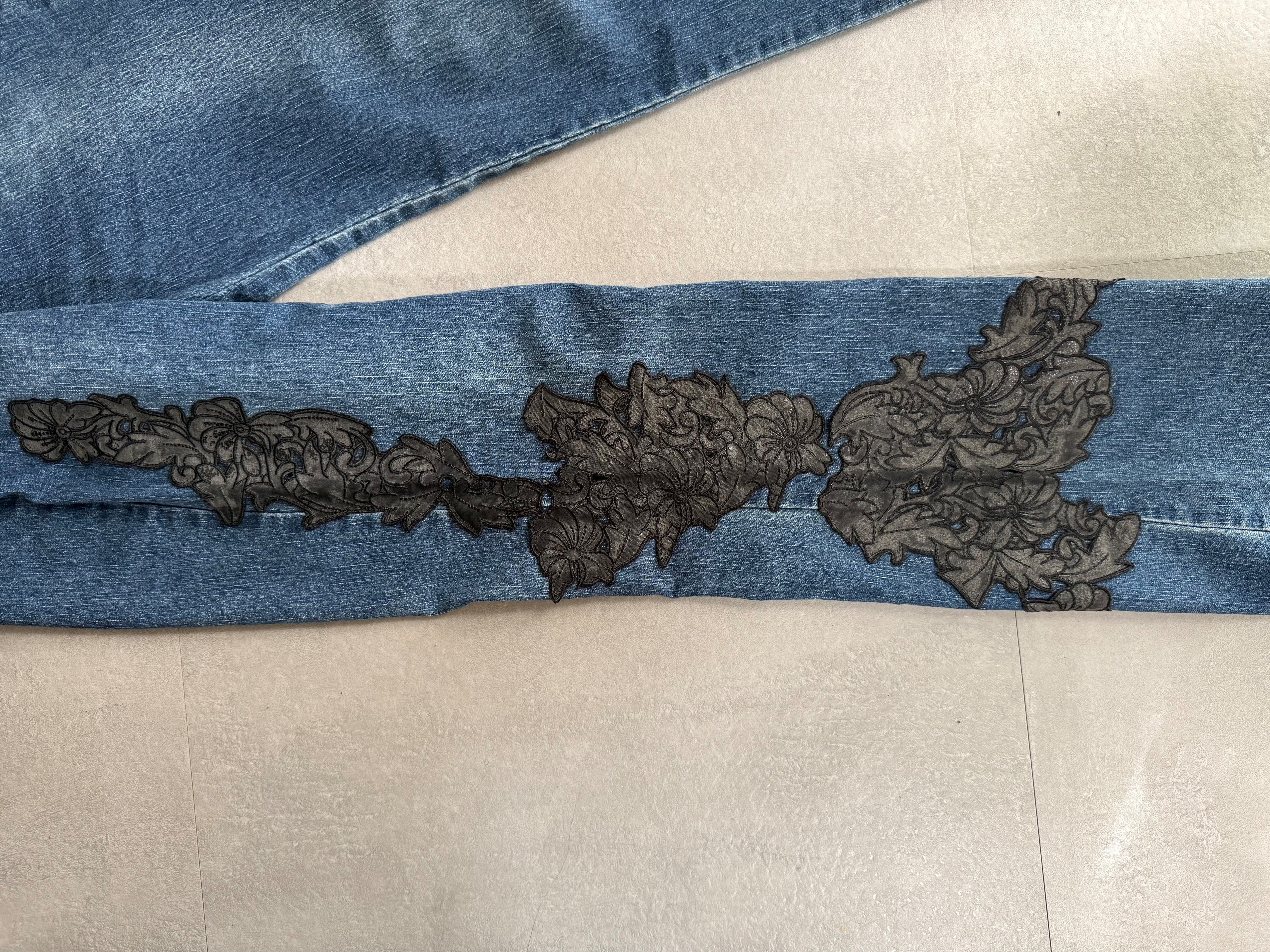 BELLE SPORT Floral Lace Embroidery Flare Denim