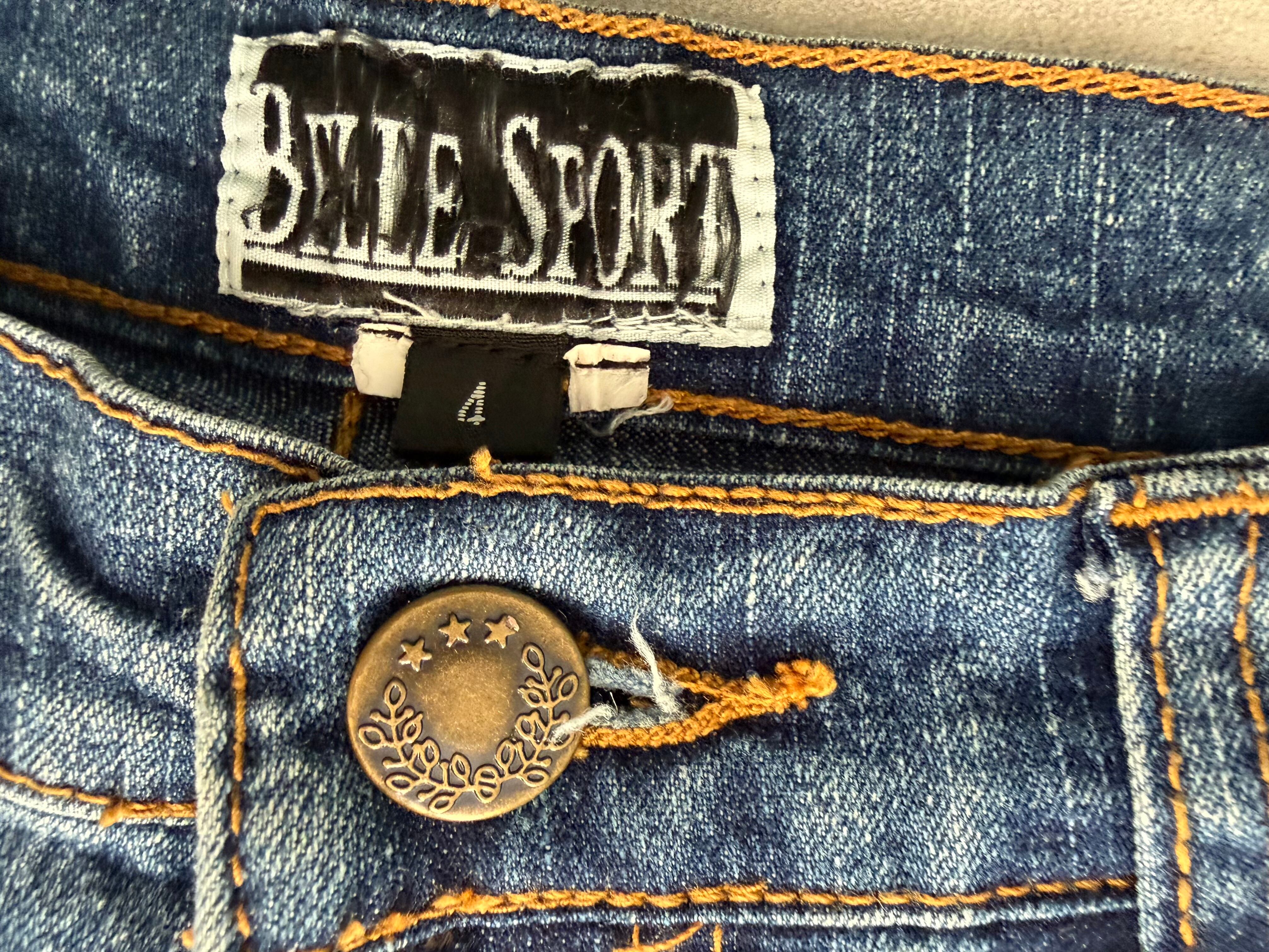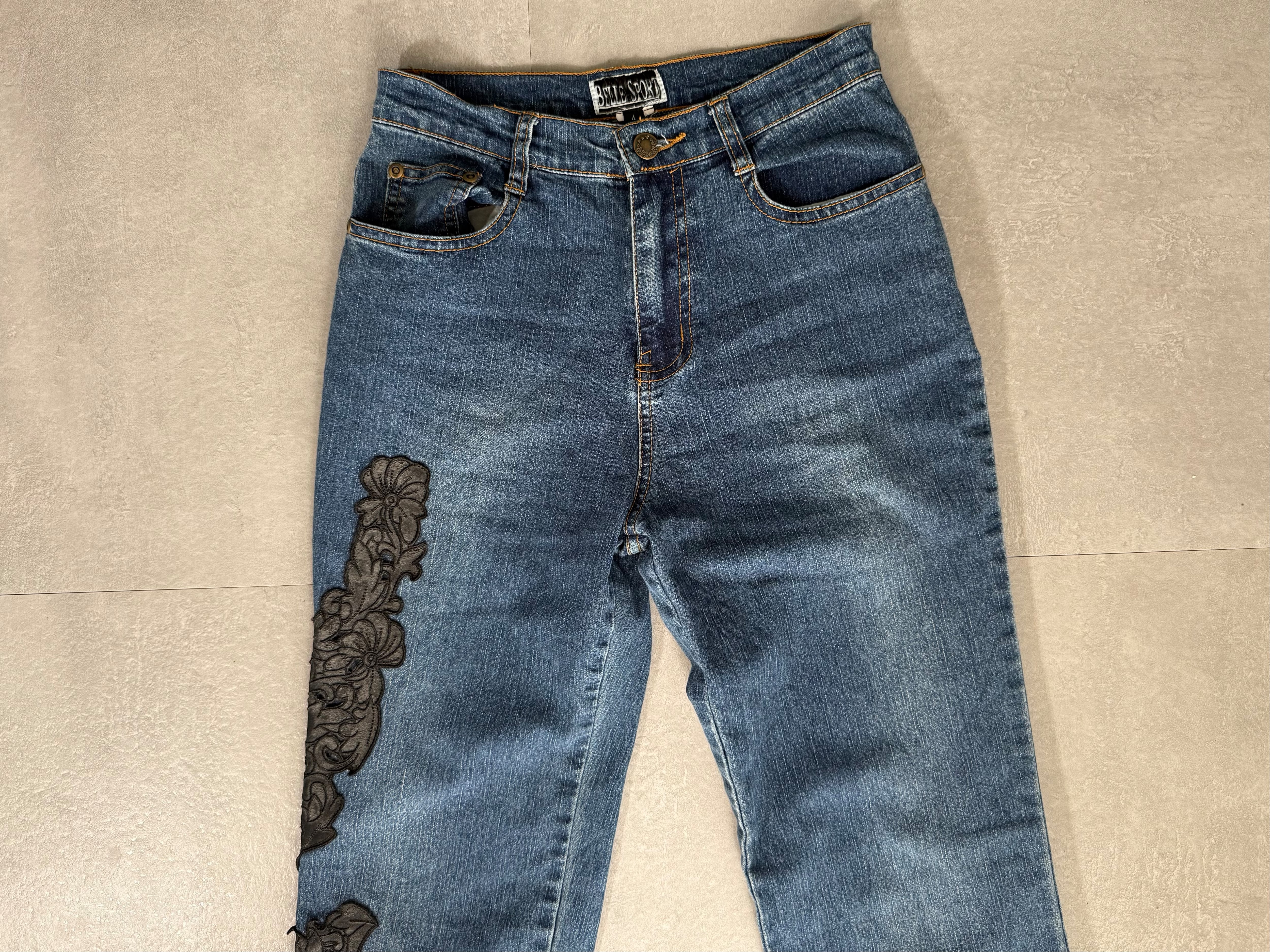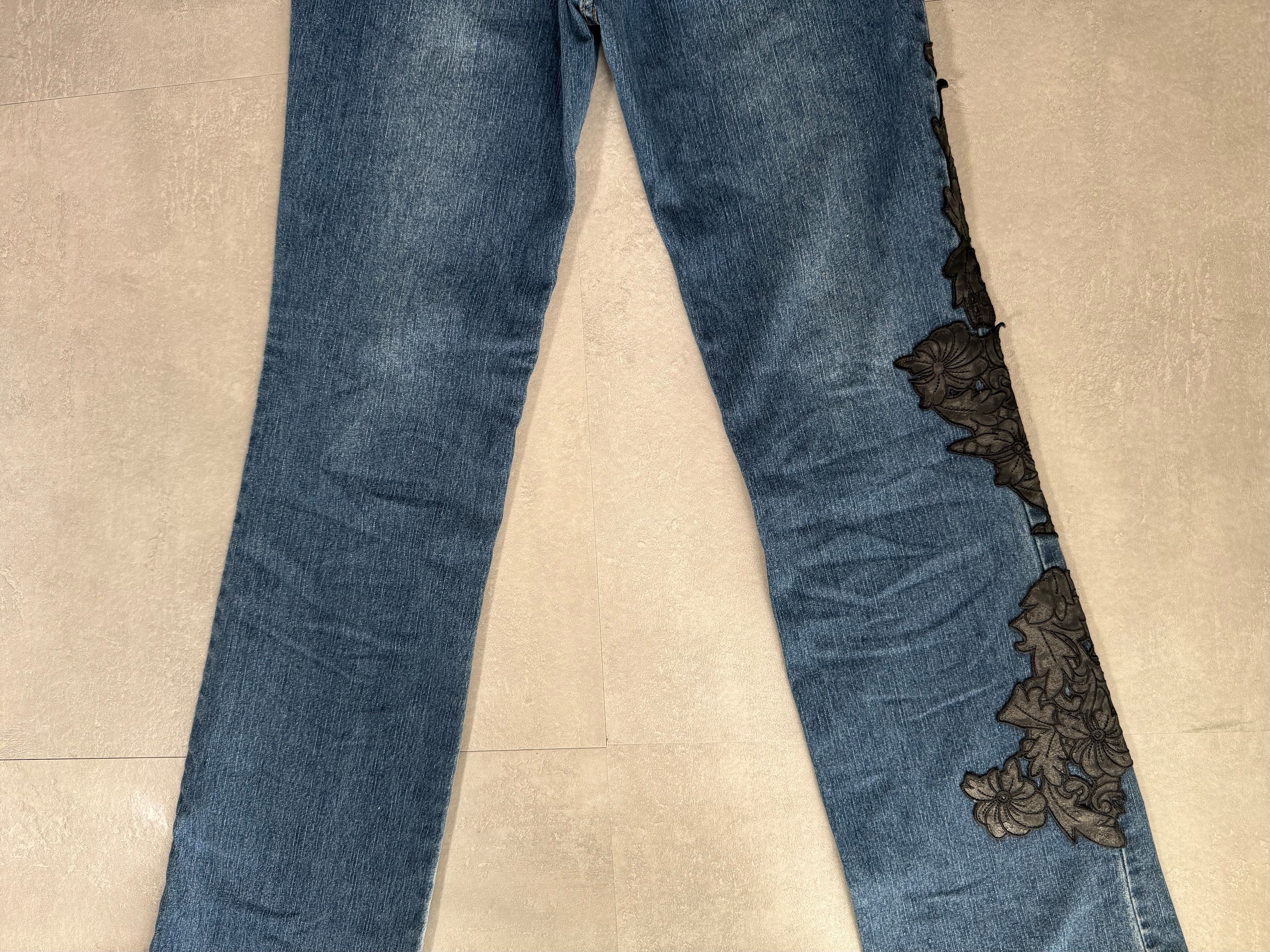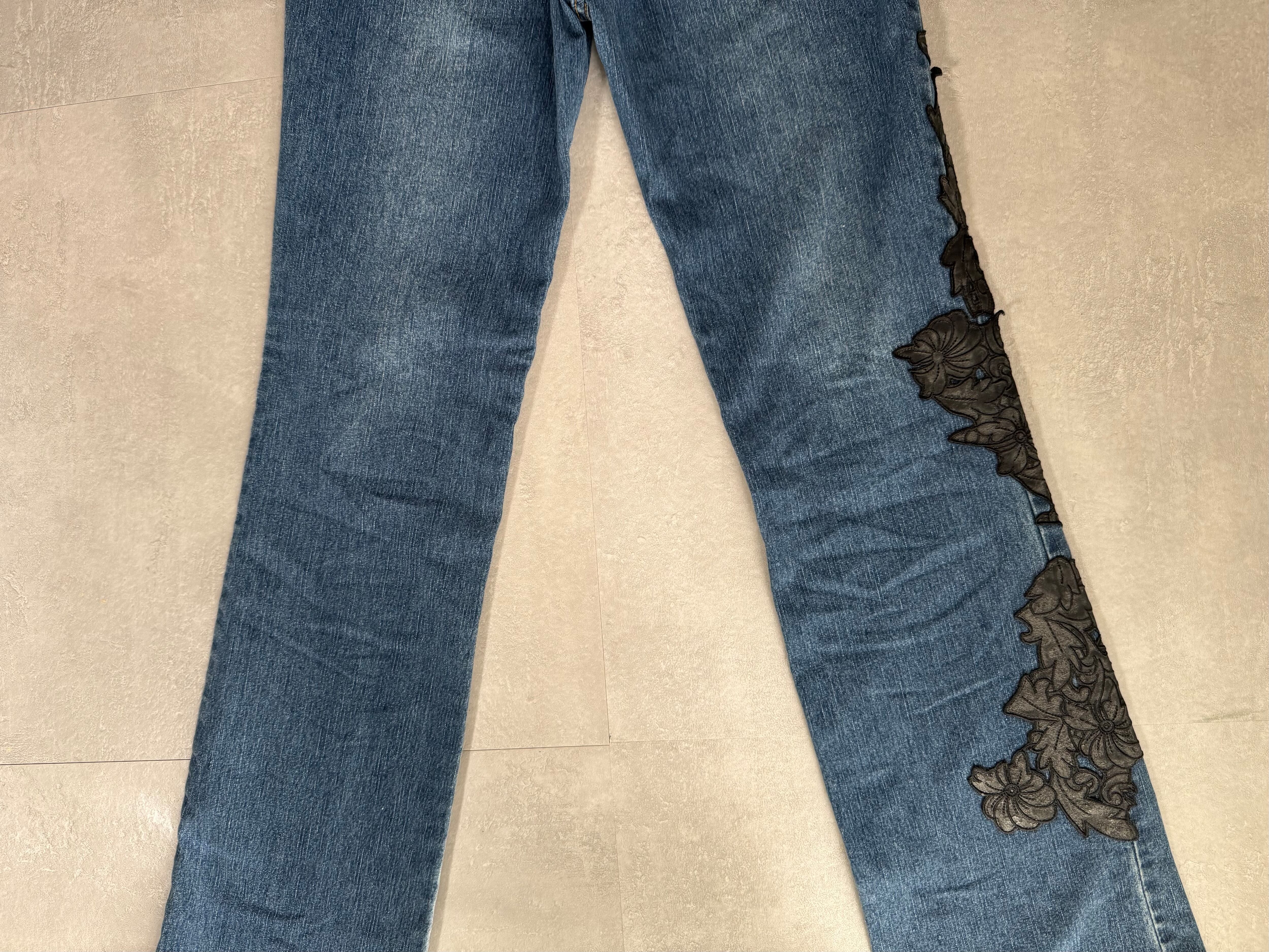 BELLE SPORT Floral Lace Embroidery Flare Denim