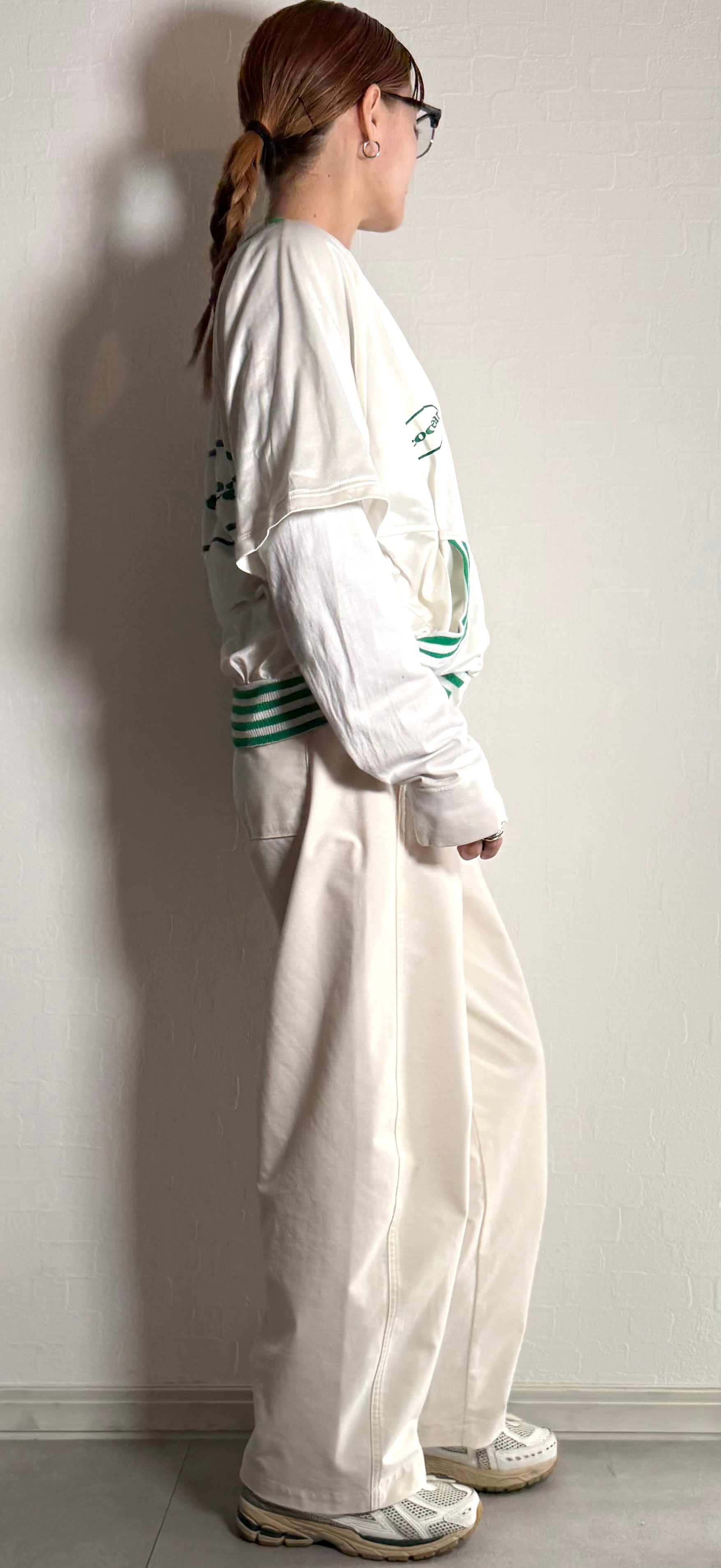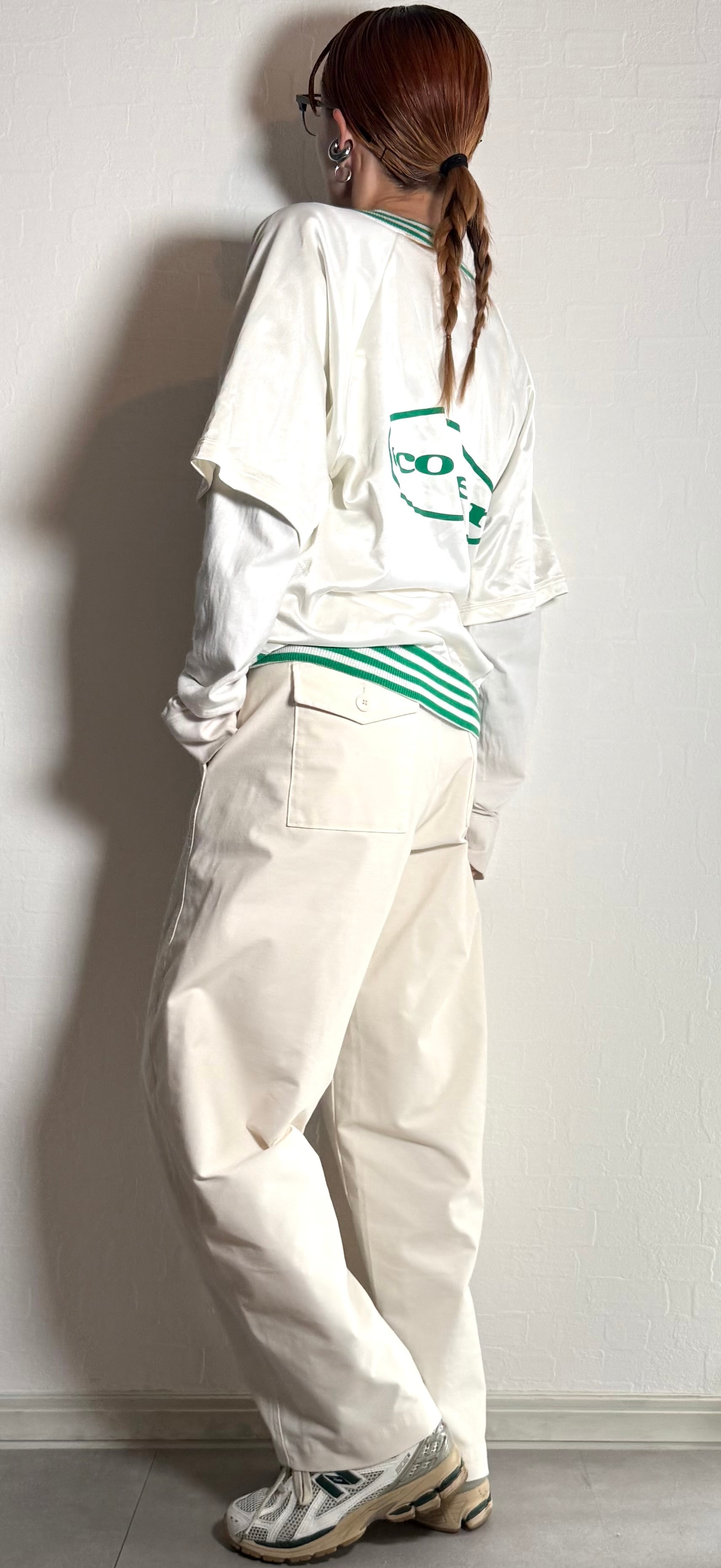 ホワイトのボディにグリーンのリブが映える