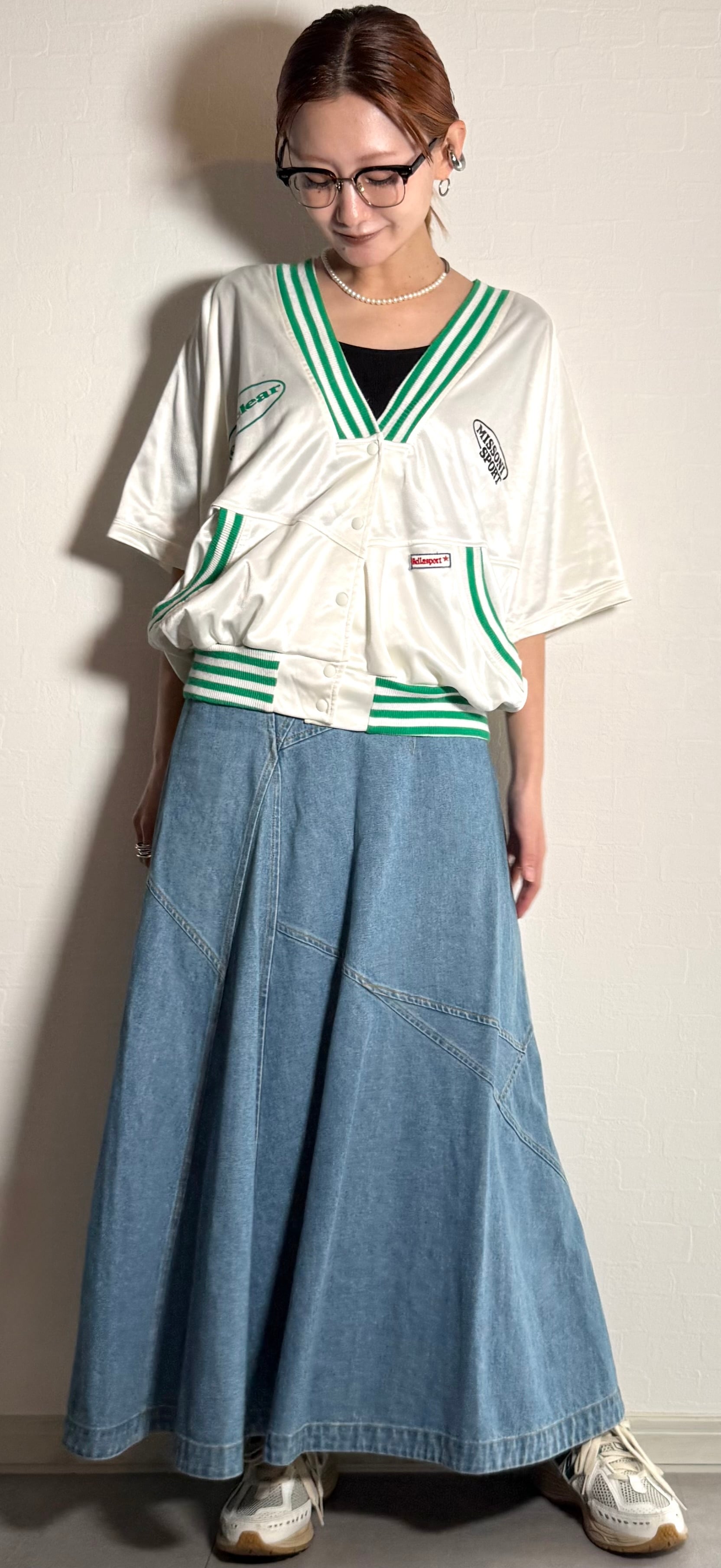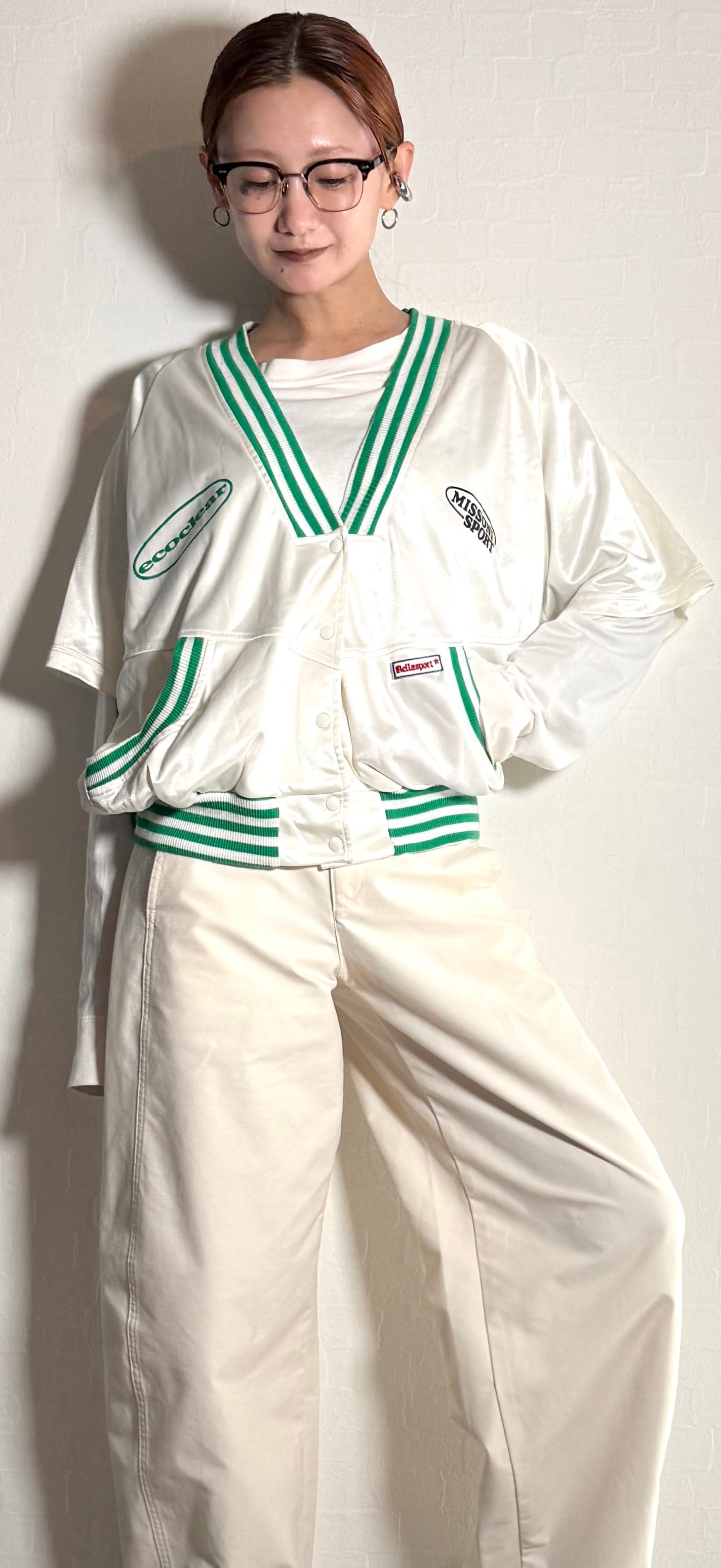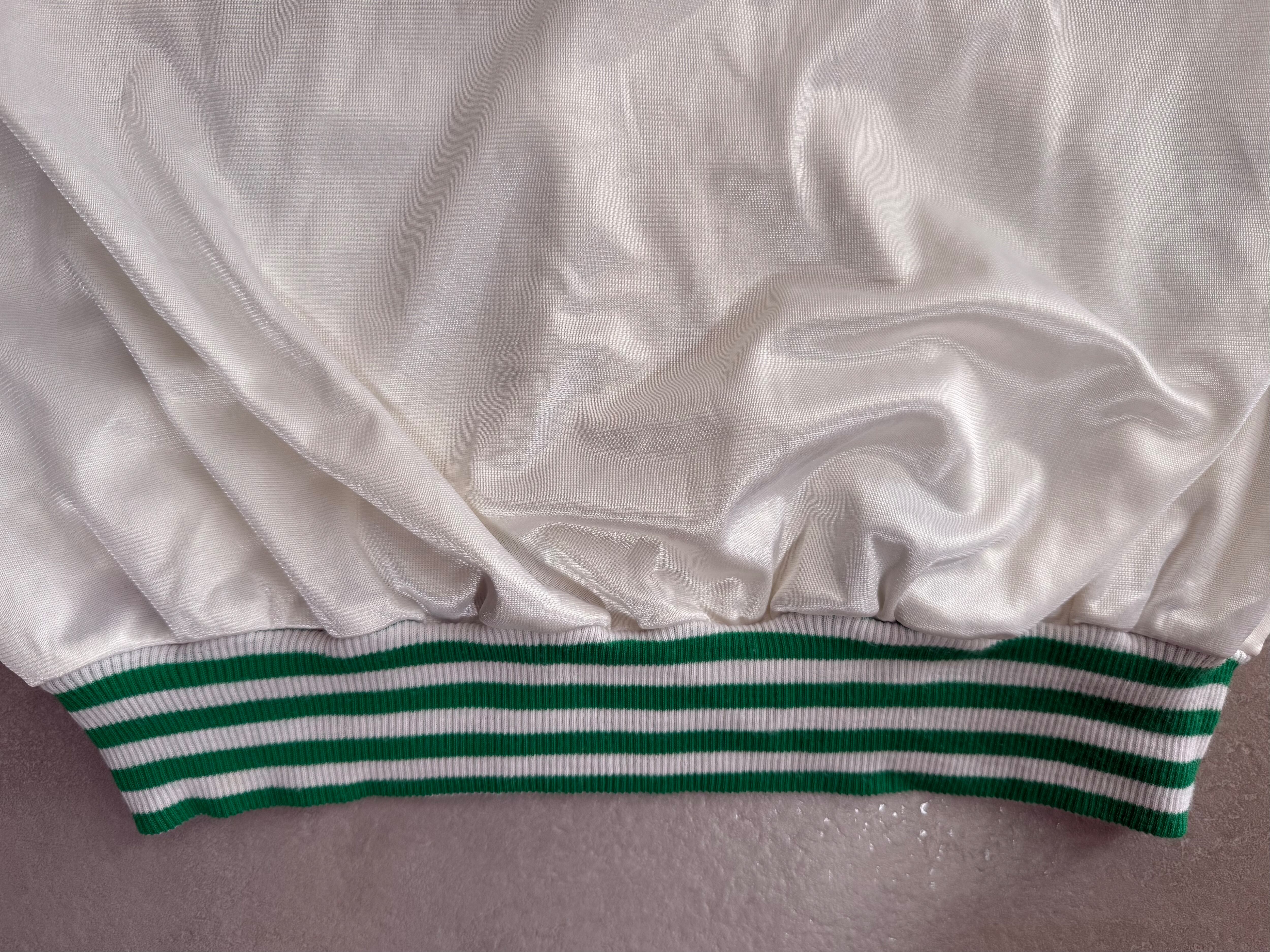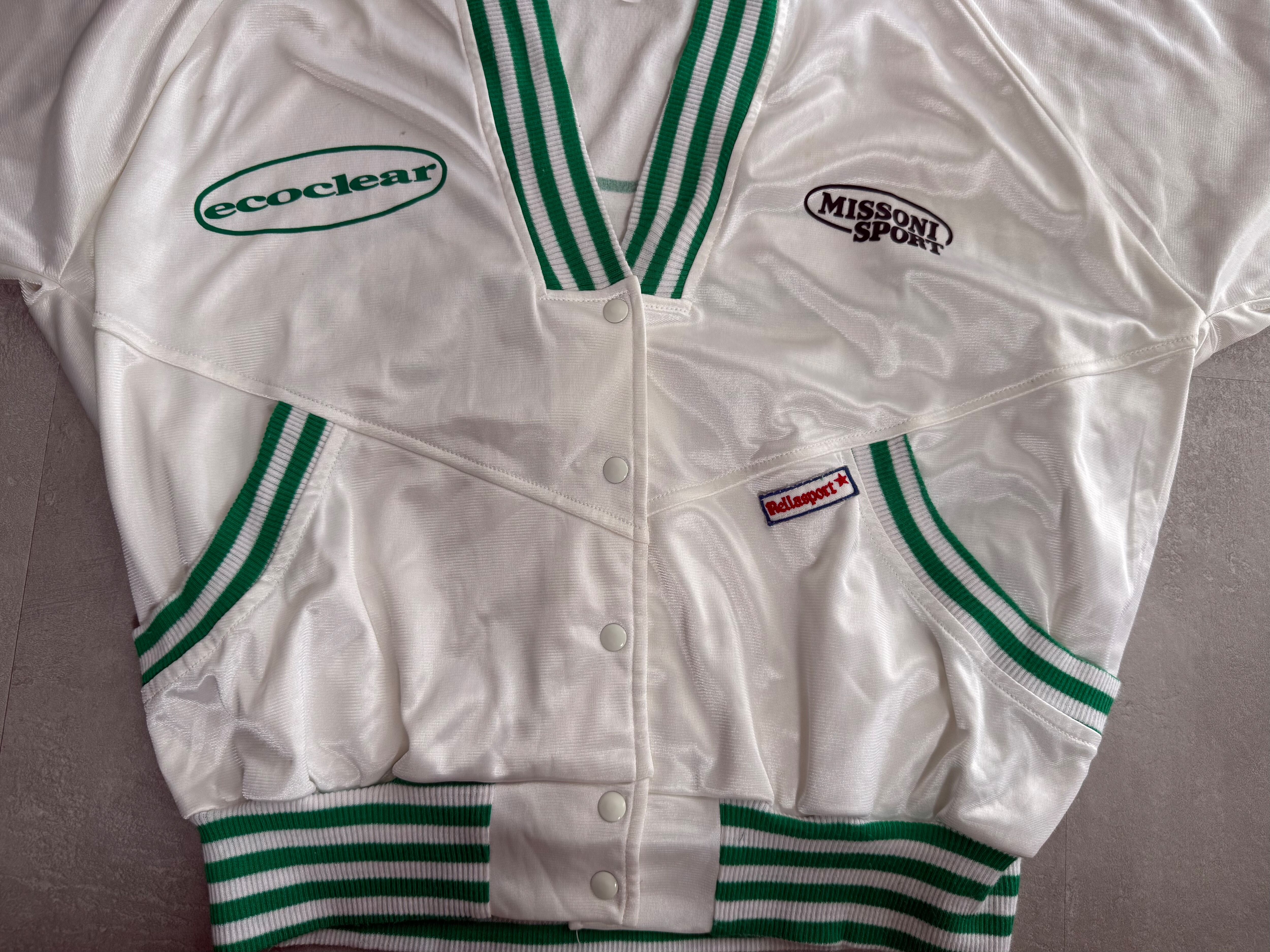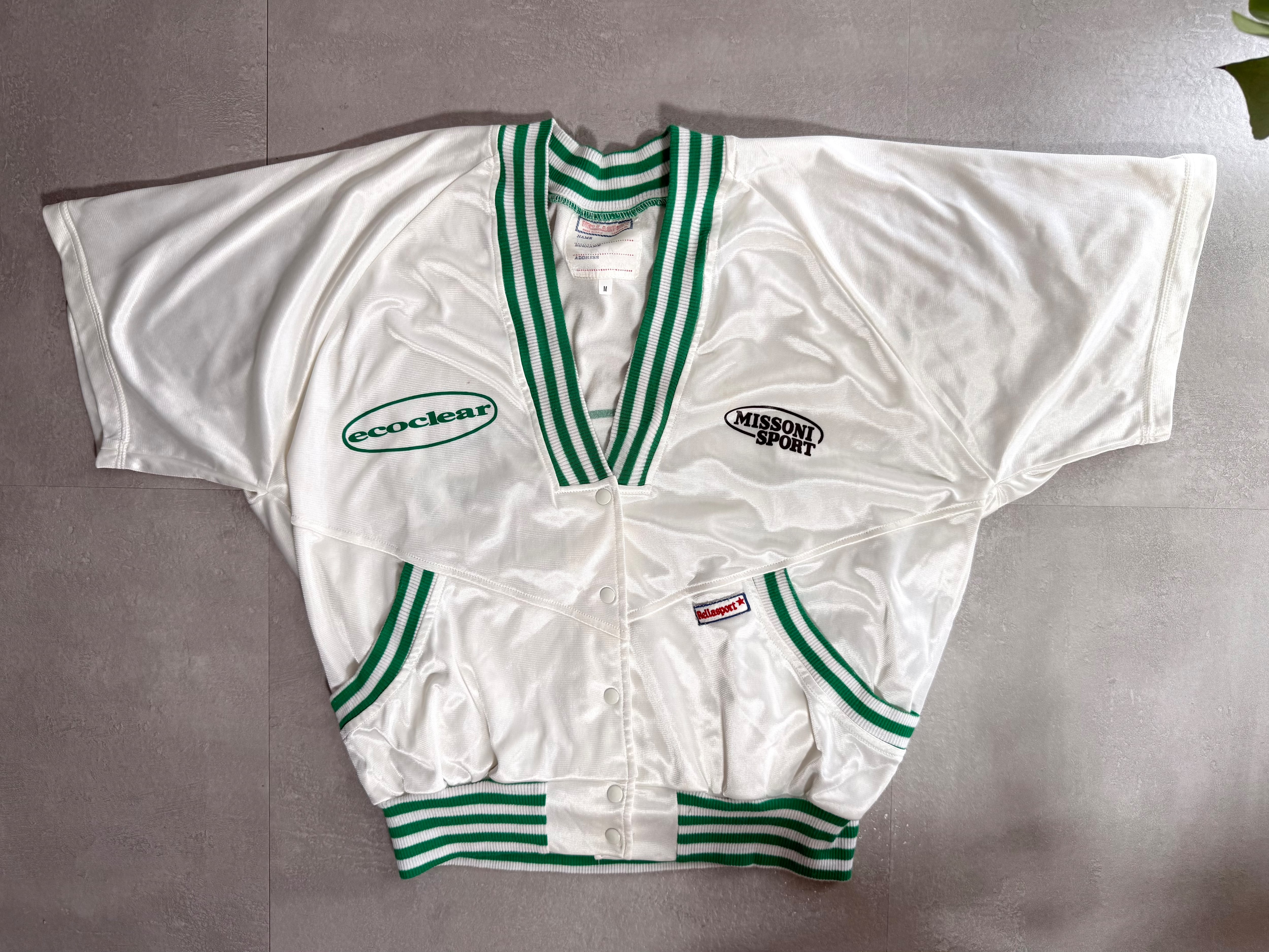 90s MISSONI SPORT Satin Boxy V-Neck Pullover - White/Green