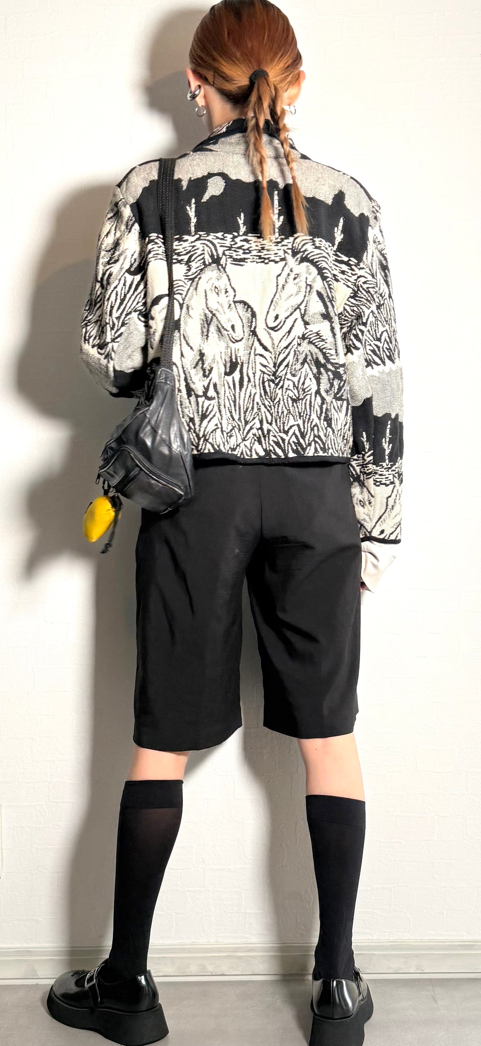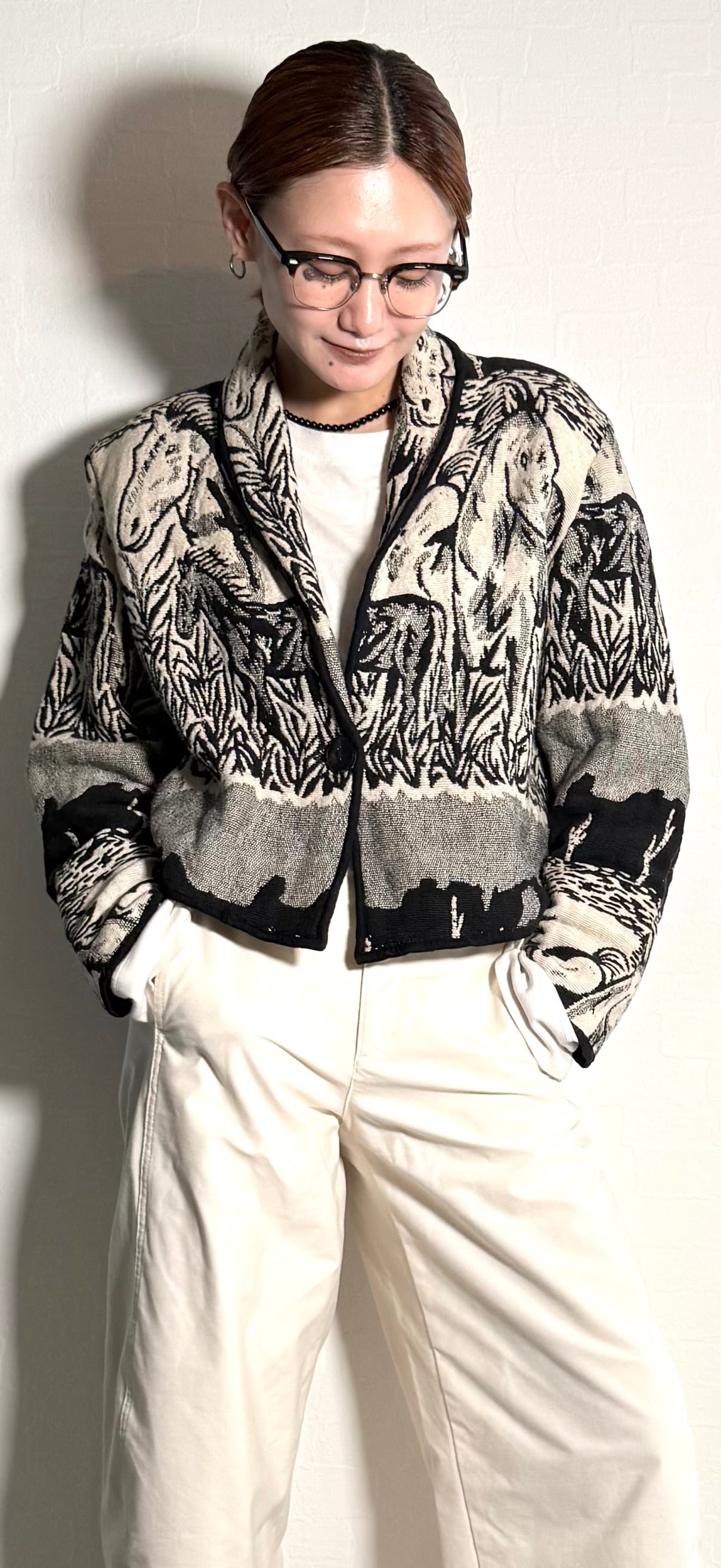NEW IDENTITY Horse Pattern Monotone Short Jacket