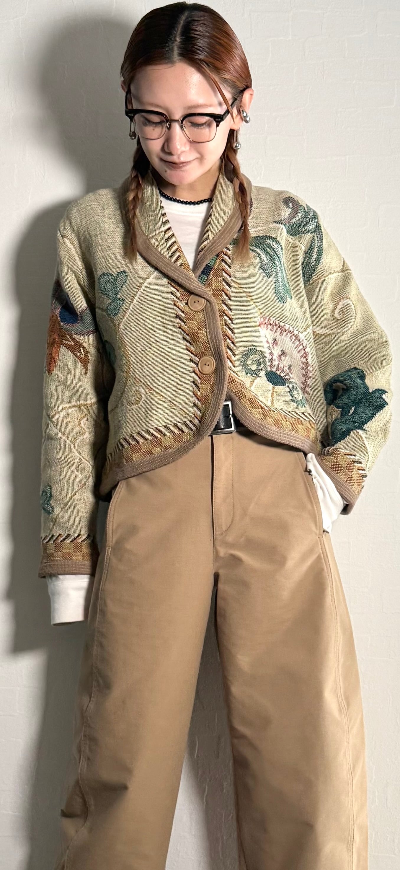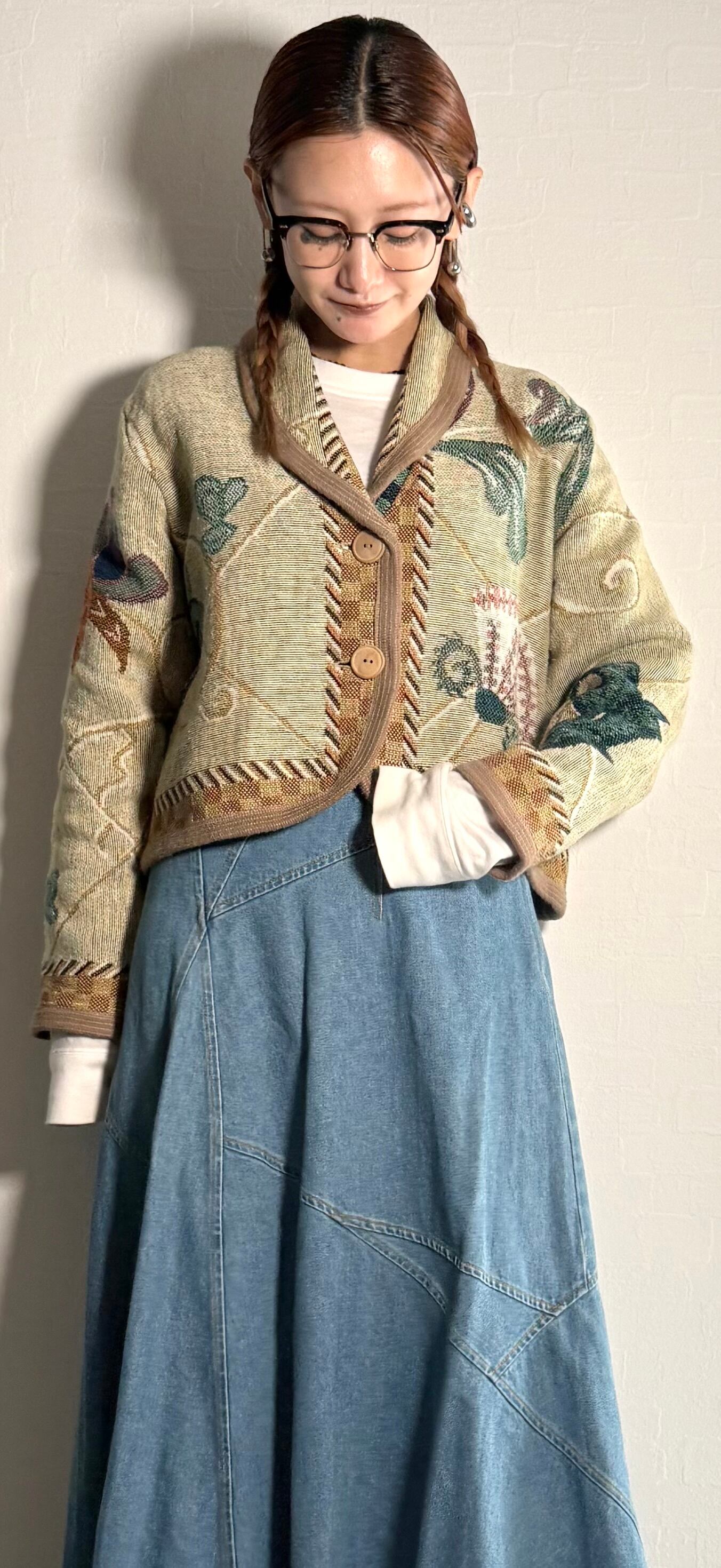 Vintage USA Gobelin Art Pattern Short Cardigan “Junge-Potch-Key”