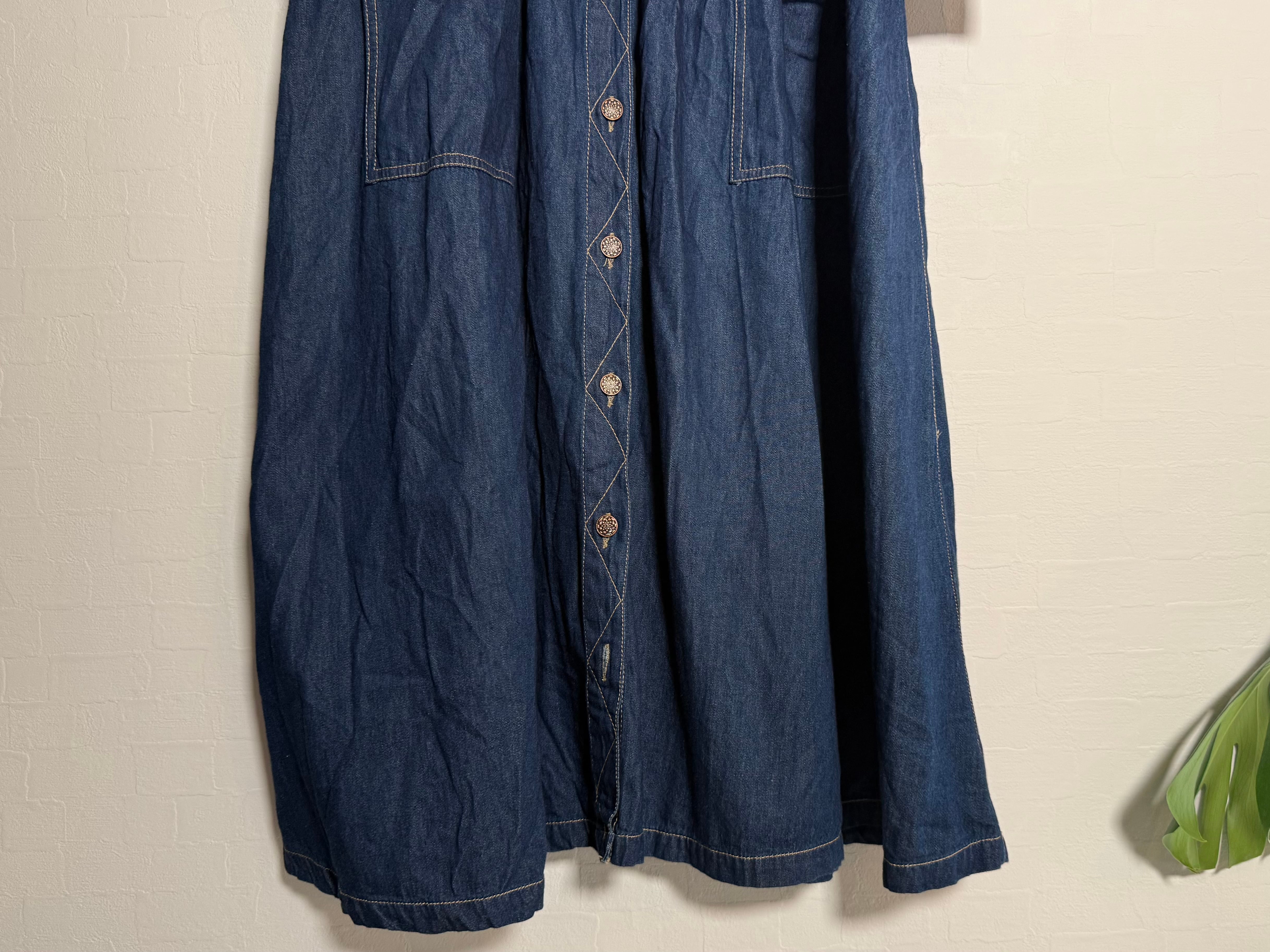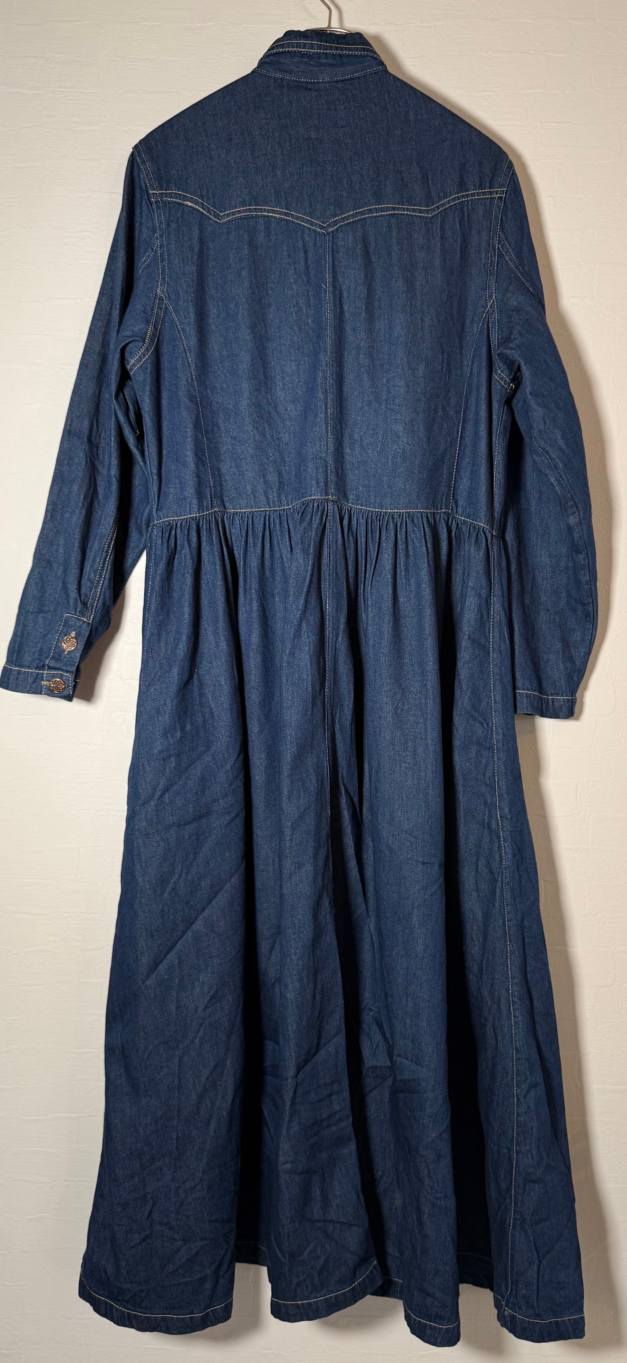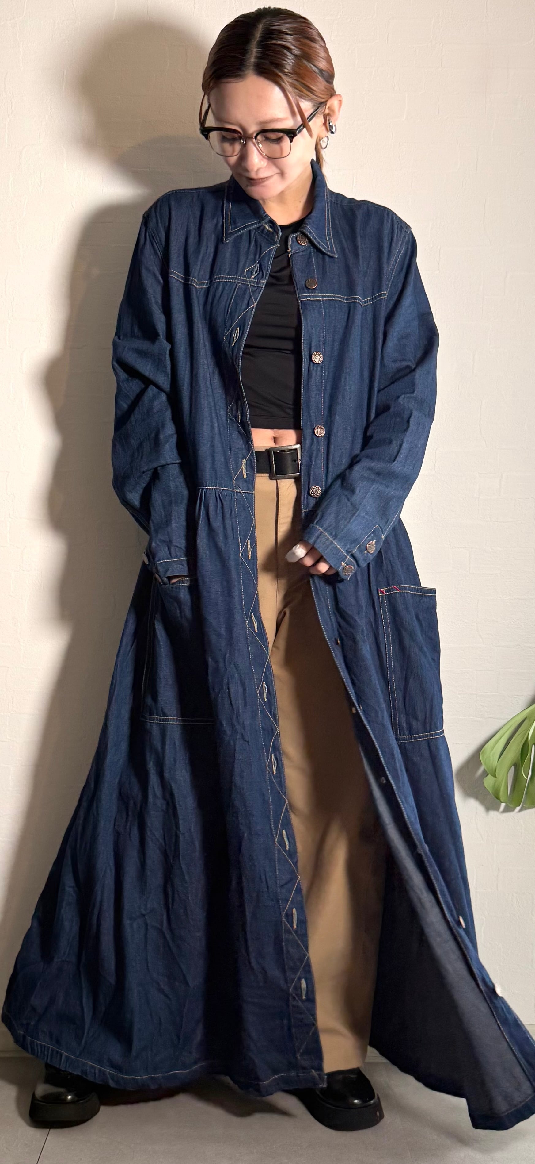 しっかりとしたコットンデニム素材を使用したロング丈シャツワンピース。