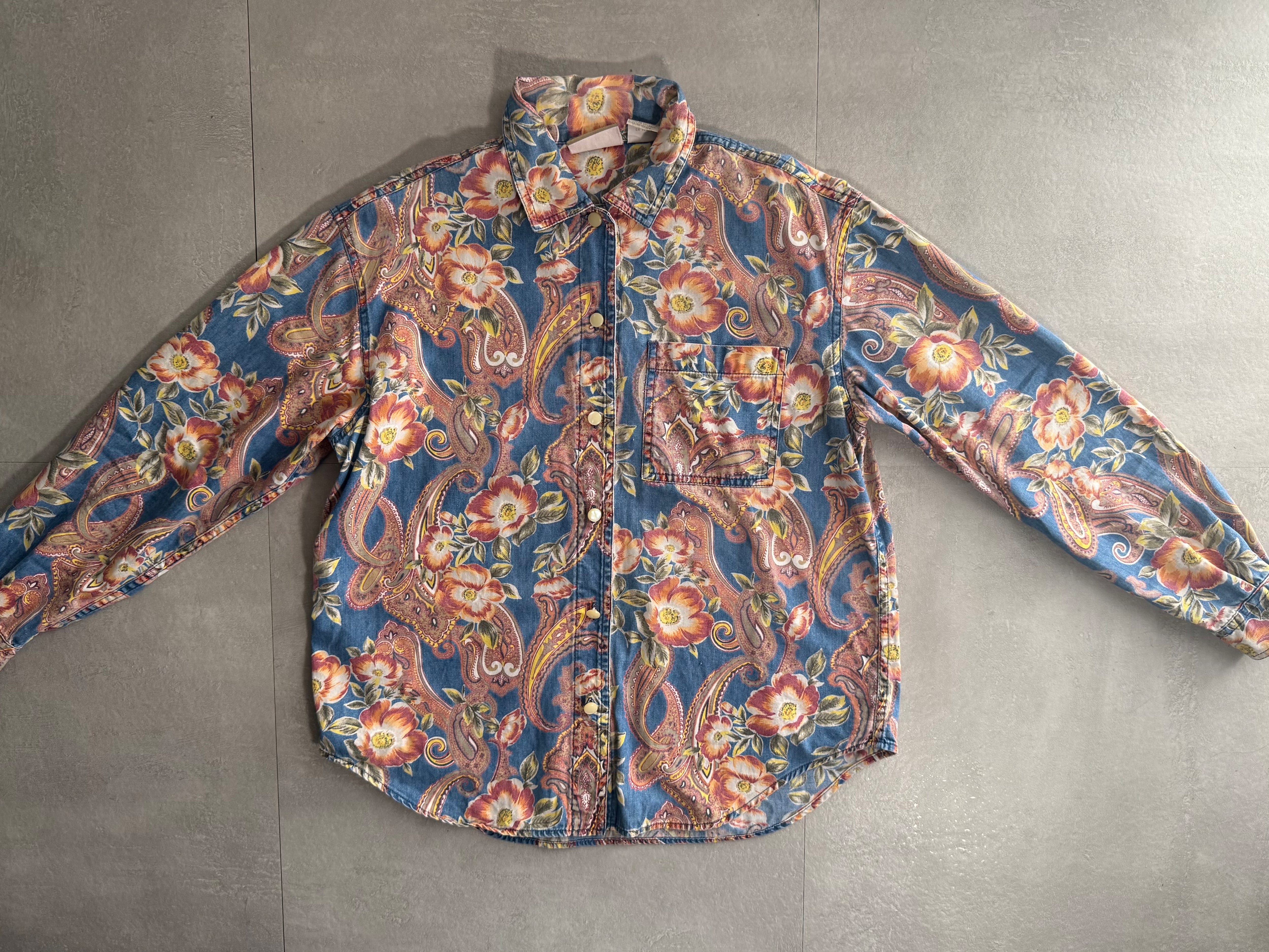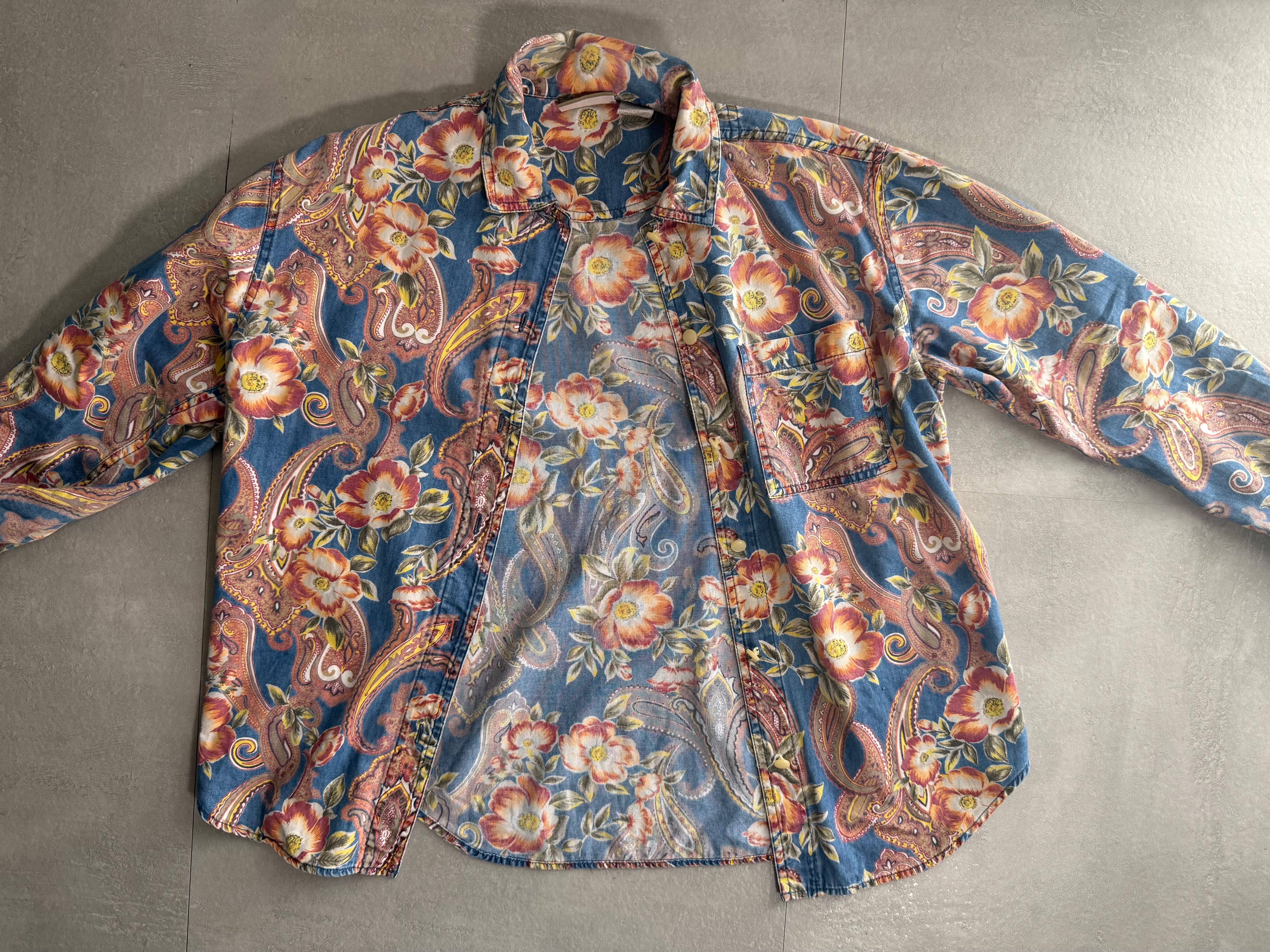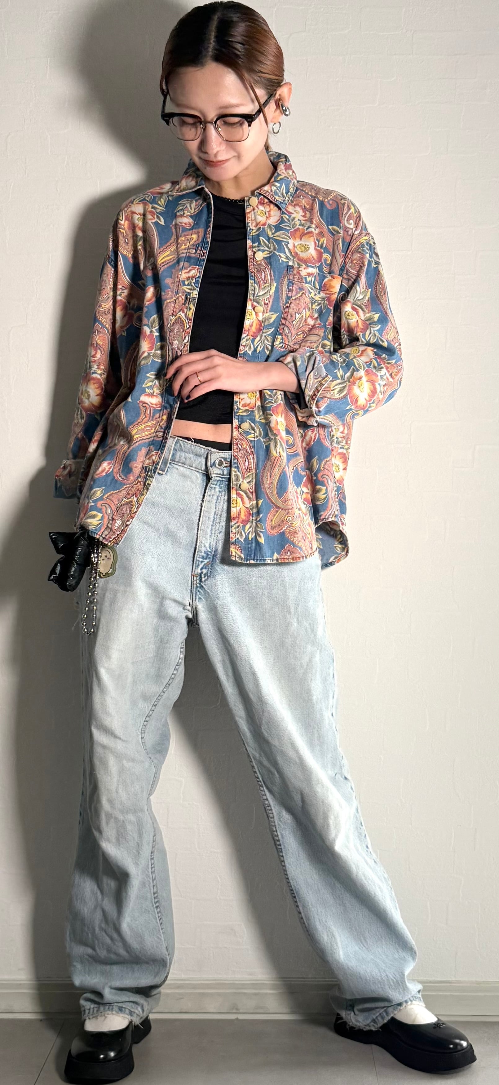 フラワー×ペイズリーのミックスパターンが映える一着。