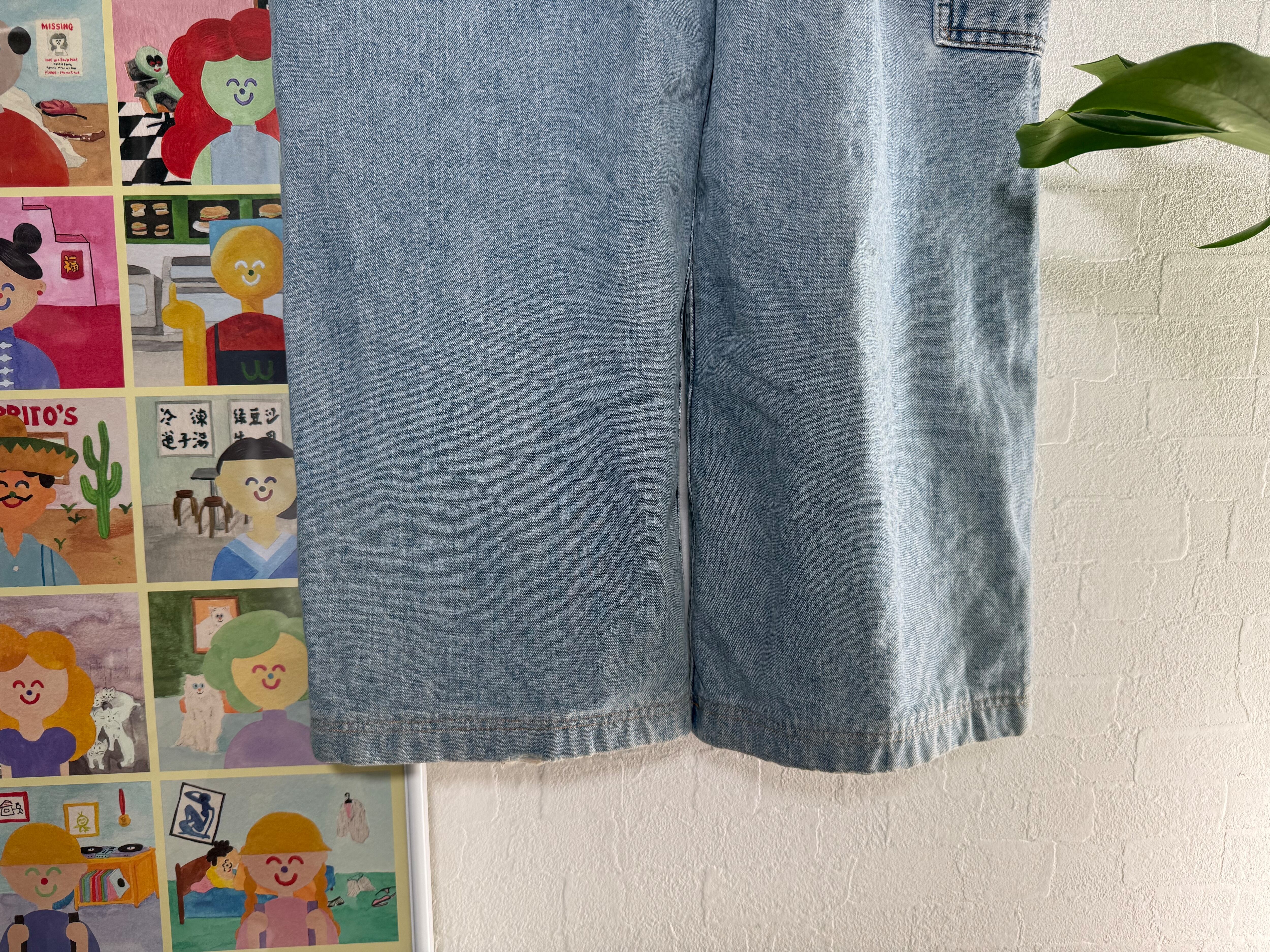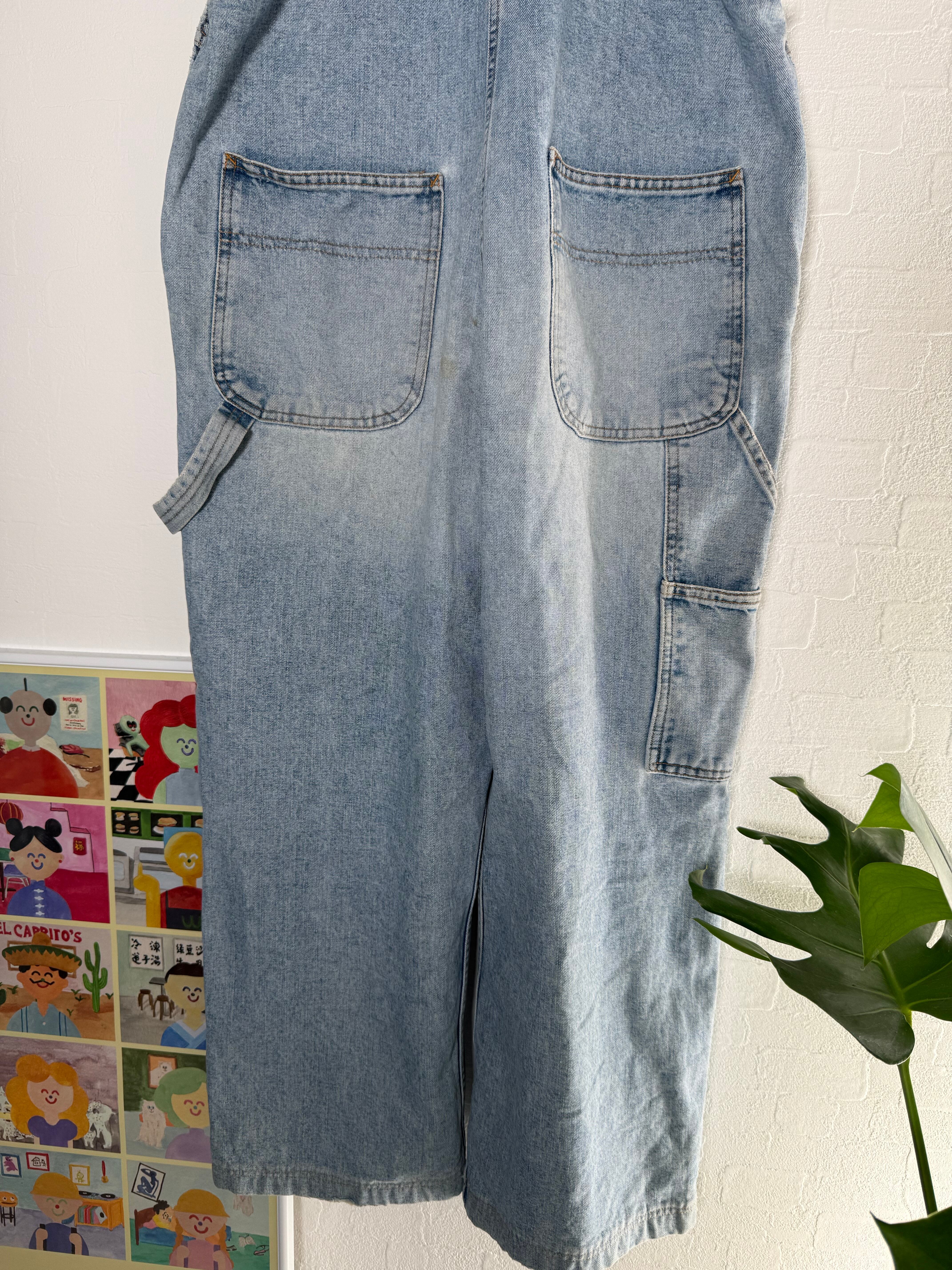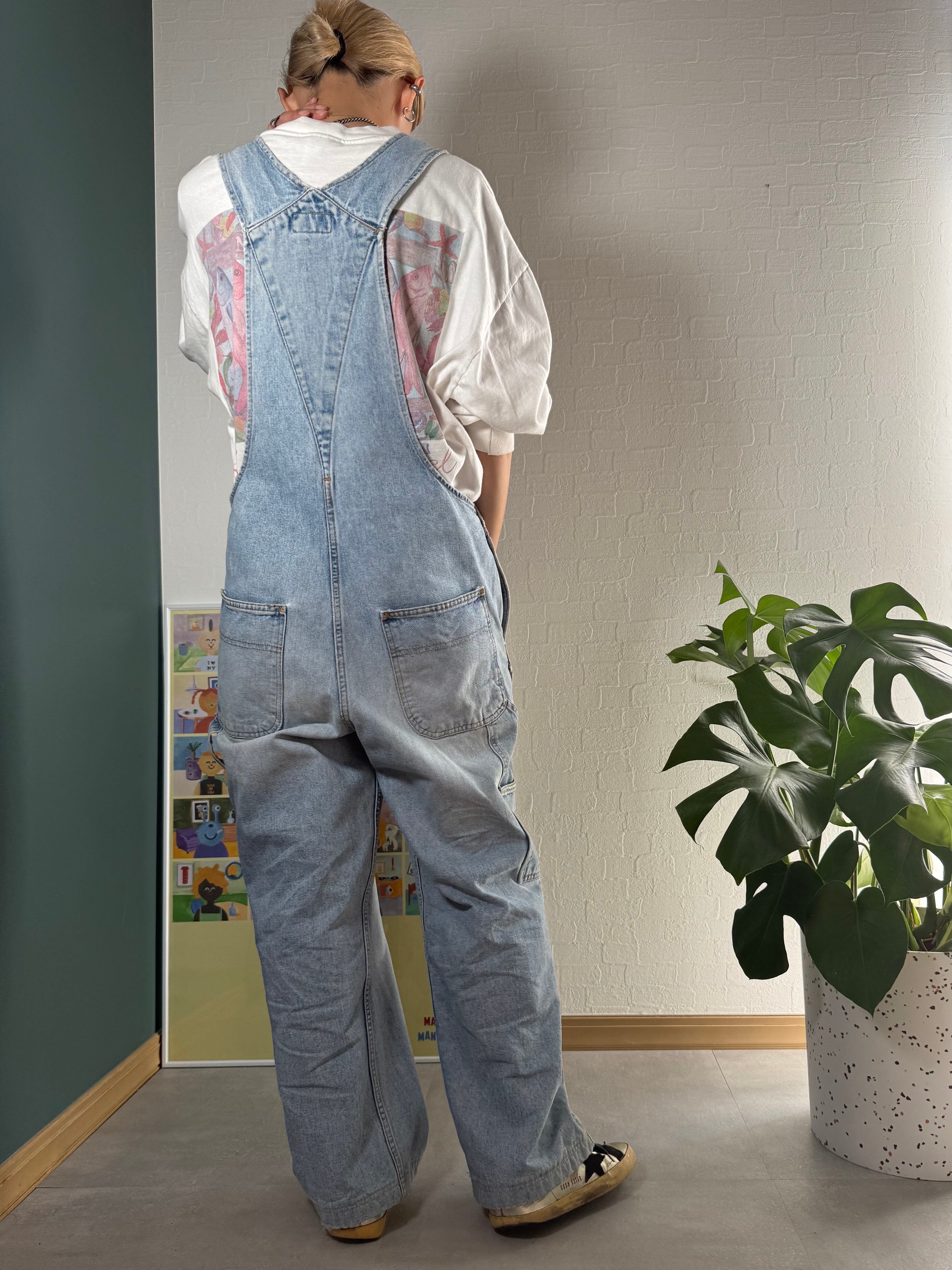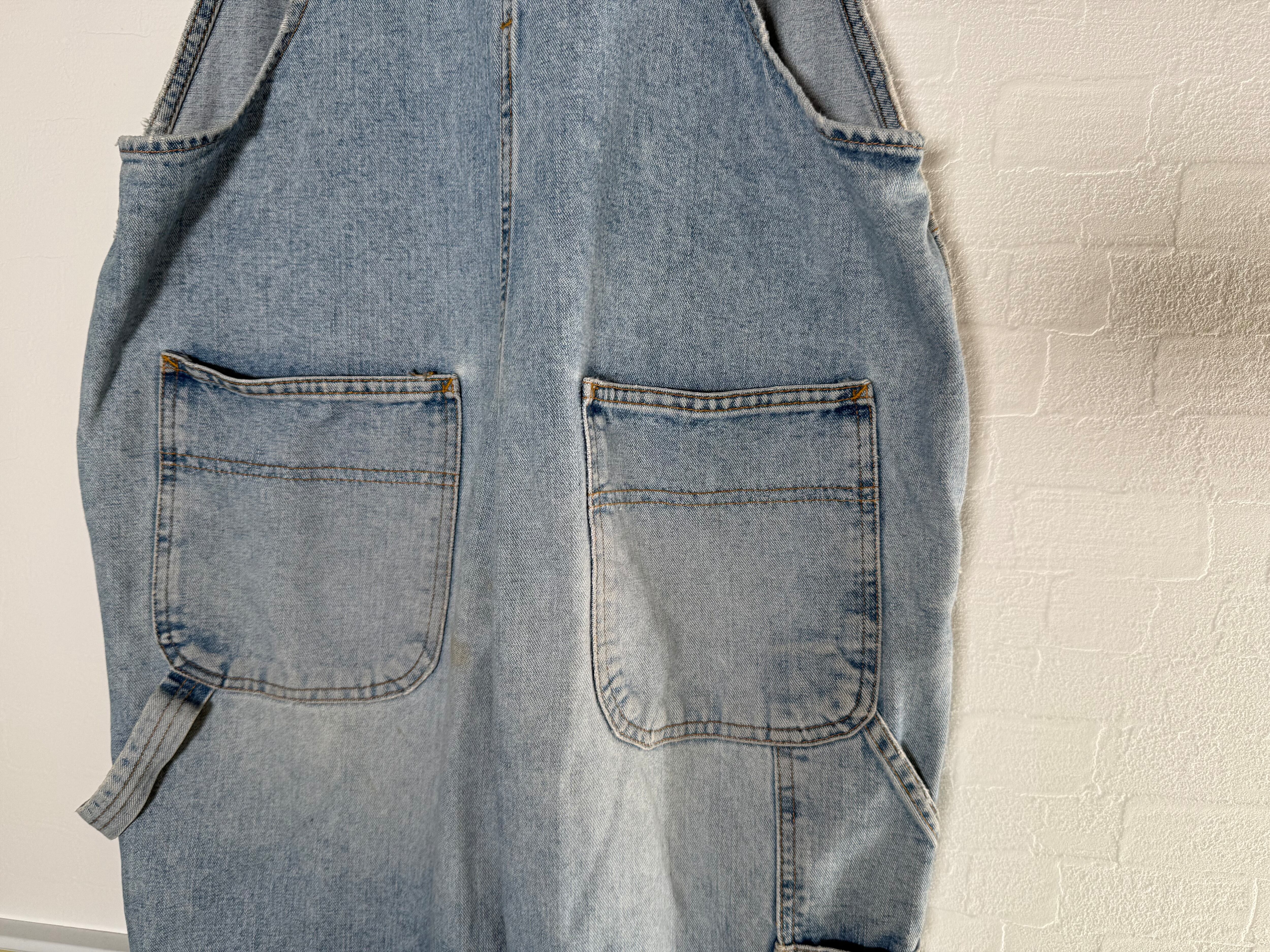 薄いインディゴのオーバーオールです