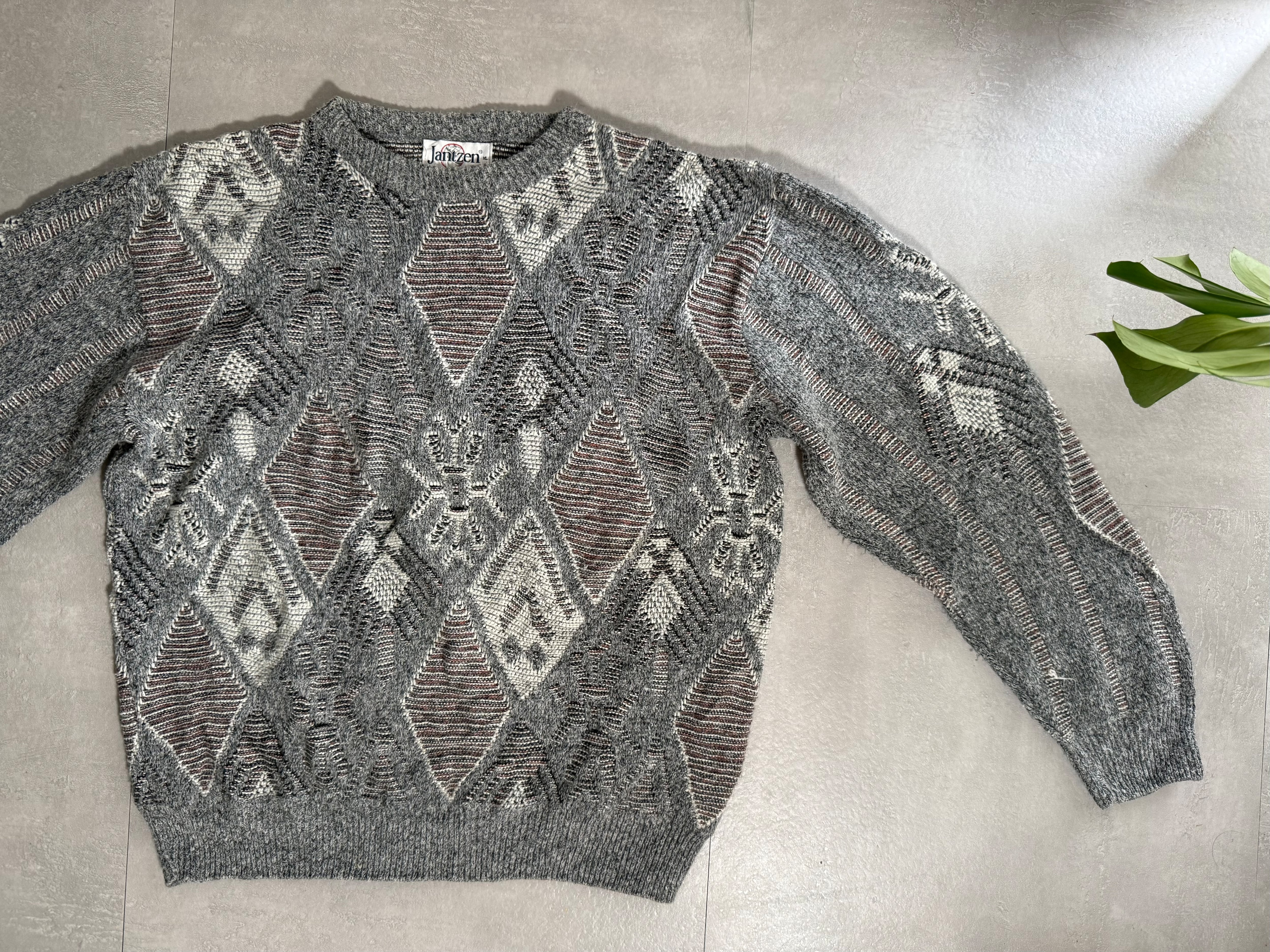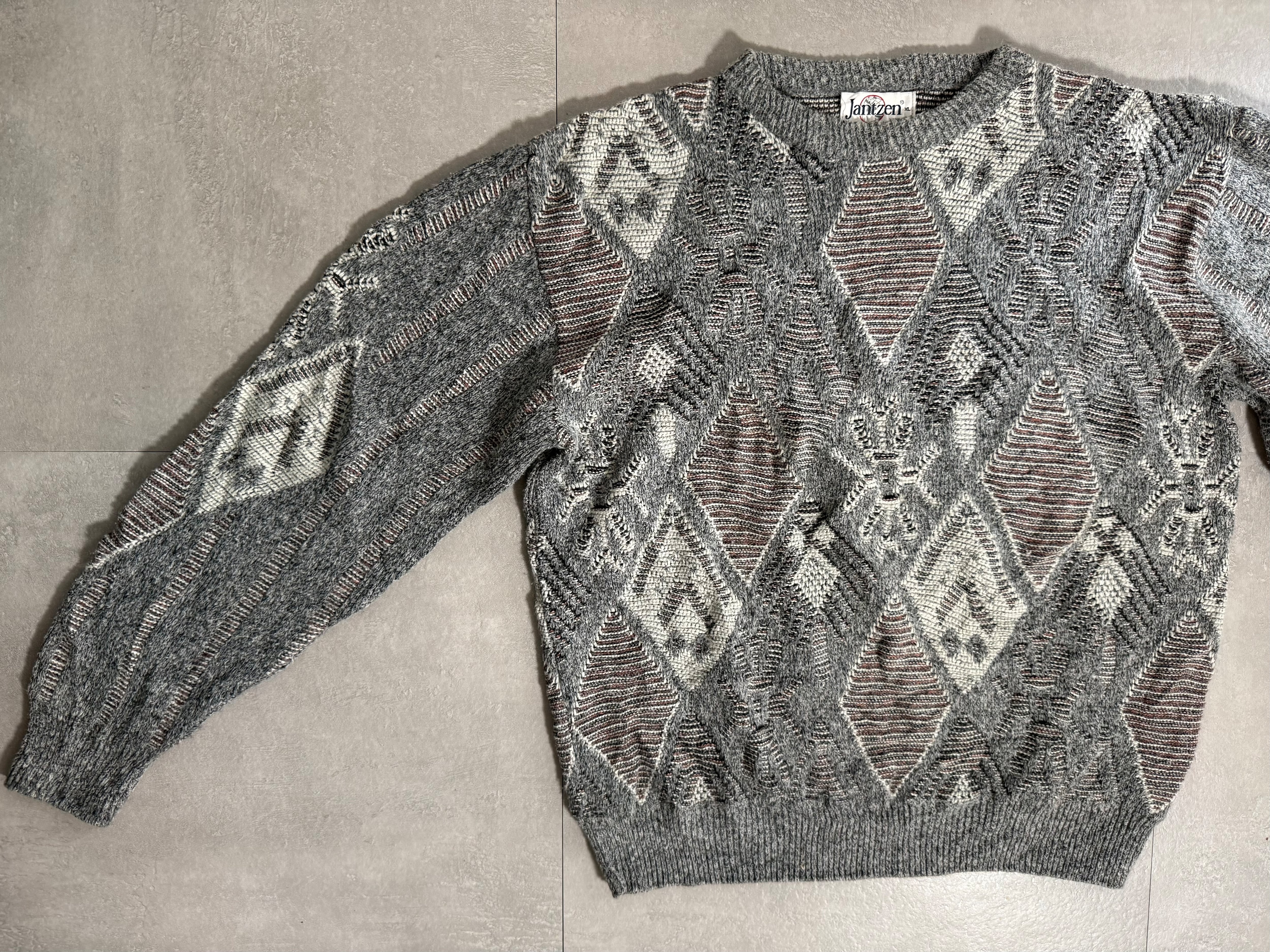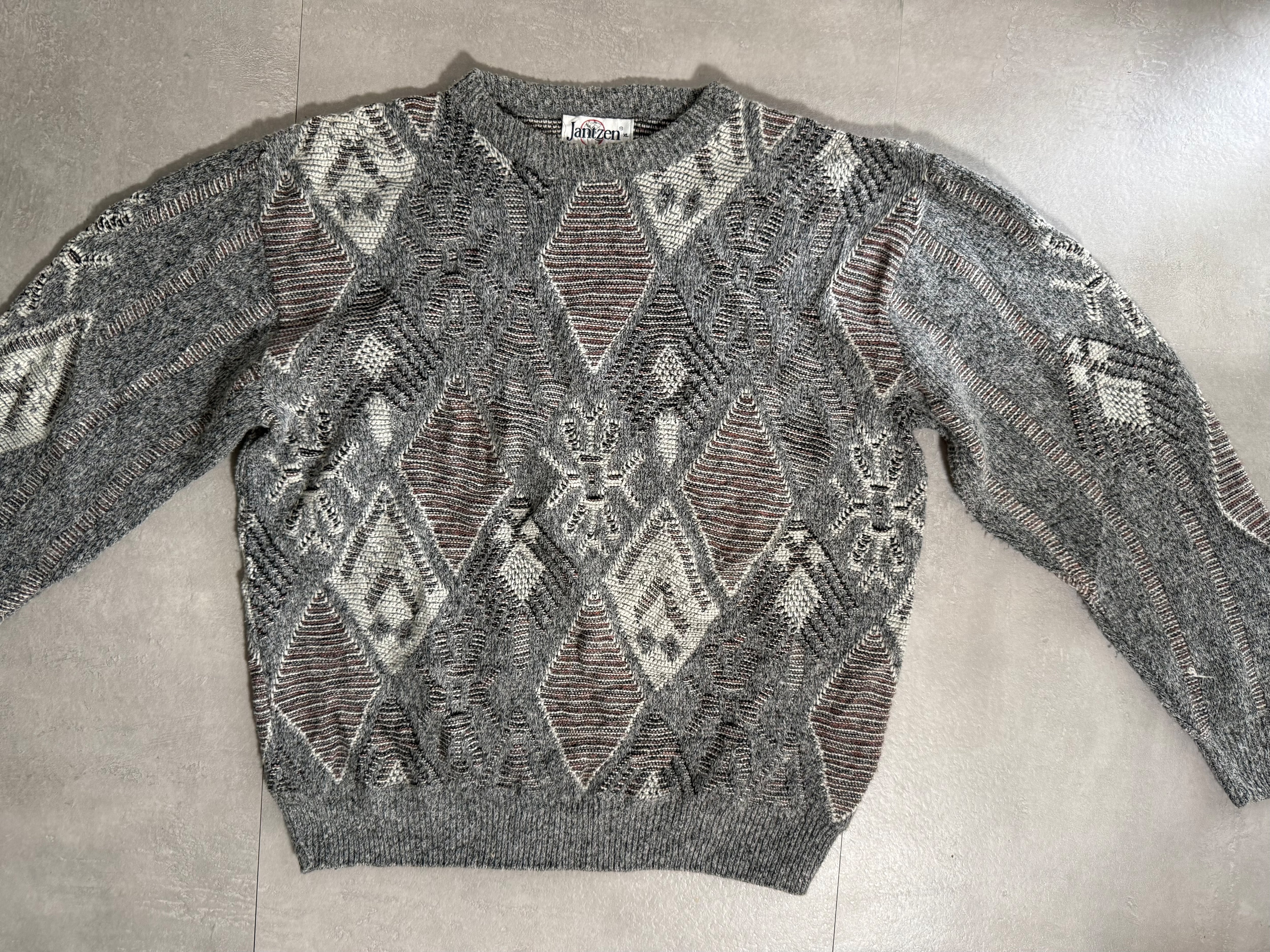 80s Jantzen Made in USA Oversized Argyle Jacquard Sweater